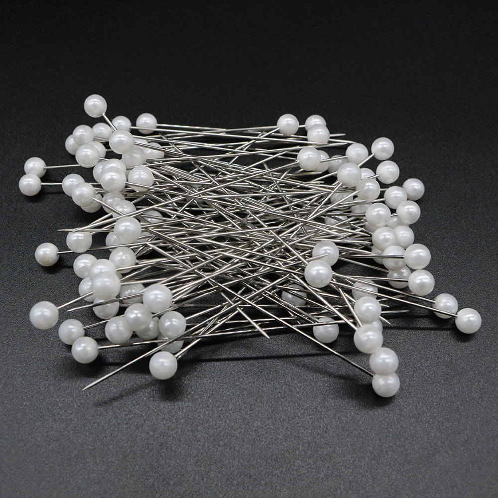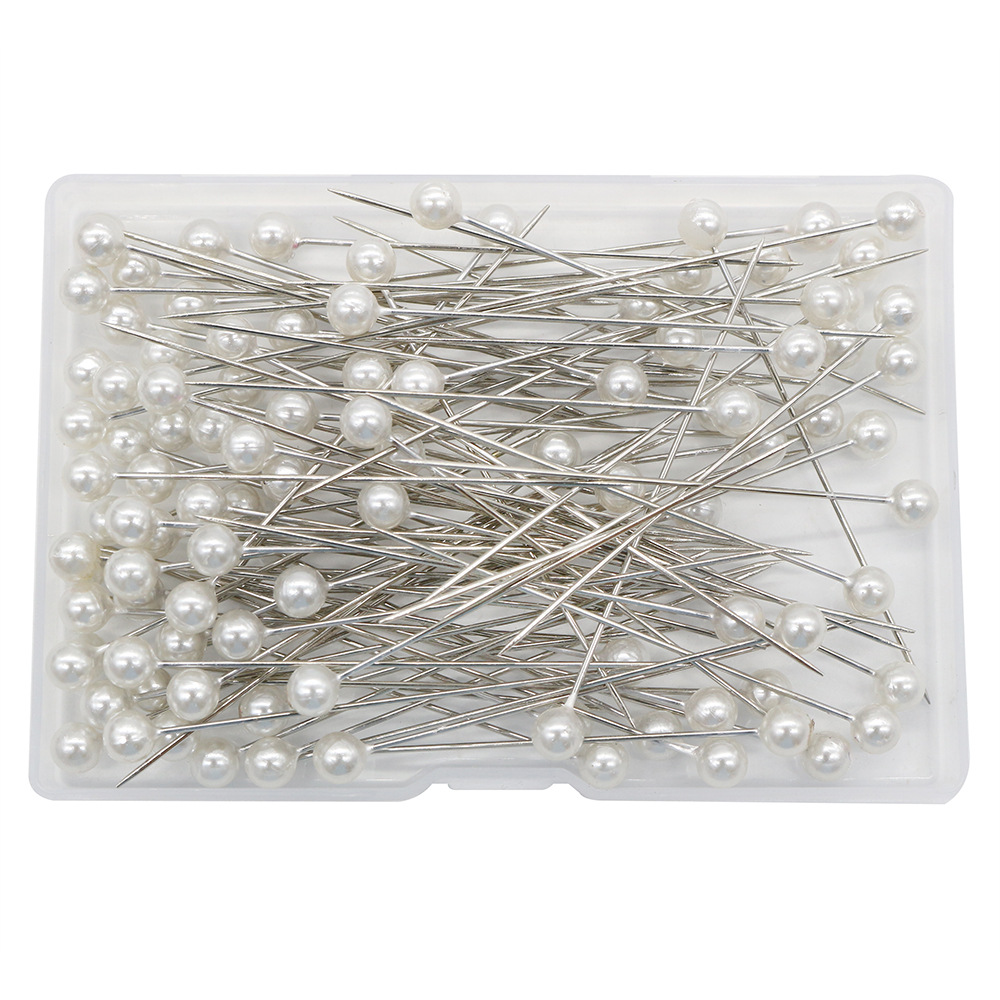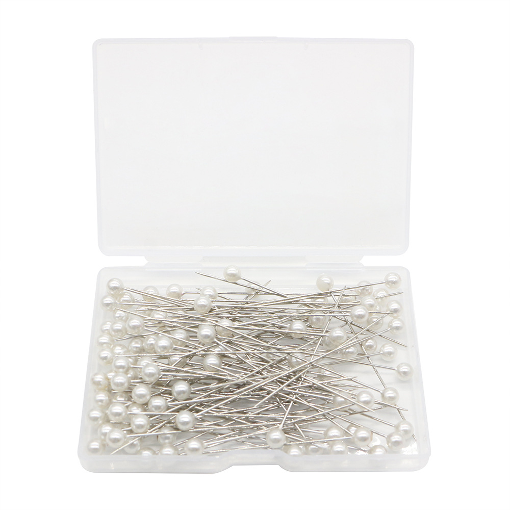 跨境100枚6*65MM扁盒装白色塑料圆形定位针拼布缝纫针饰品珠光针 English | 投诉