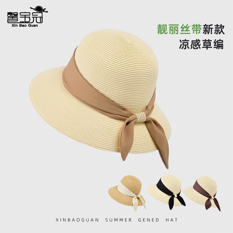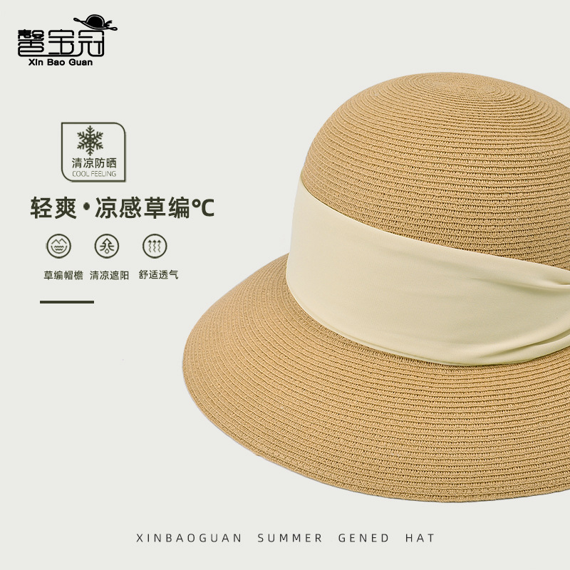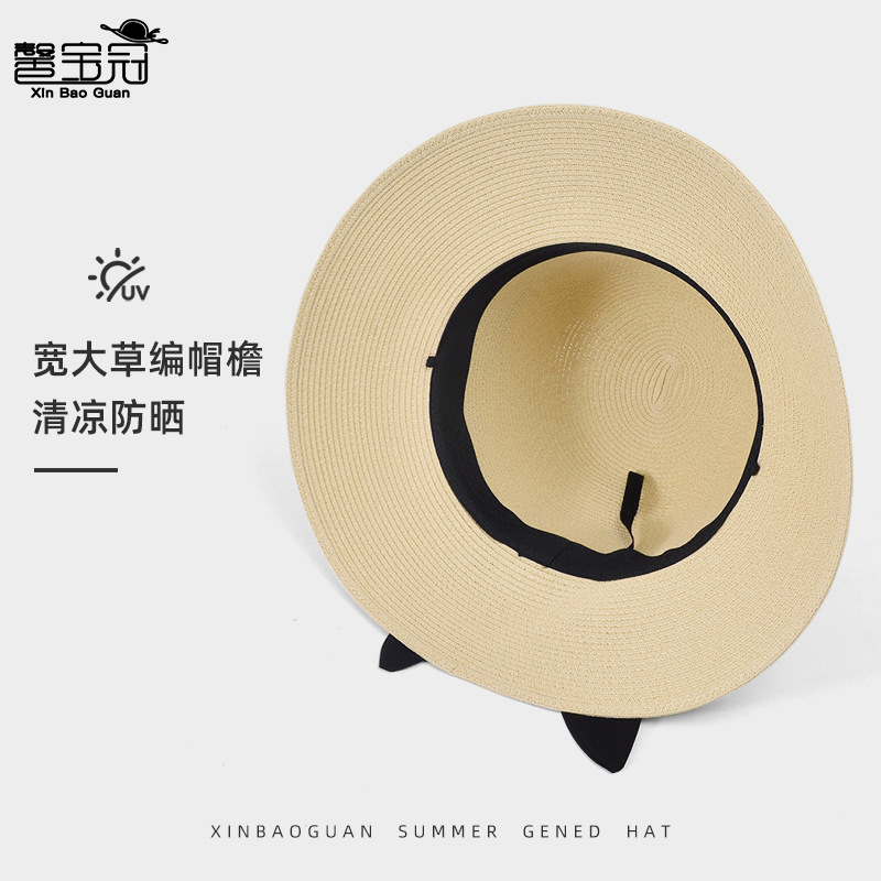 夏季大檐遮阳防晒草帽休闲沙滩太阳帽子女高级感显脸小草编渔夫帽 投诉