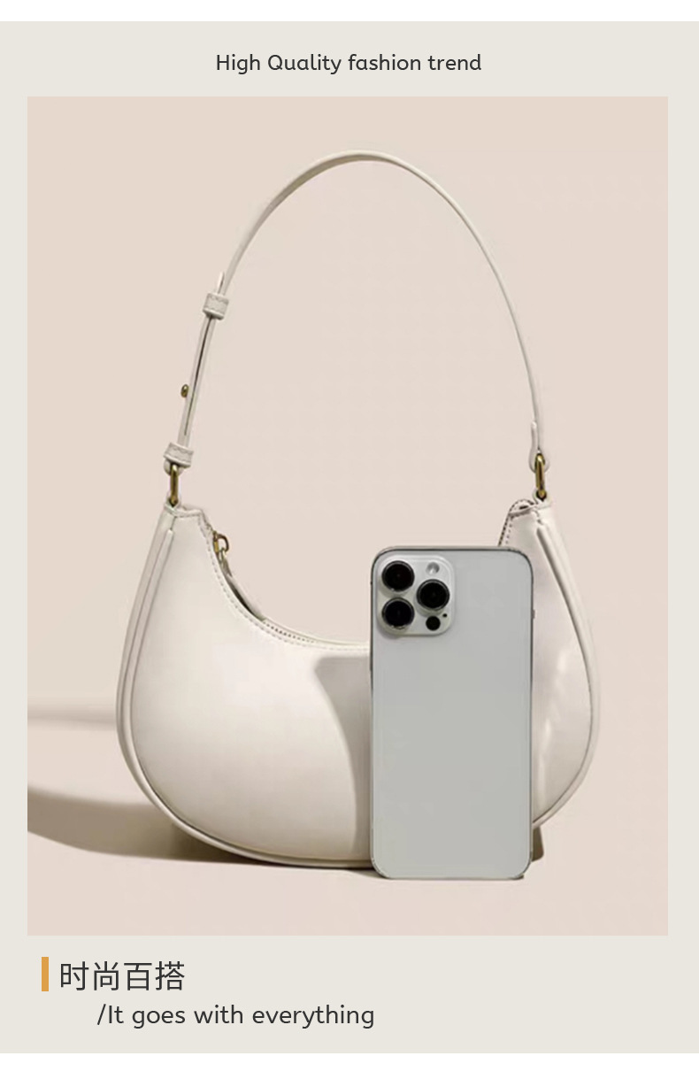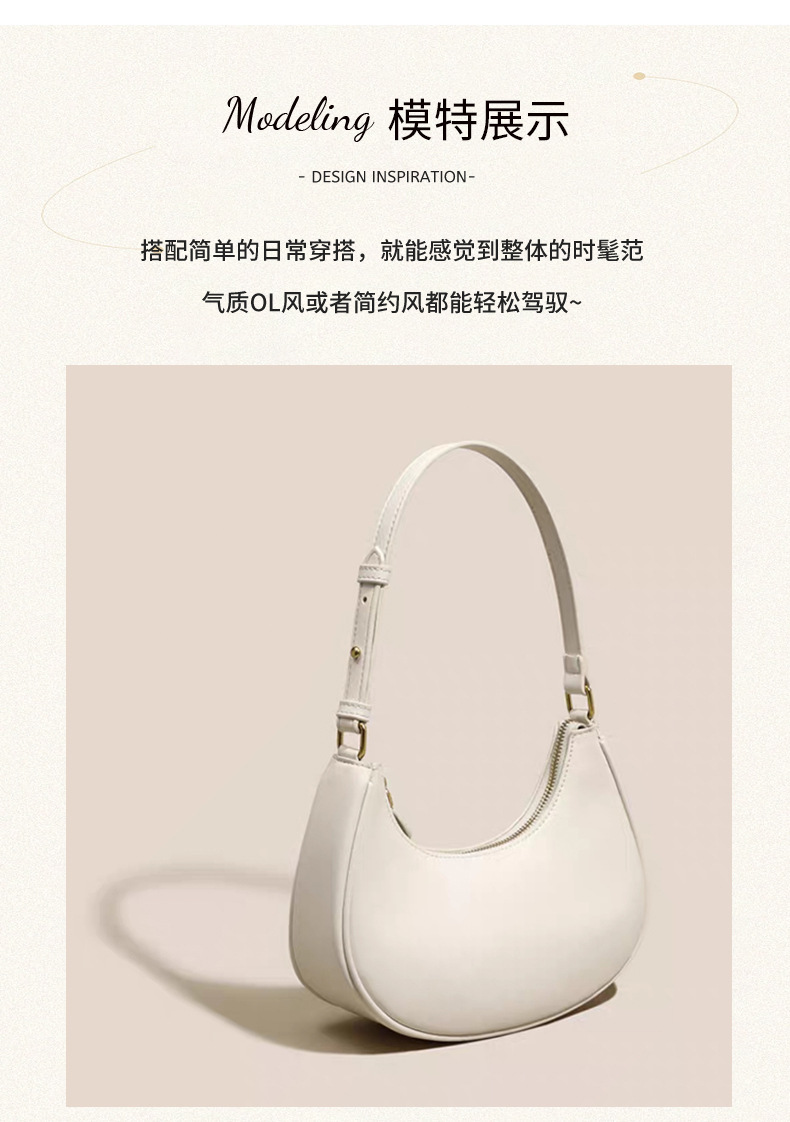 新款腋下单肩包女款白色半月包2025春夏简约通勤高级感包包月牙包