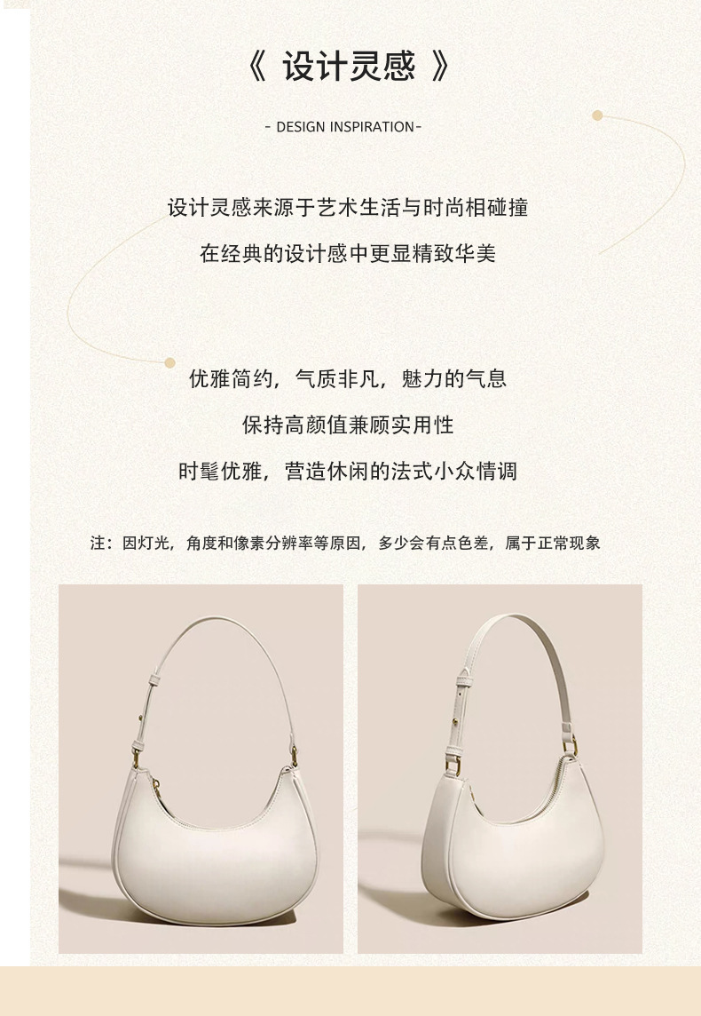 新款腋下单肩包女款白色半月包2025春夏简约通勤高级感包包月牙包 投诉