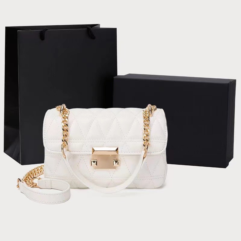 颜色: 黑色(不包含盒子和袋子),白色(不包含盒 风格: 都市简约 货号: 5174 材质: PU 箱包潮流款式: 小方包 箱包大小: 小 流行元素: 菱格 上市年份季节: 2023年春季 里料质地: 涤纶 开盖方式: 锁扣 重量: 0.25 kg/个