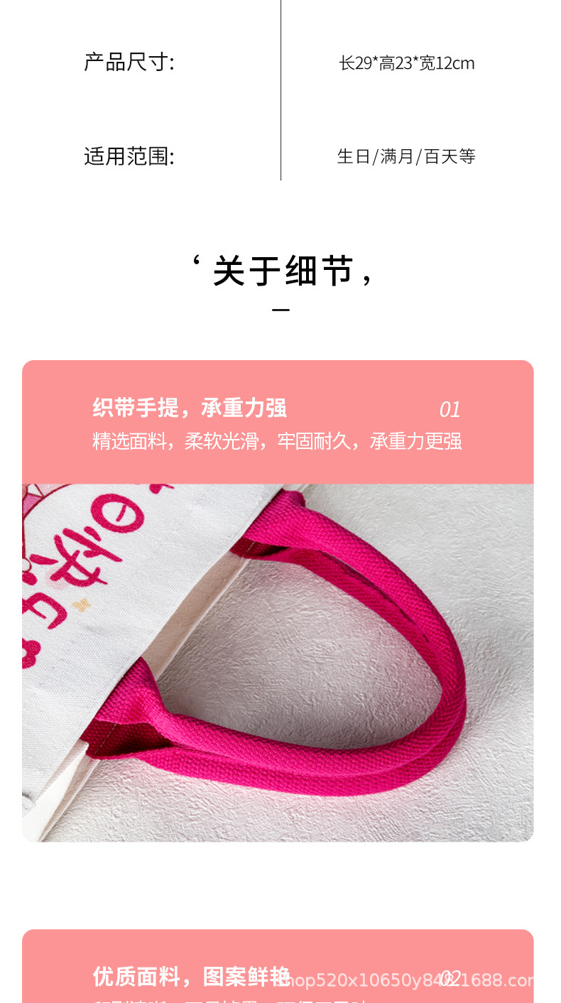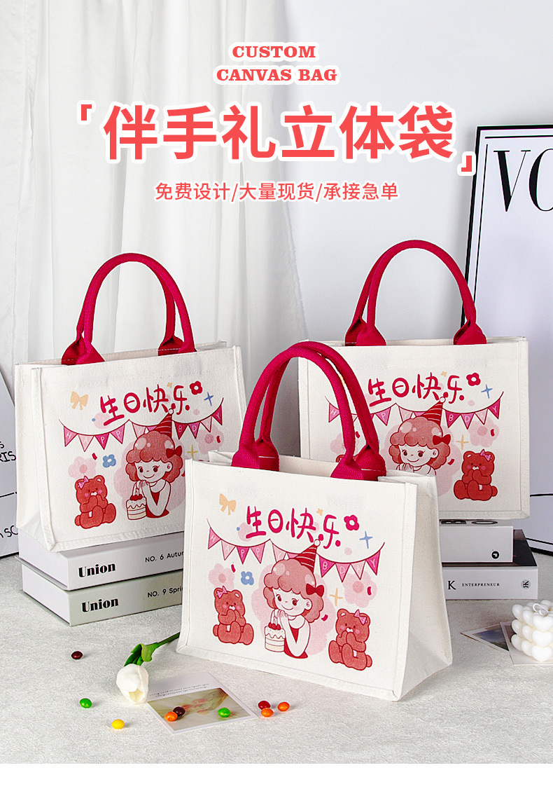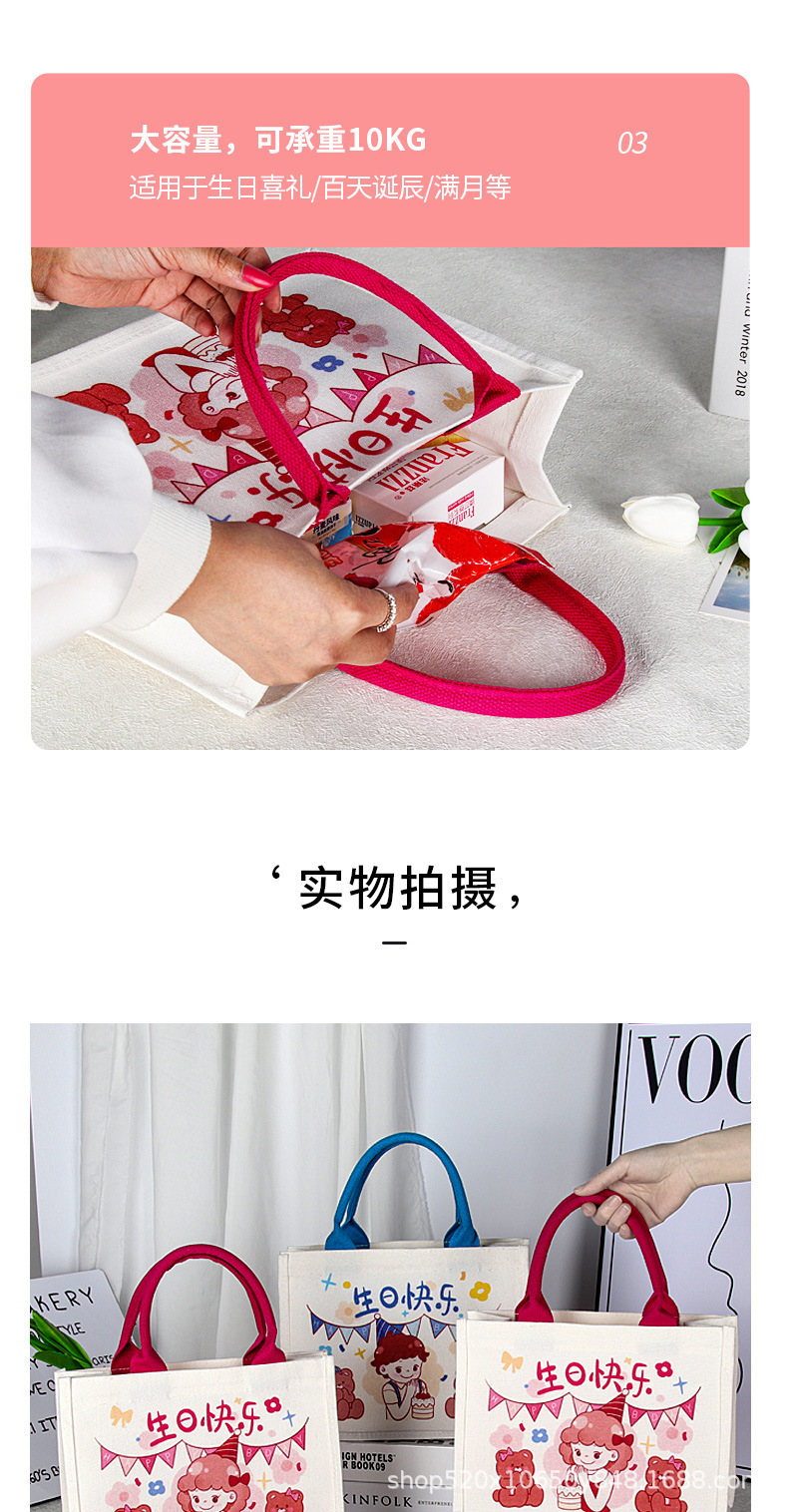 宝宝满月周岁儿童幼儿园生日伴手礼覆膜帆布袋定制立体帆布包定做 English | 投诉