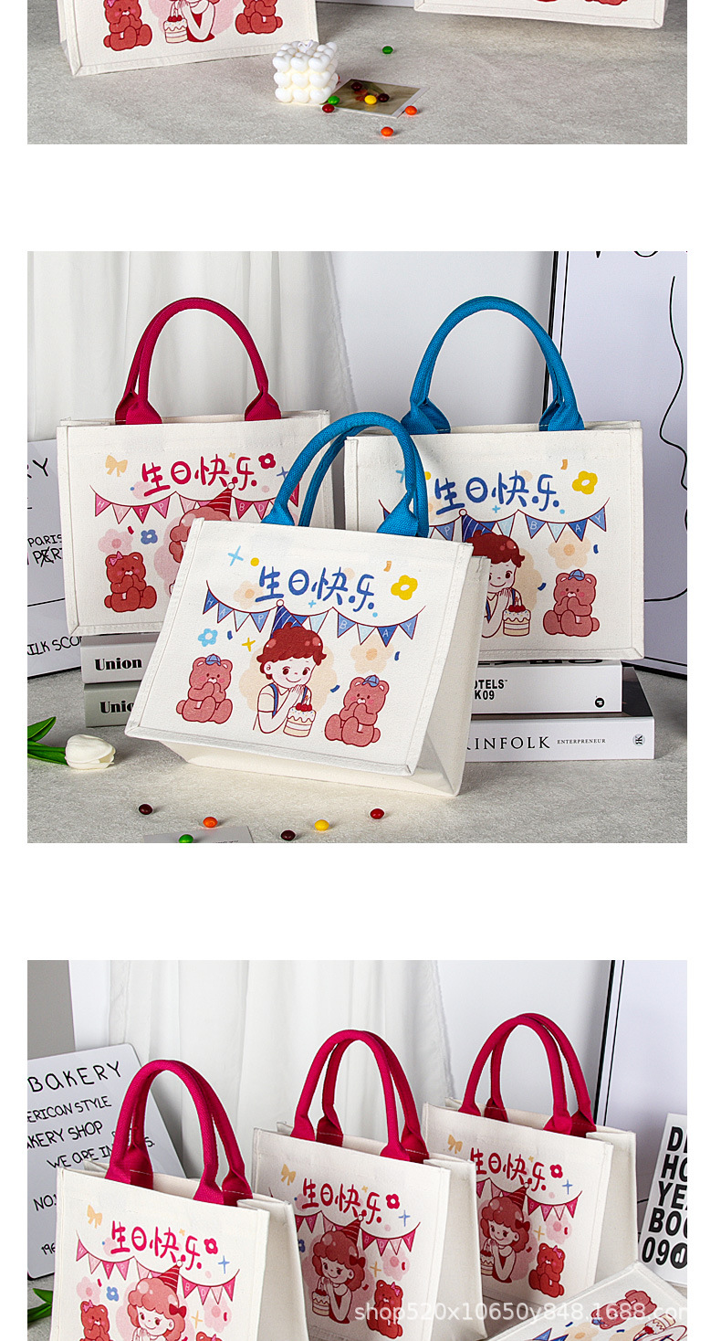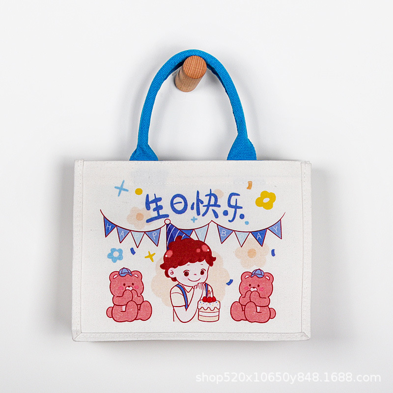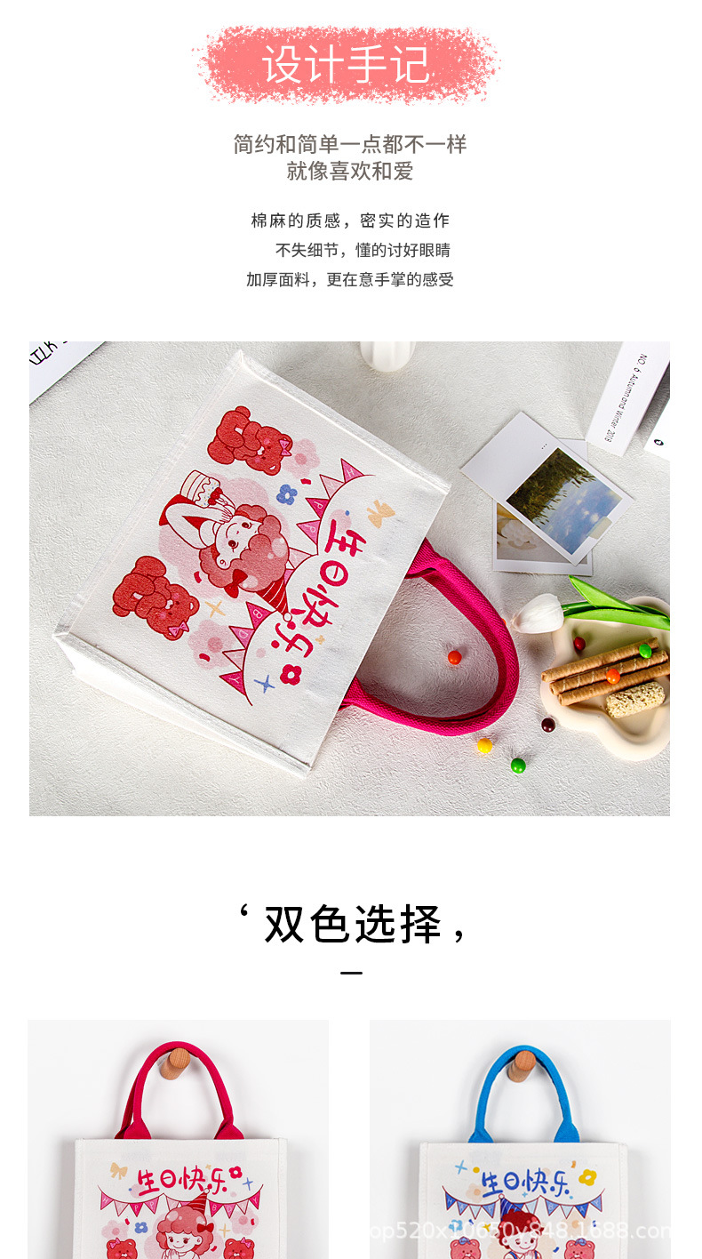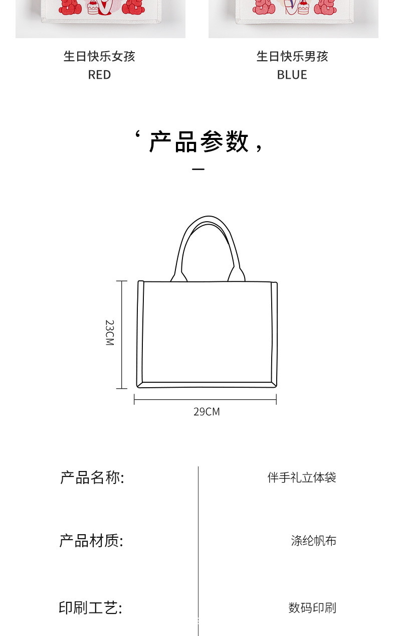 宝宝满月周岁儿童幼儿园生日伴手礼覆膜帆布袋定制立体帆布包定做 English | 投诉