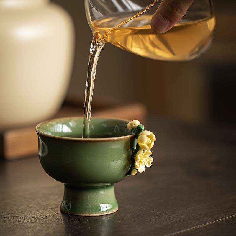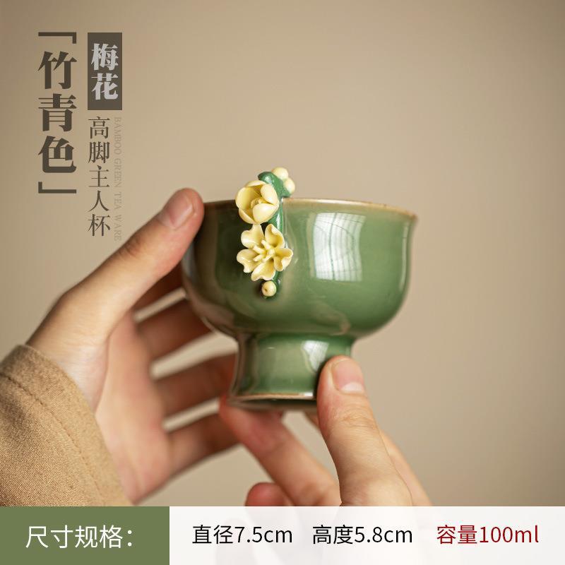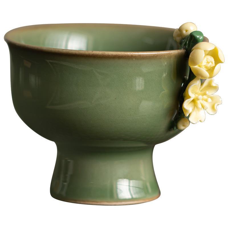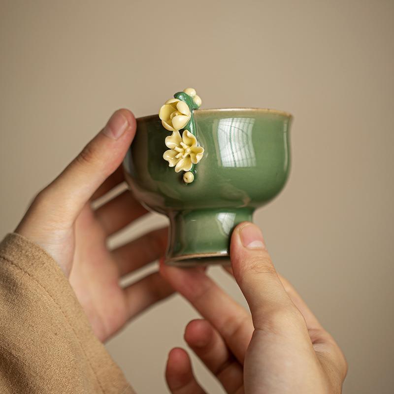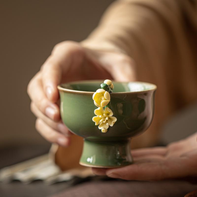 复古高脚茶杯品茗杯创意主人杯陶瓷手工捏花小茶碗功夫茶具茶道杯 English | 投诉