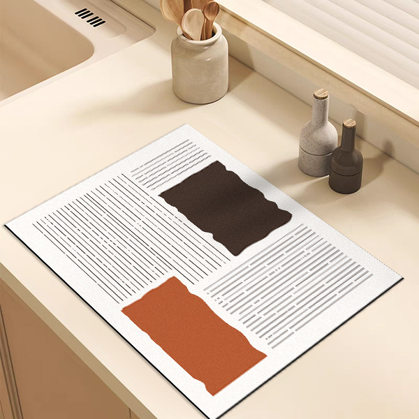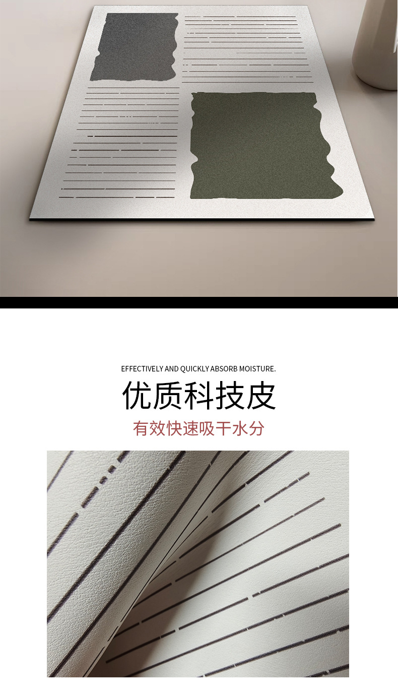 高级感线条纹理厨房台面沥水垫硅藻泥吸水垫桌面餐具干燥垫杯垫