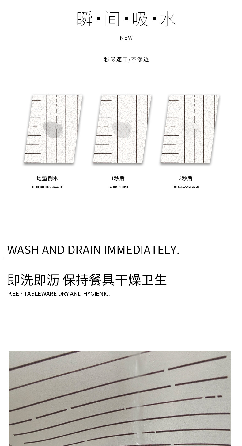 高级感线条纹理厨房台面沥水垫硅藻泥吸水垫桌面餐具干燥垫杯垫 投诉