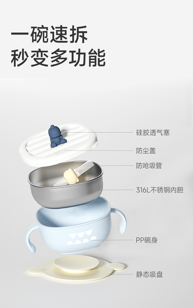 恐龙不锈钢碗【云雾蓝】+防滑吸盘 ¥2738 1675个可售