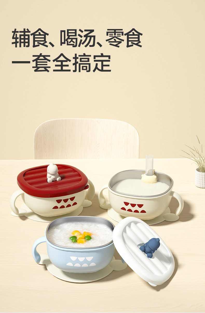如山宝宝辅食碗婴儿专用喝汤碗儿童吃饭碗外出餐具316L不锈钢碗