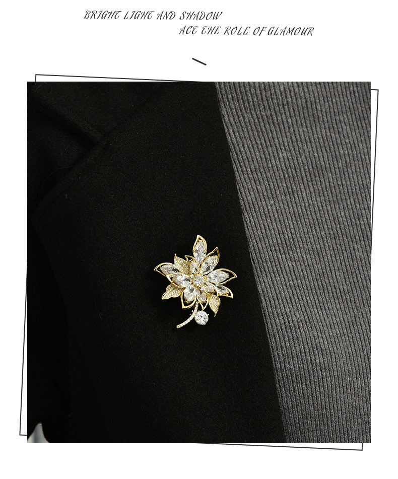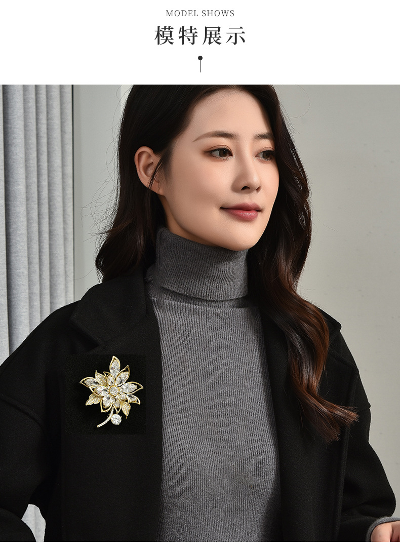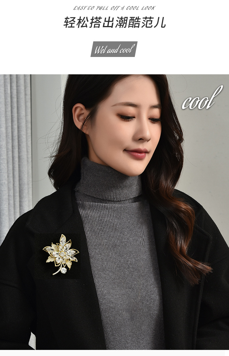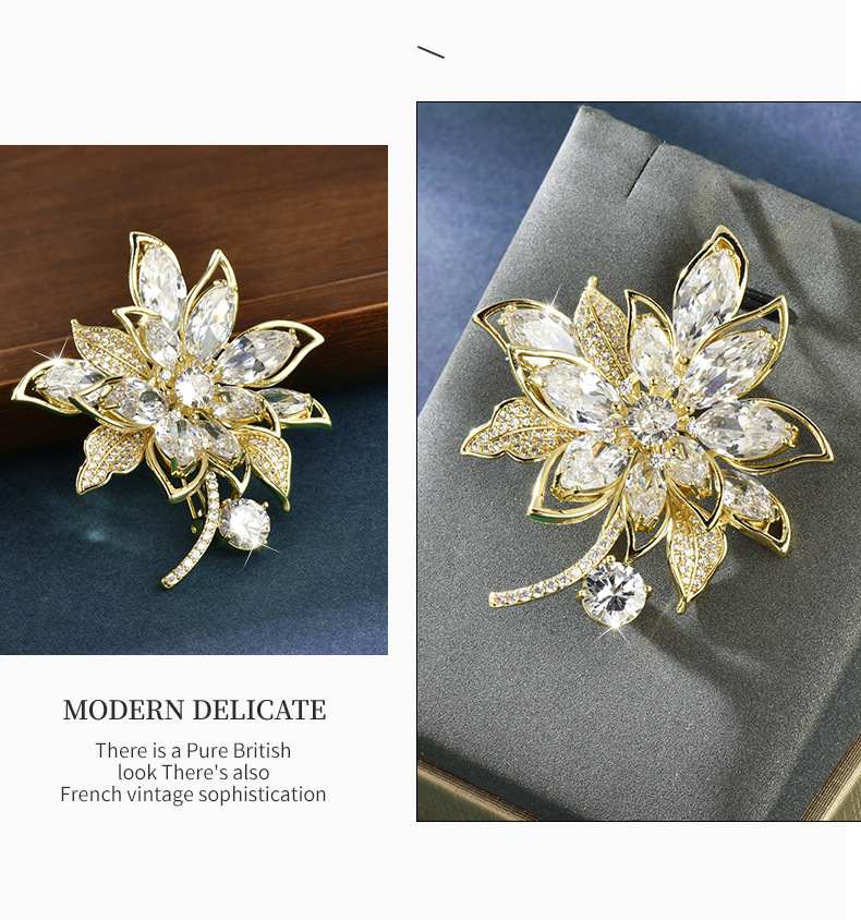 奢华水晶锆石花朵高档胸针女设计感大气百搭小众胸花衣服饰品别针 投诉
