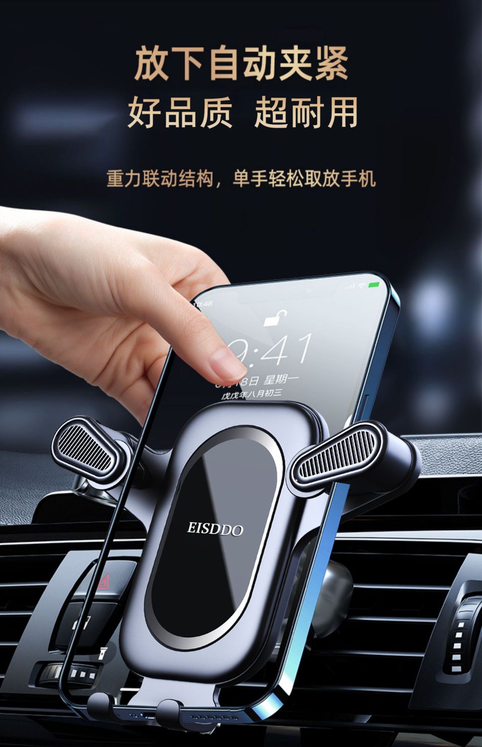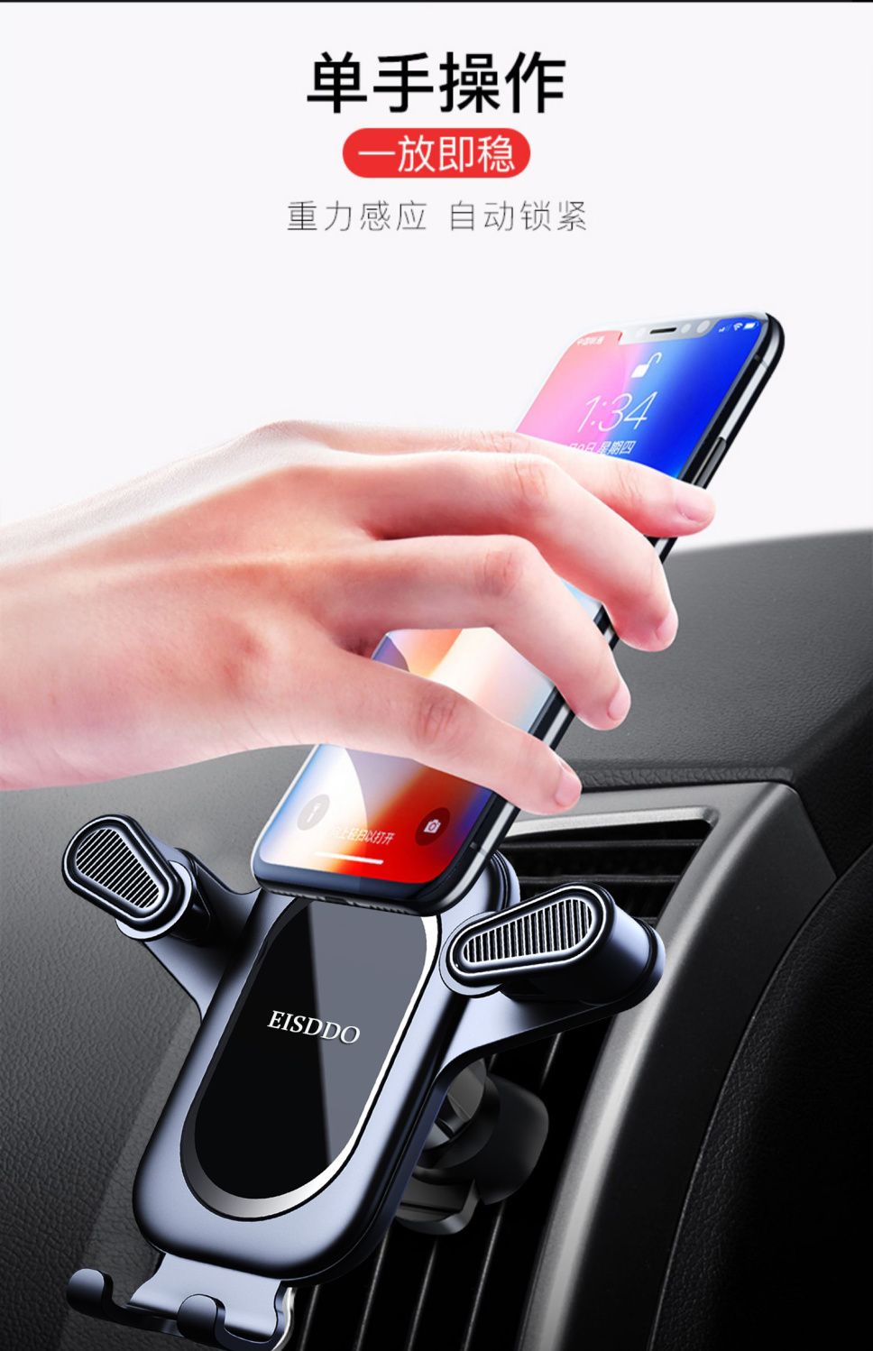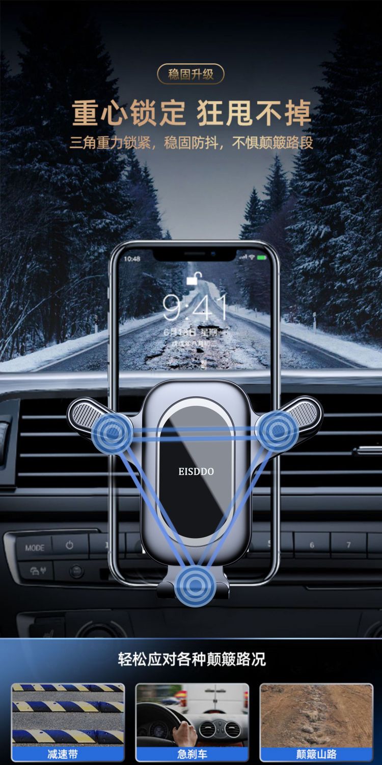 金属重力式车载手机支架车上汽车用横竖出风口导航固定支撑架新款 English | 投诉
