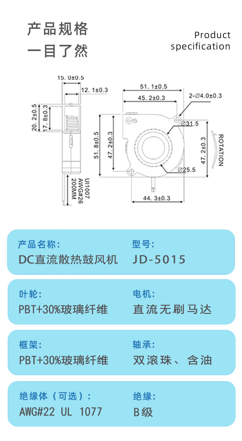 DC5015直流散热风扇5V12V微型主板空气净化器3D打印机涡轮鼓风机 投诉