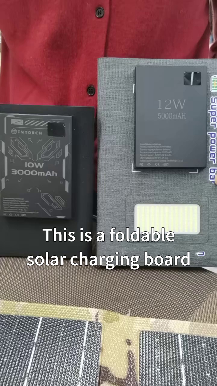 This is a foldable solar charging panel, equipped with high-quality LED lights, which can continuously illuminate for 10 hours when fully charged. It is portable and has stable voltage. The solar panel is made of high-performance monocrystalline silicon, which can be waterproof and stain resistant, increase surface wear resistance, and increase photoelectric conversion rate by 24%. It absorbs sunlight, efficiently generates electricity, and is resistant to high temperature and oxidation. In case of rainy weather, it can also be charged through AC 220V. The product has three specifications, including 18 watt 8000mAh and 12 watt 5000mAh, as well as a 10 watt 3000mAh battery with a display screen that can recognize the built-in power content. It is equipped with two USB dual outputs and can be used for mobile phones, iPad, Charging various devices such as outdoor lighting and digital cameras to meet your different outdoor needs