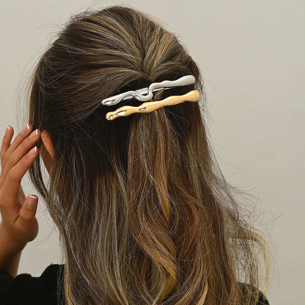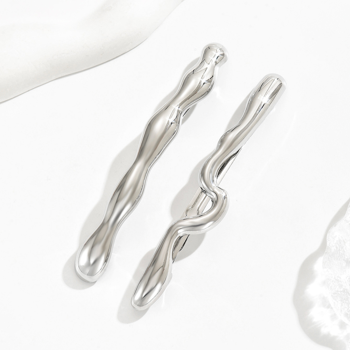 跨境新品弹簧夹欧美合金一字夹光面波浪拉丝发夹马尾发饰品