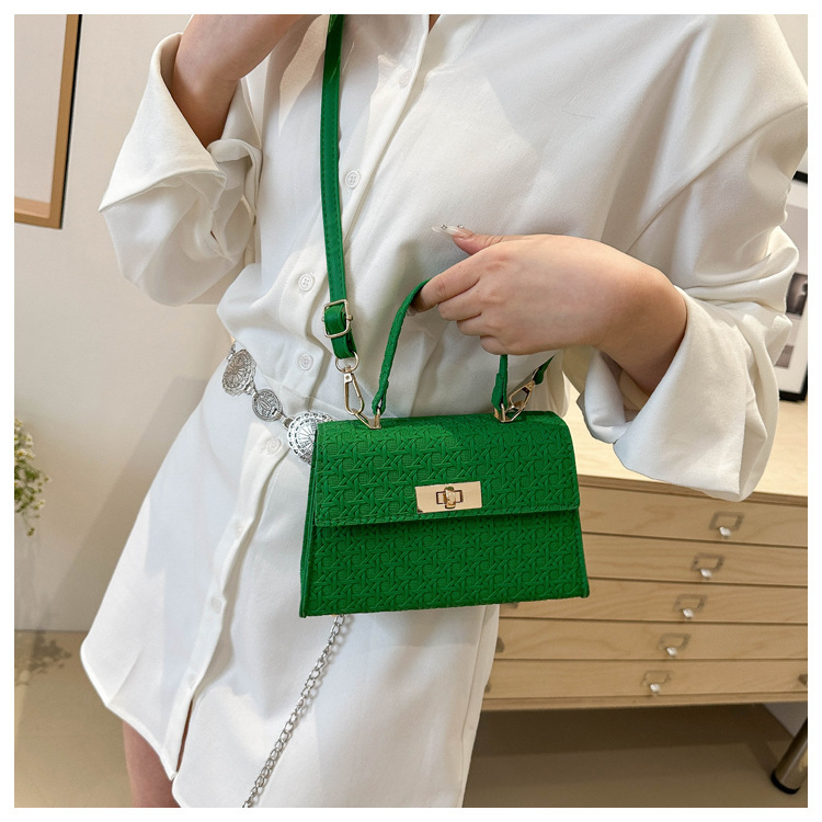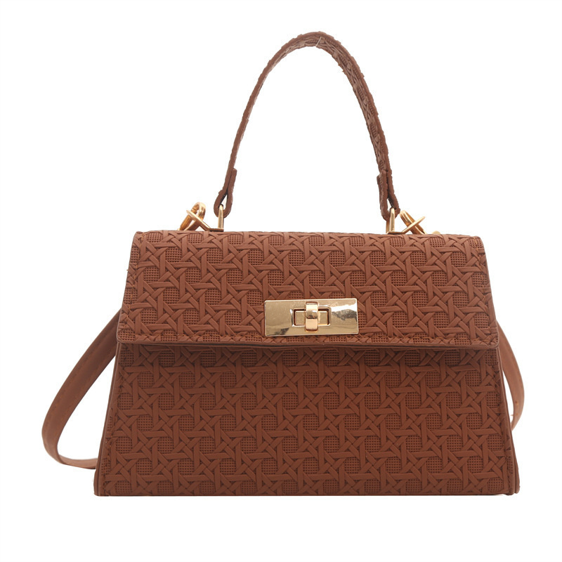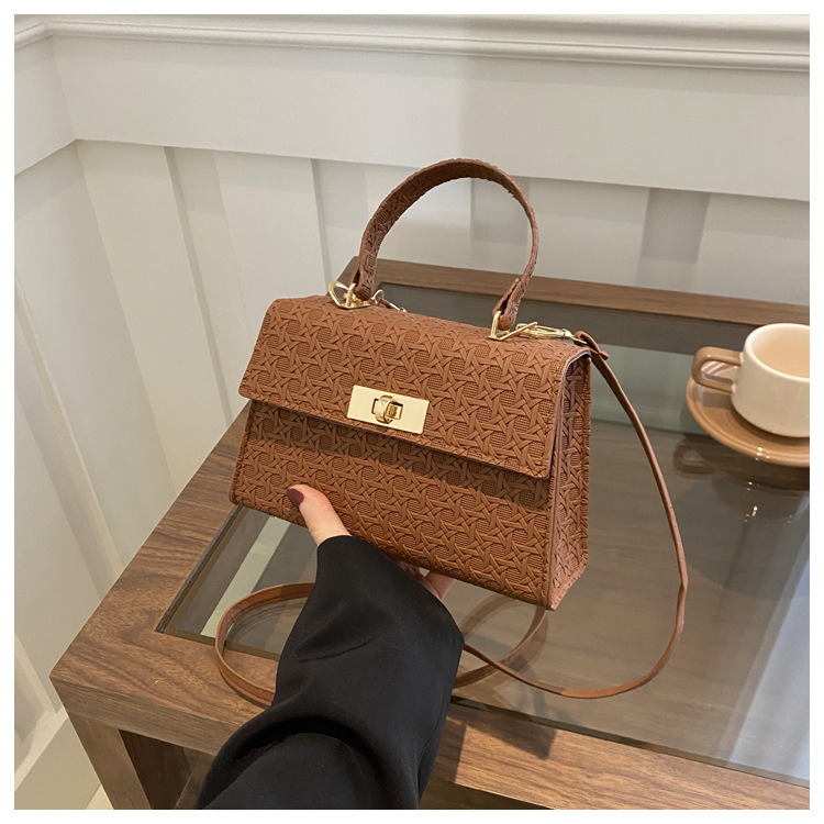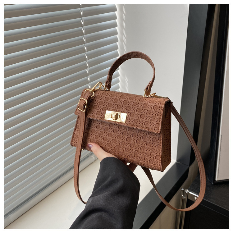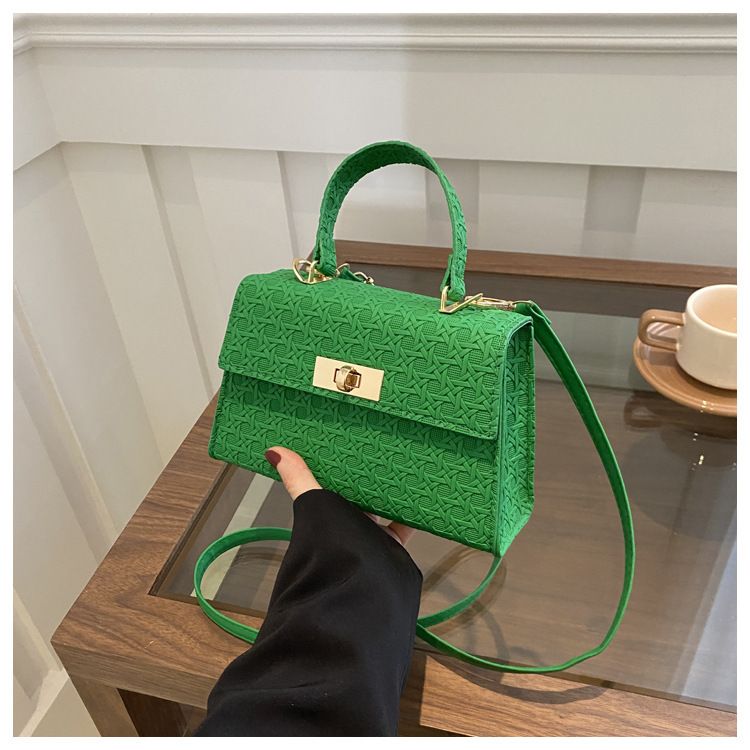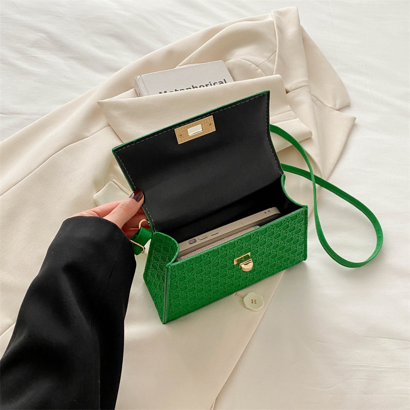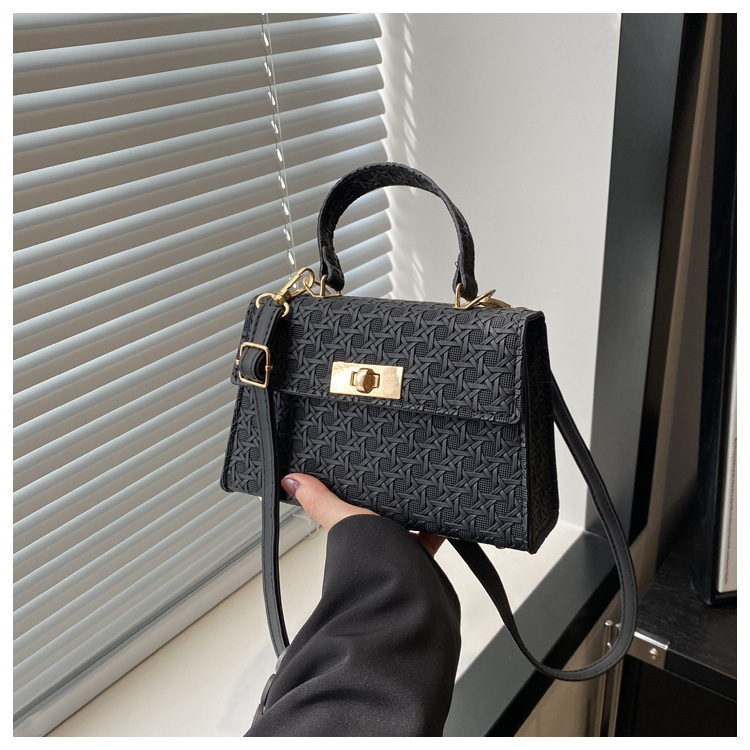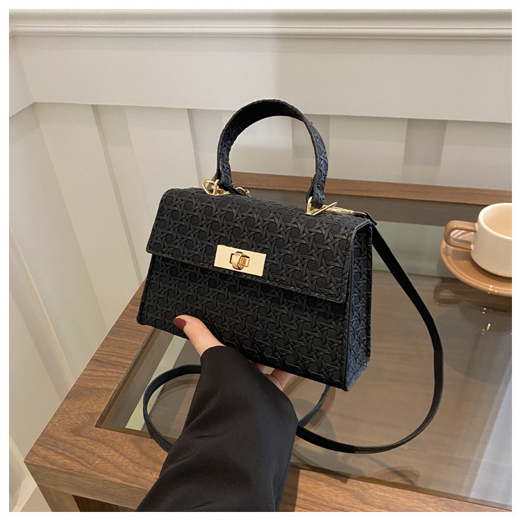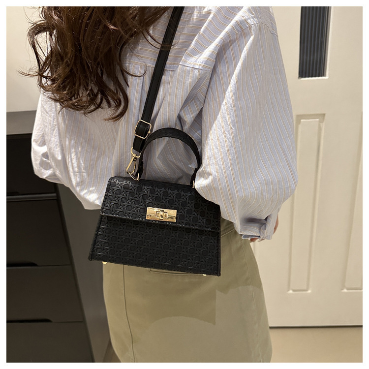 时尚压花手提包包女2024夏季新款小方包洋气纯色转锁单肩斜挎包