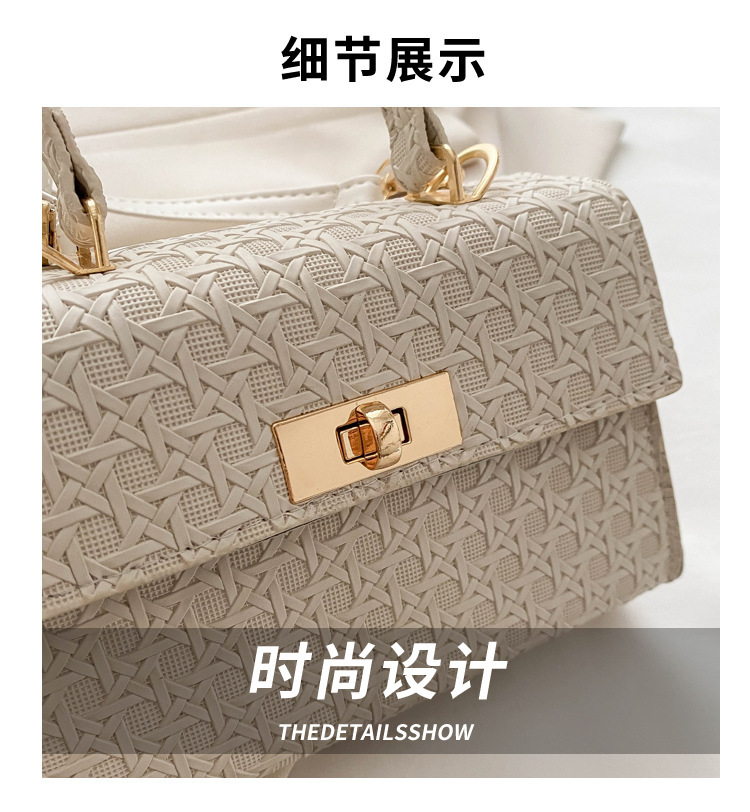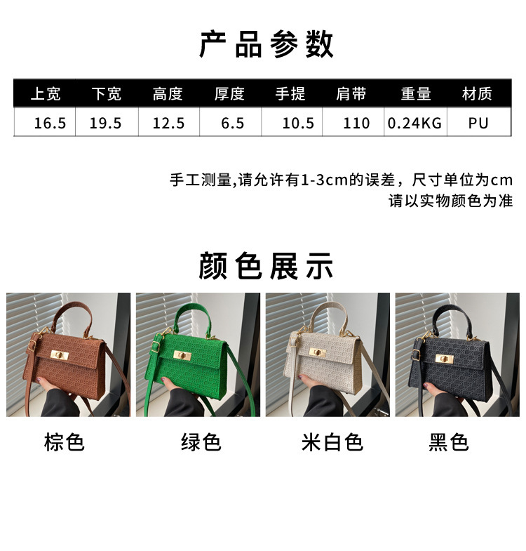时尚压花手提包包女2024夏季新款小方包洋气纯色转锁单肩斜挎包 投诉