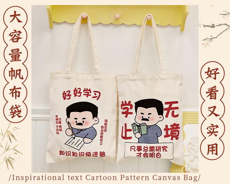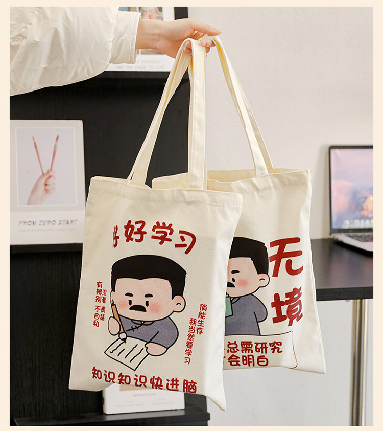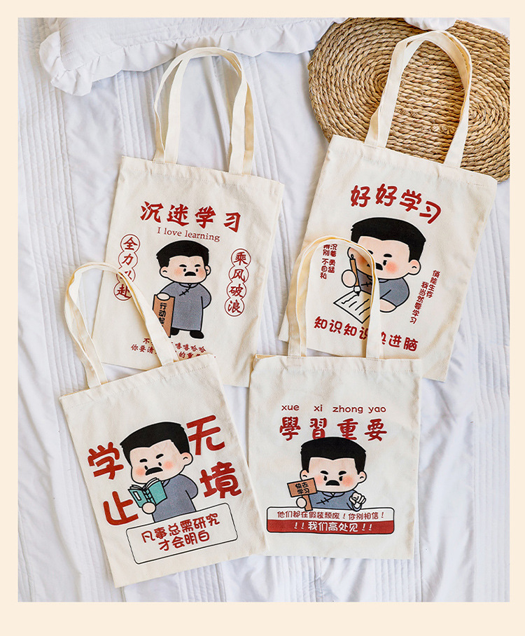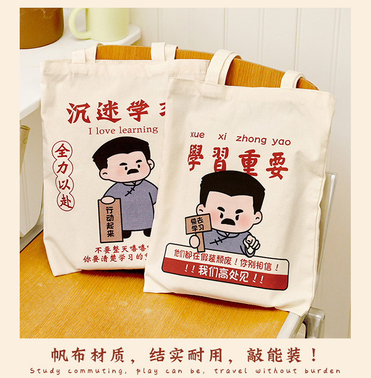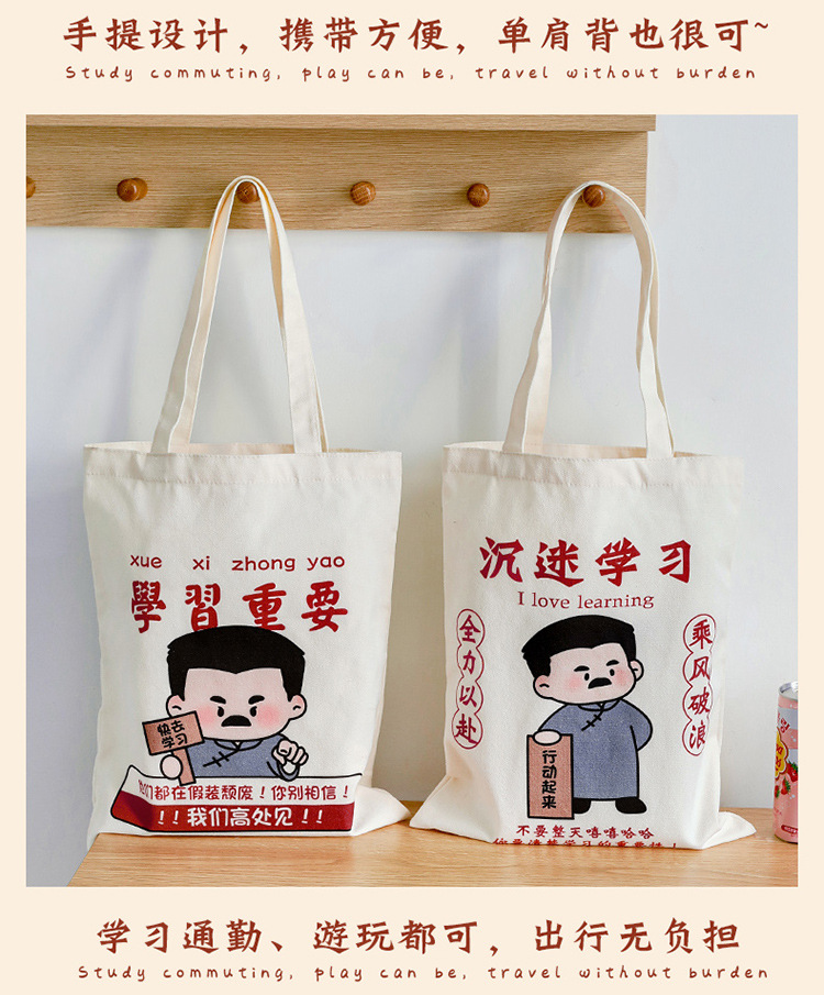 学生励志文字帆布包 高颜值手提收纳帆布袋大容量外出单肩包定制 投诉
