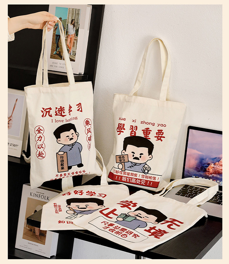学生励志文字帆布包  高颜值手提收纳帆布袋大容量外出单肩包定制