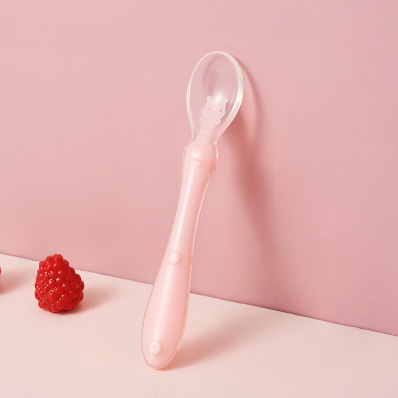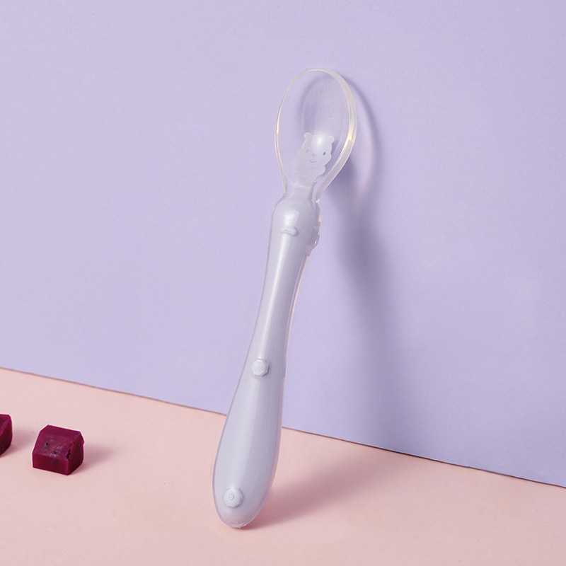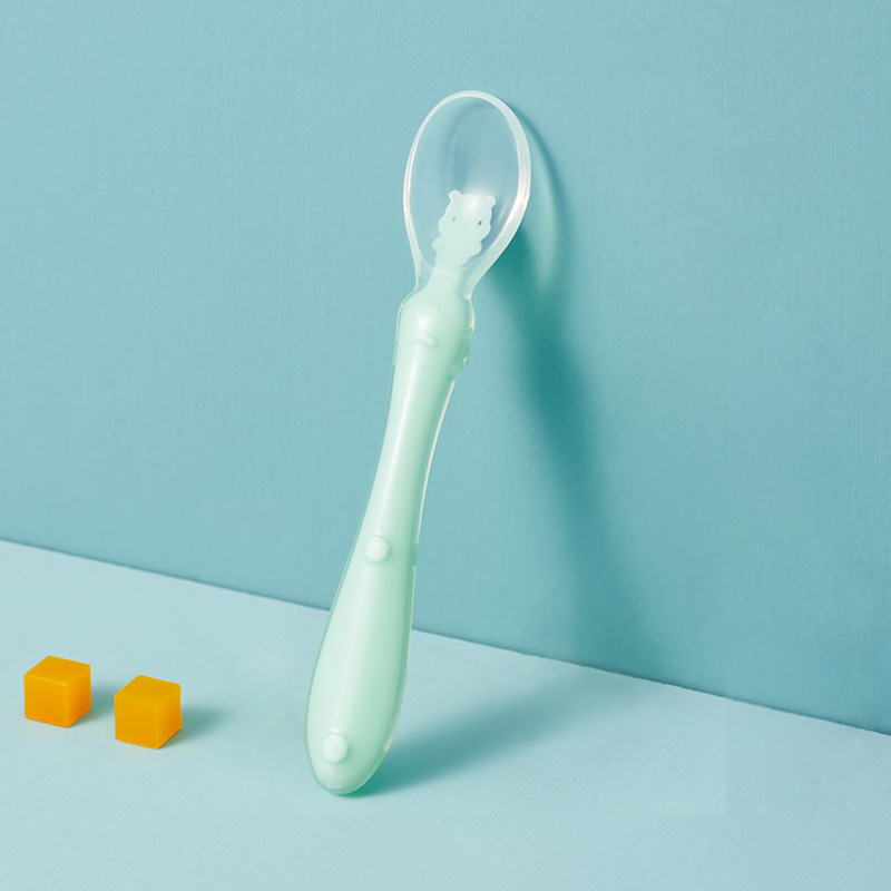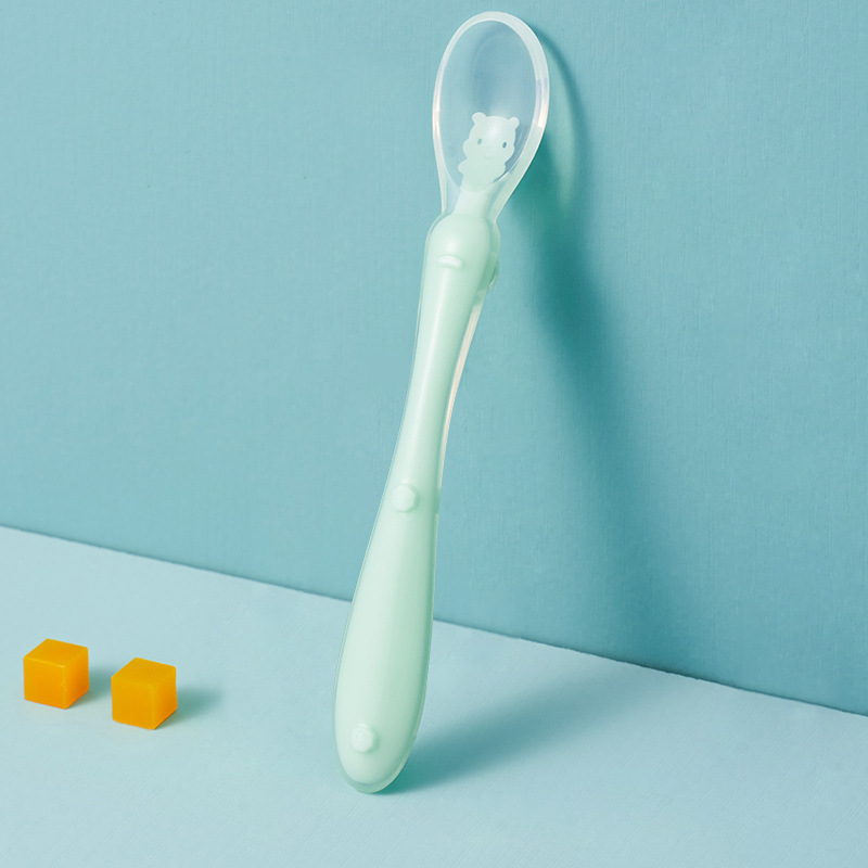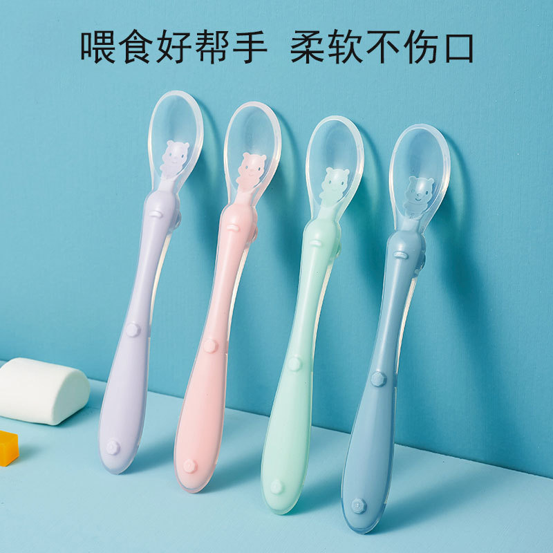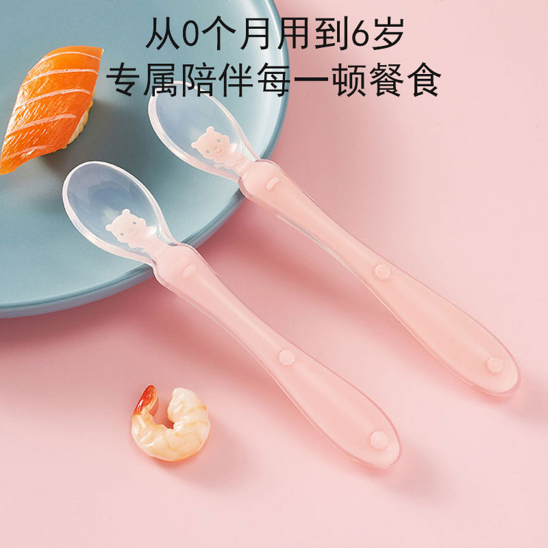 1、柔软硅胶勺头,不伤宝宝口腔,卡通造型靓丽色彩促进宝宝食欲和培养宝宝视觉能力。
