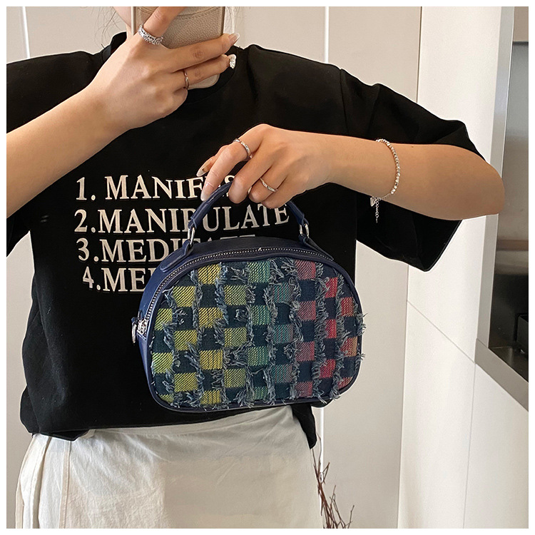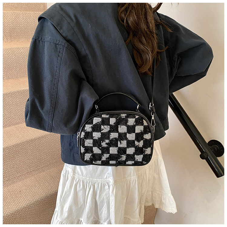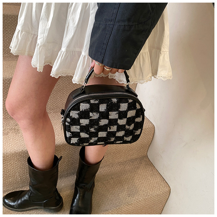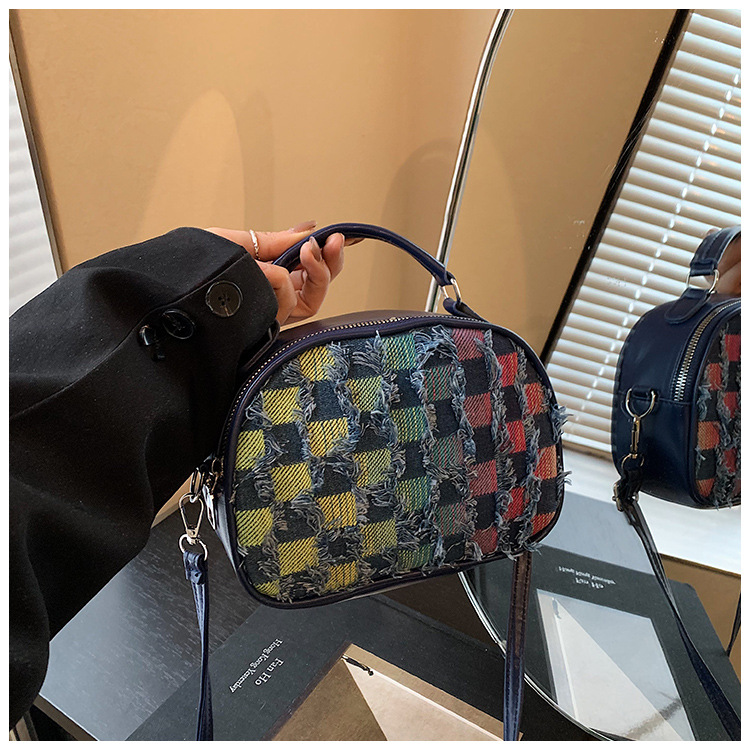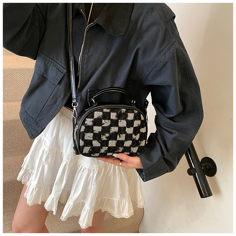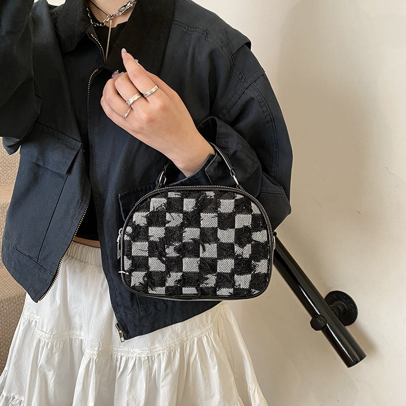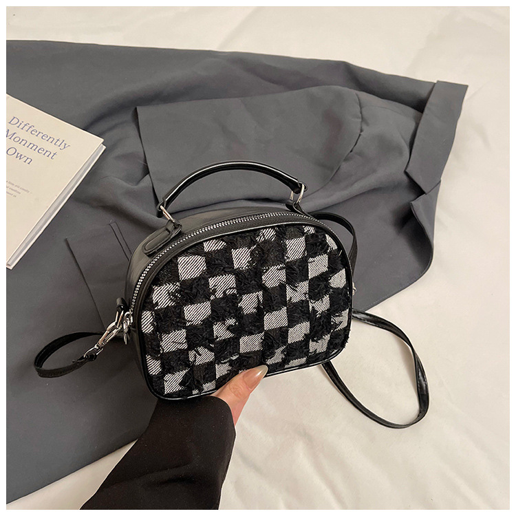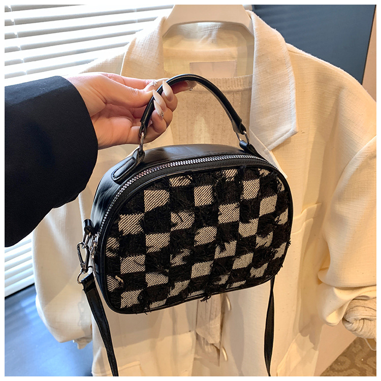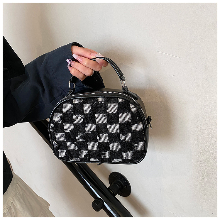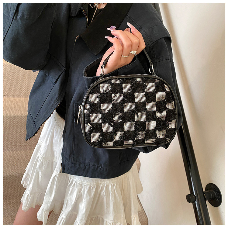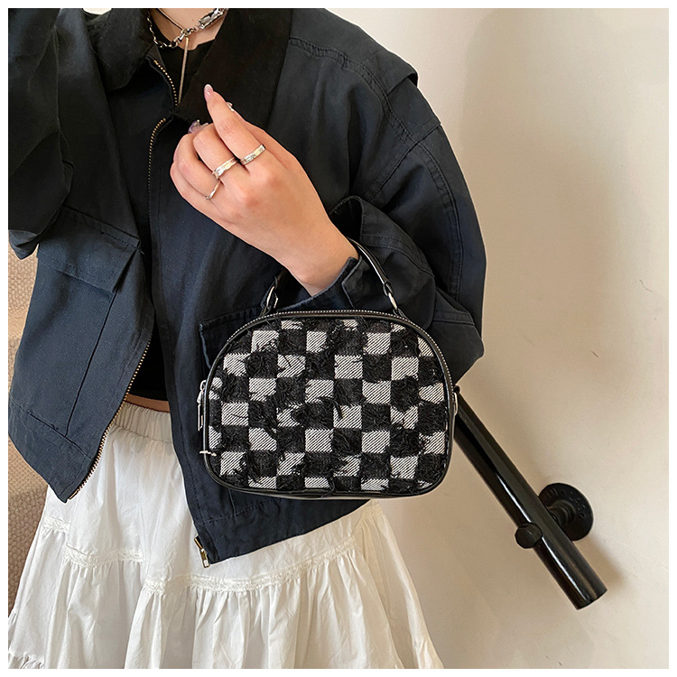 批发时尚格纹撞色手提小方包女包2025春新款轻奢单肩包网红斜挎包