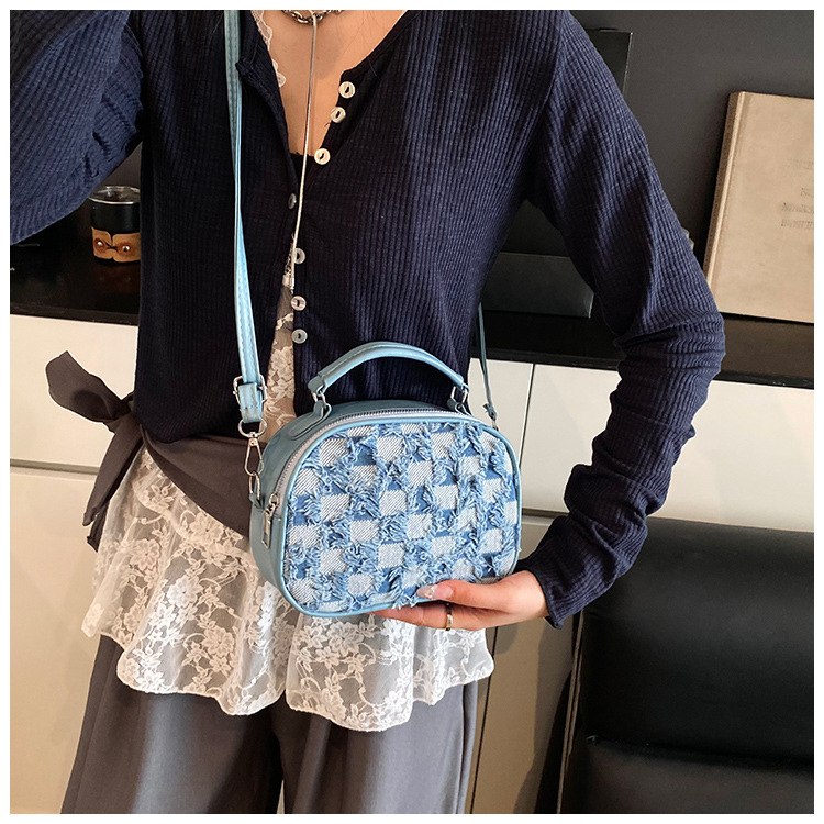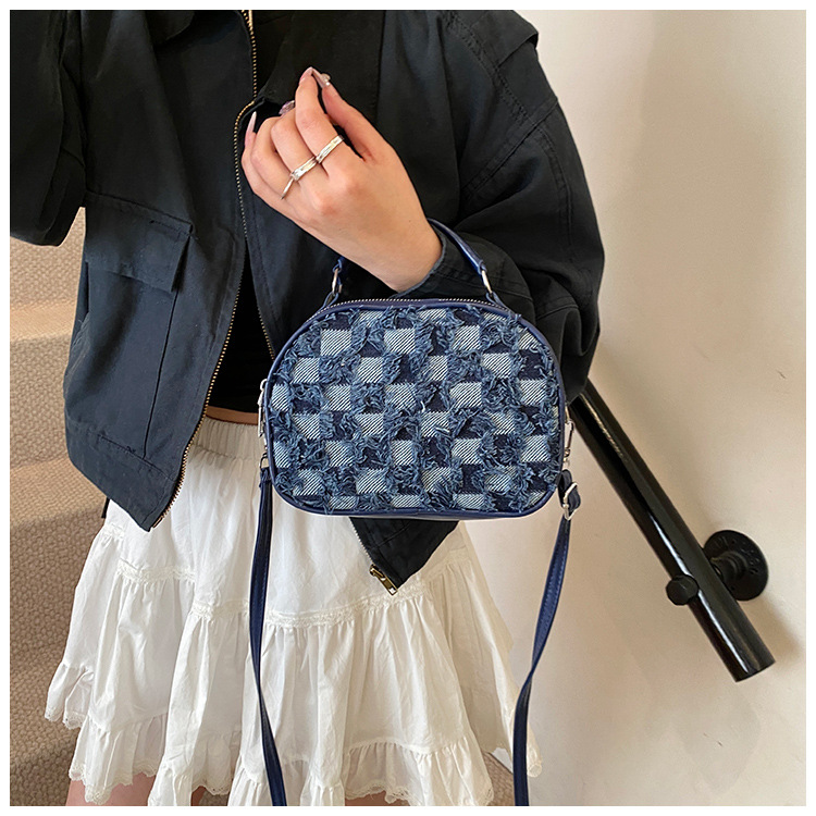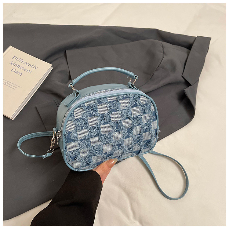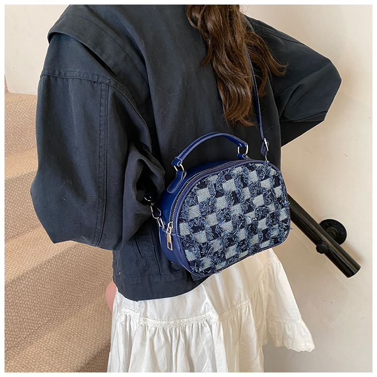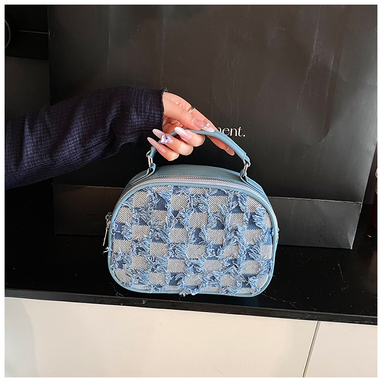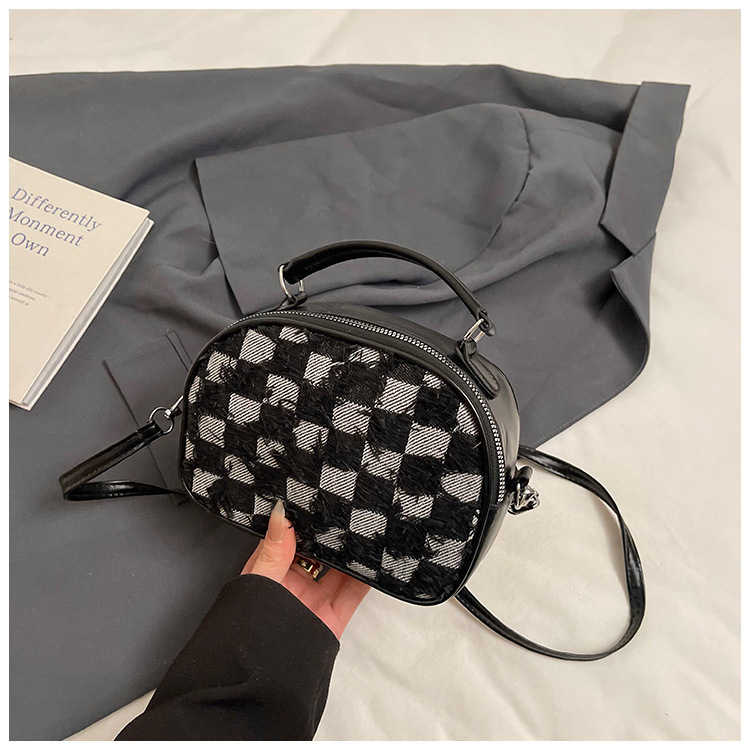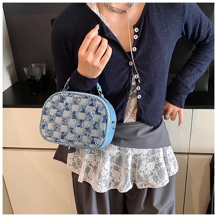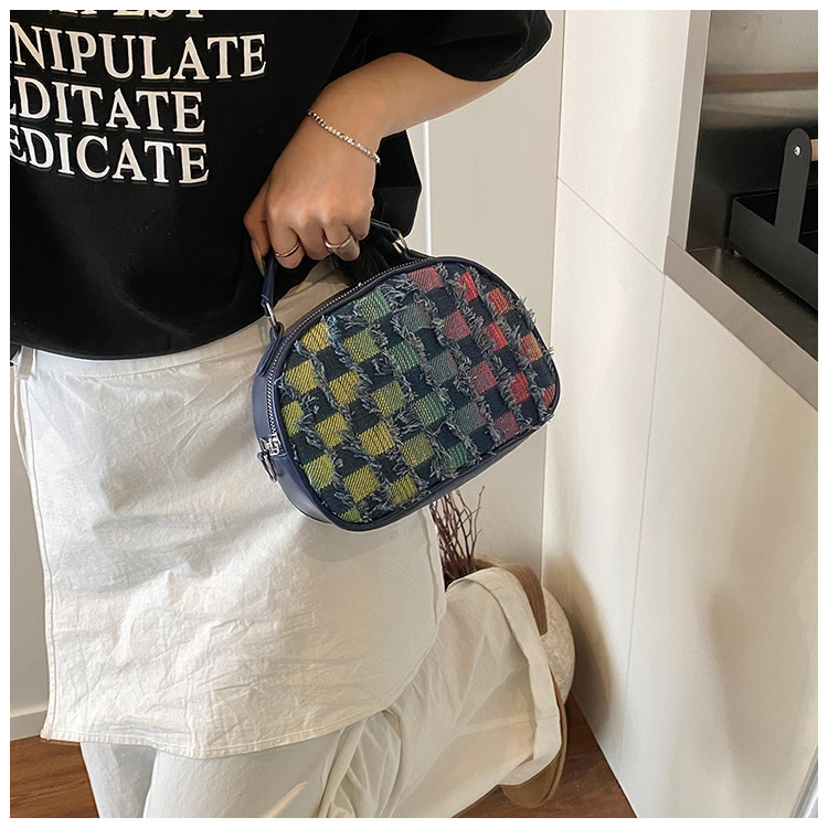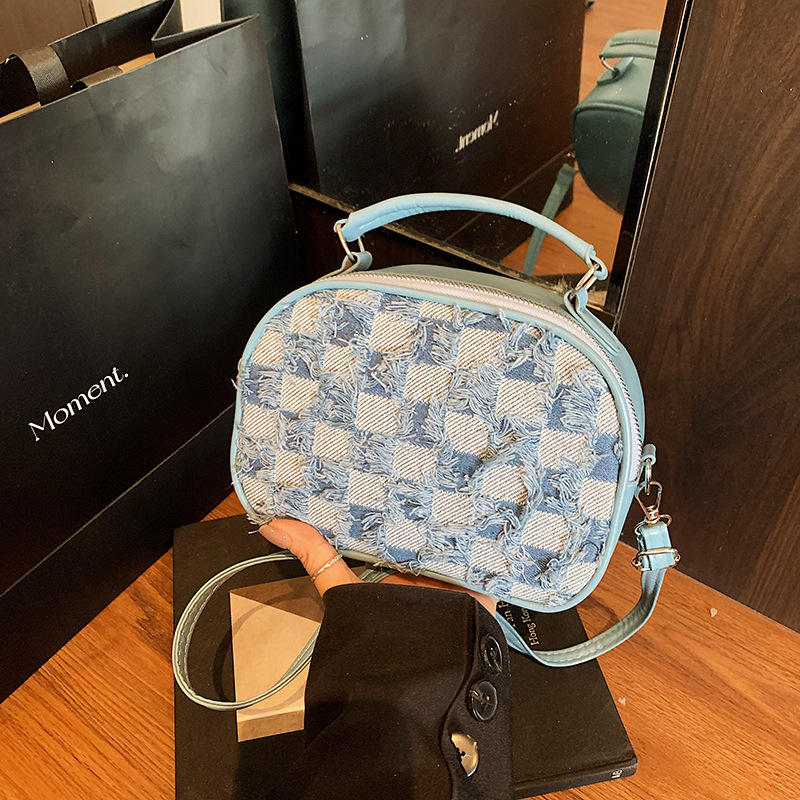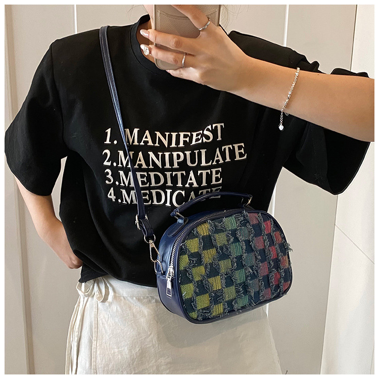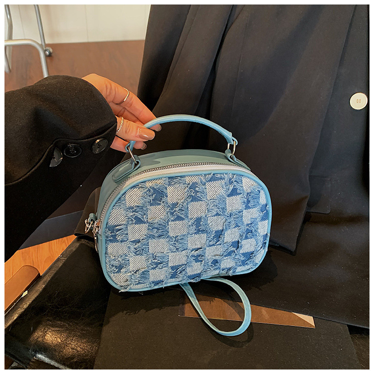批发时尚格纹撞色手提小方包女包2025春新款轻奢单肩包网红斜挎包