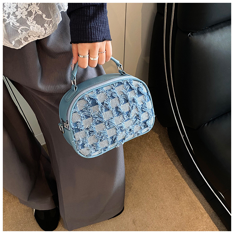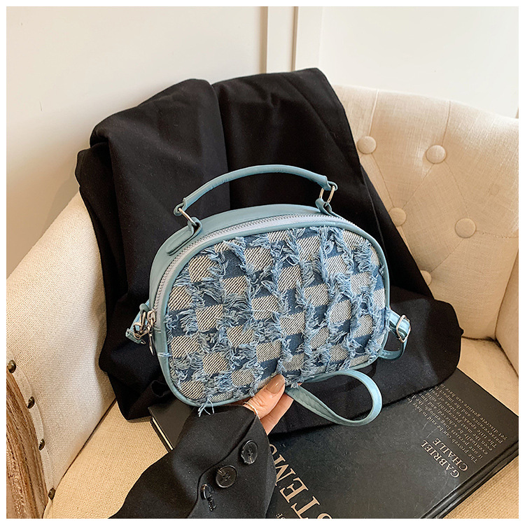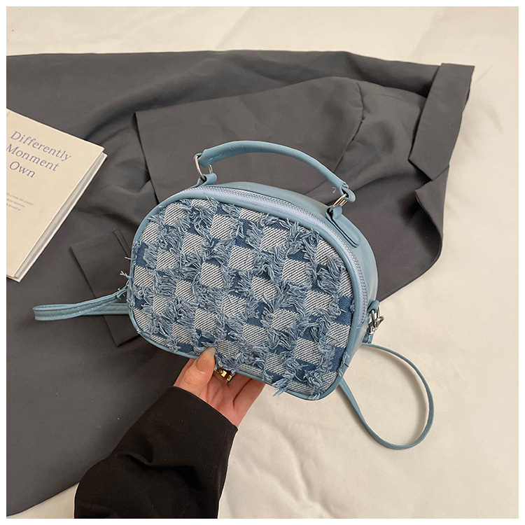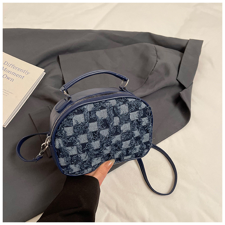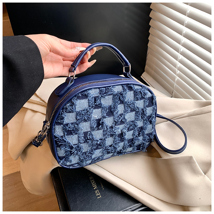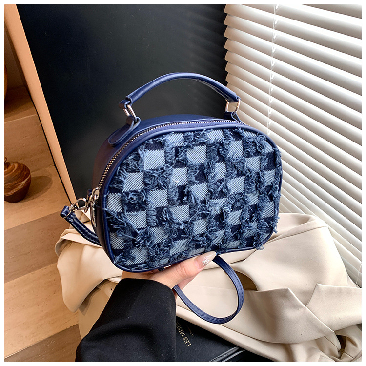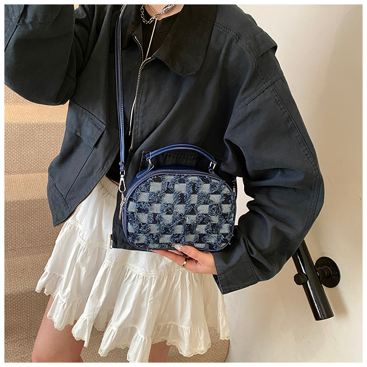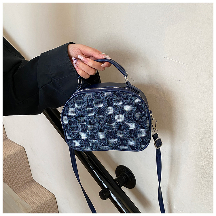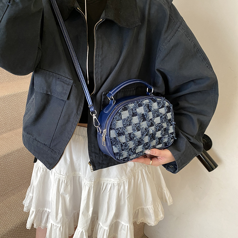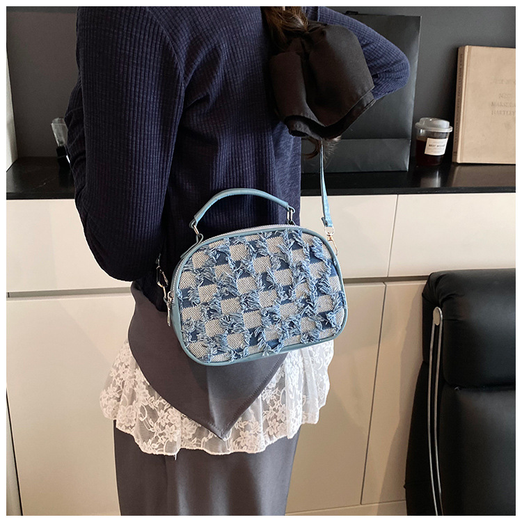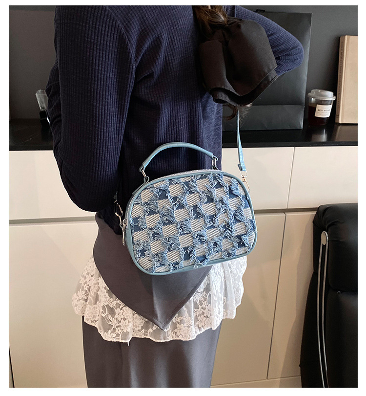 批发时尚格纹撞色手提小方包女包2025春新款轻奢单肩包网红斜挎包