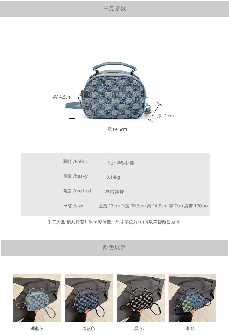 颜色: 黑色,深蓝色,浅蓝色,彩色 风格: 街头潮流 货号: A1-8991 材质: 特殊材质 箱包潮流款式: 小方包 箱包大小: 中 流行元素: 撞色,格纹 上市年份季节: 2025年春季 里料质地: 涤纶 箱包形状: 横款方型 重量: 0.2 kg/件