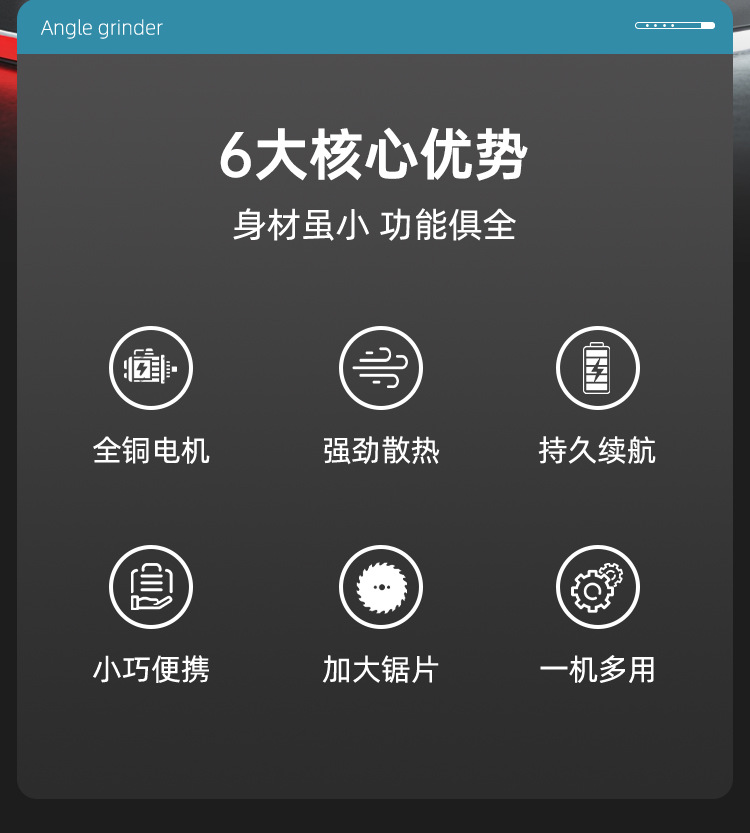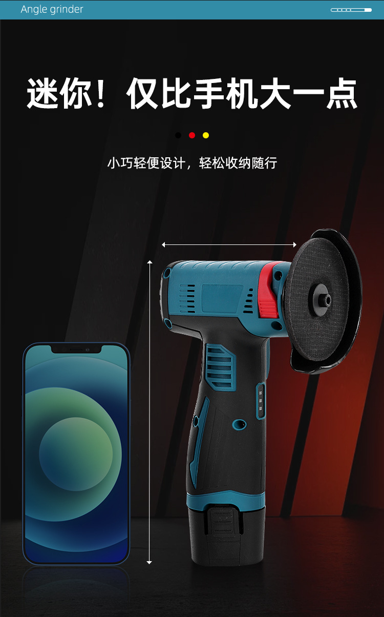 电动工具迷你锂电角磨机无绳款便携手持打磨抛光机家用小型切割机 English | 投诉