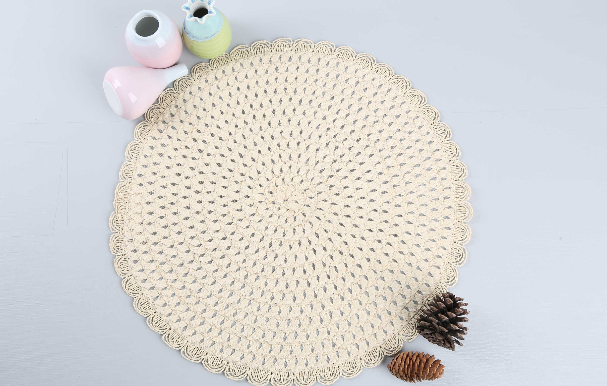 2025新款纸草编织餐垫,颜色也可定制,一箱有300片,每12片一包,纸箱规格为40*40*30,一箱毛重大概17.14KG