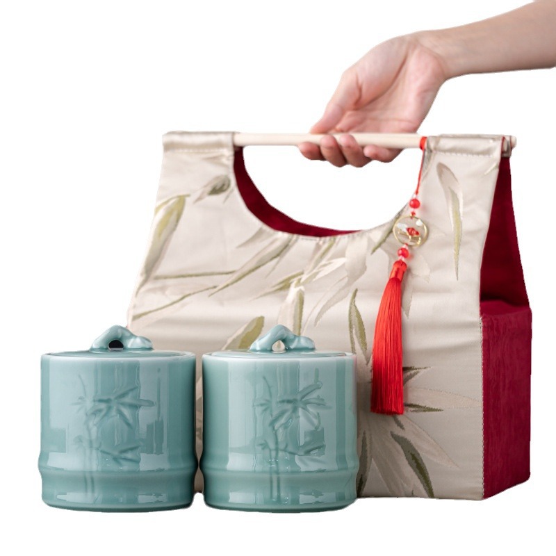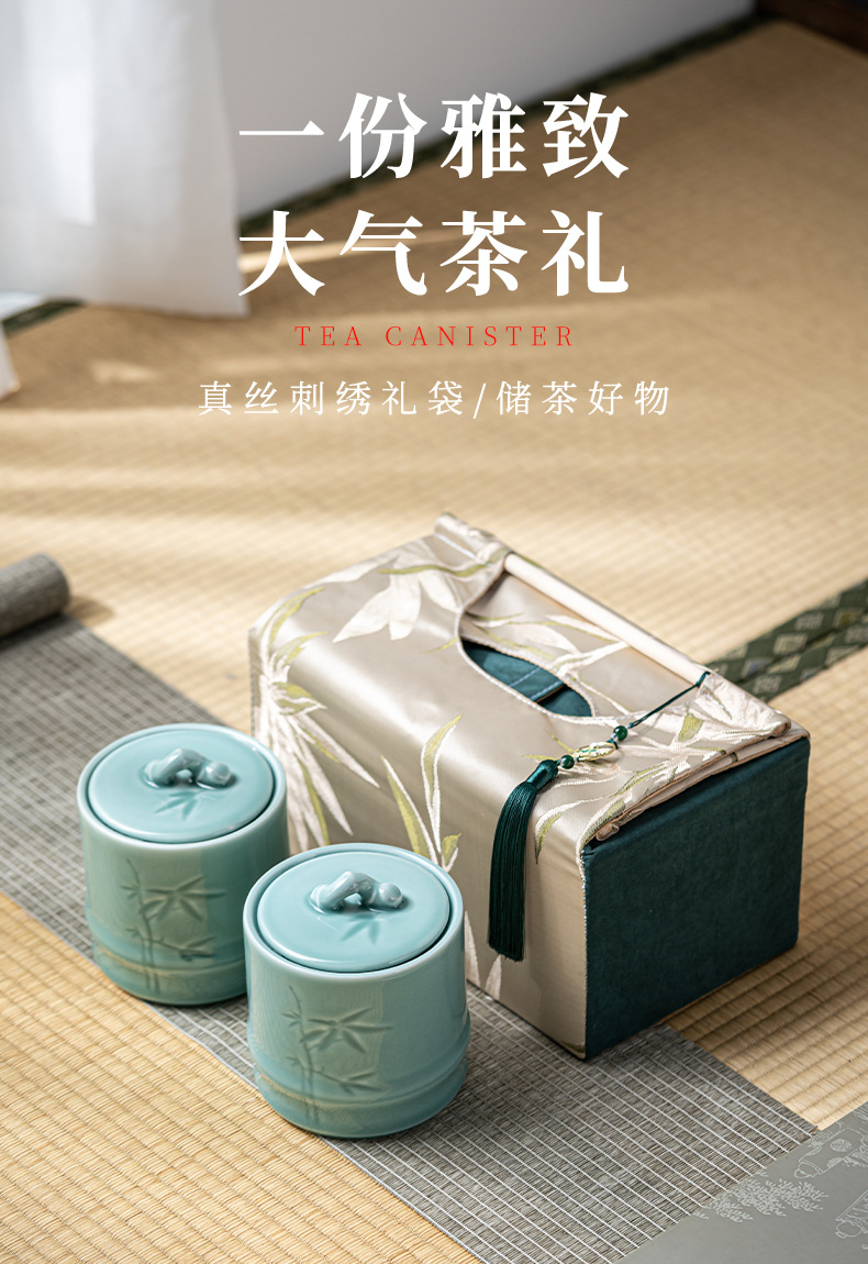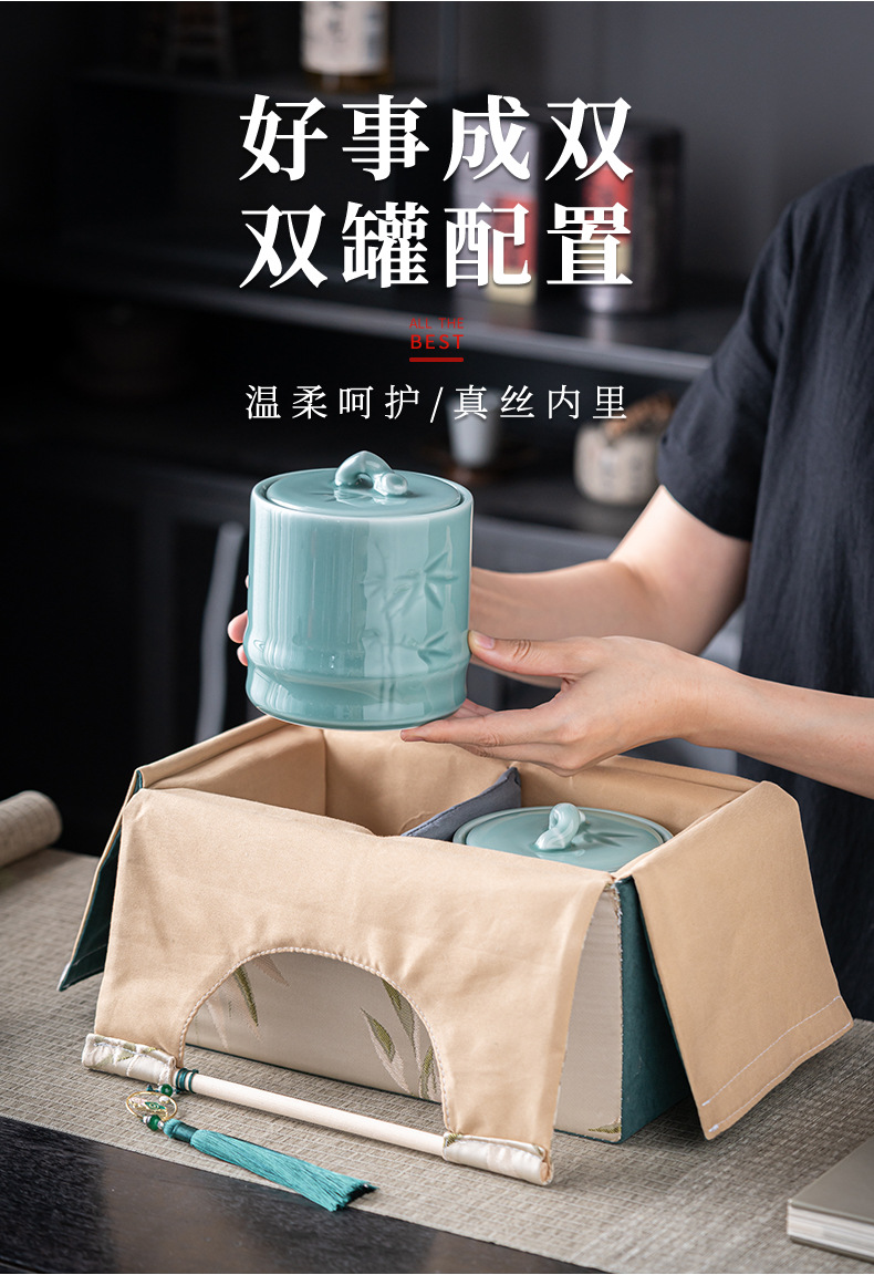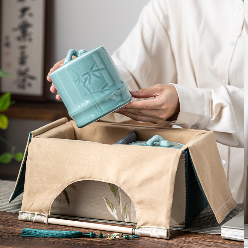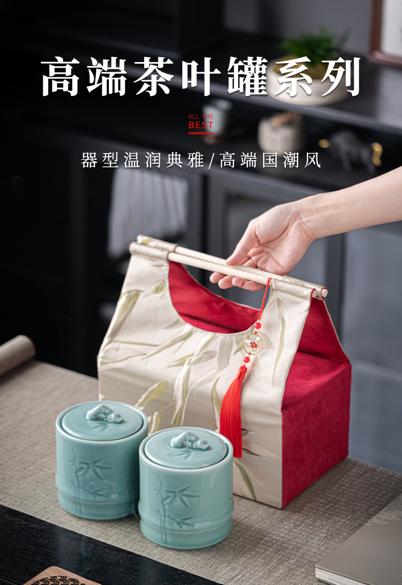 轻奢布包茶叶罐套装陶瓷茶仓防潮密封罐存储罐创意伴手礼定制logo