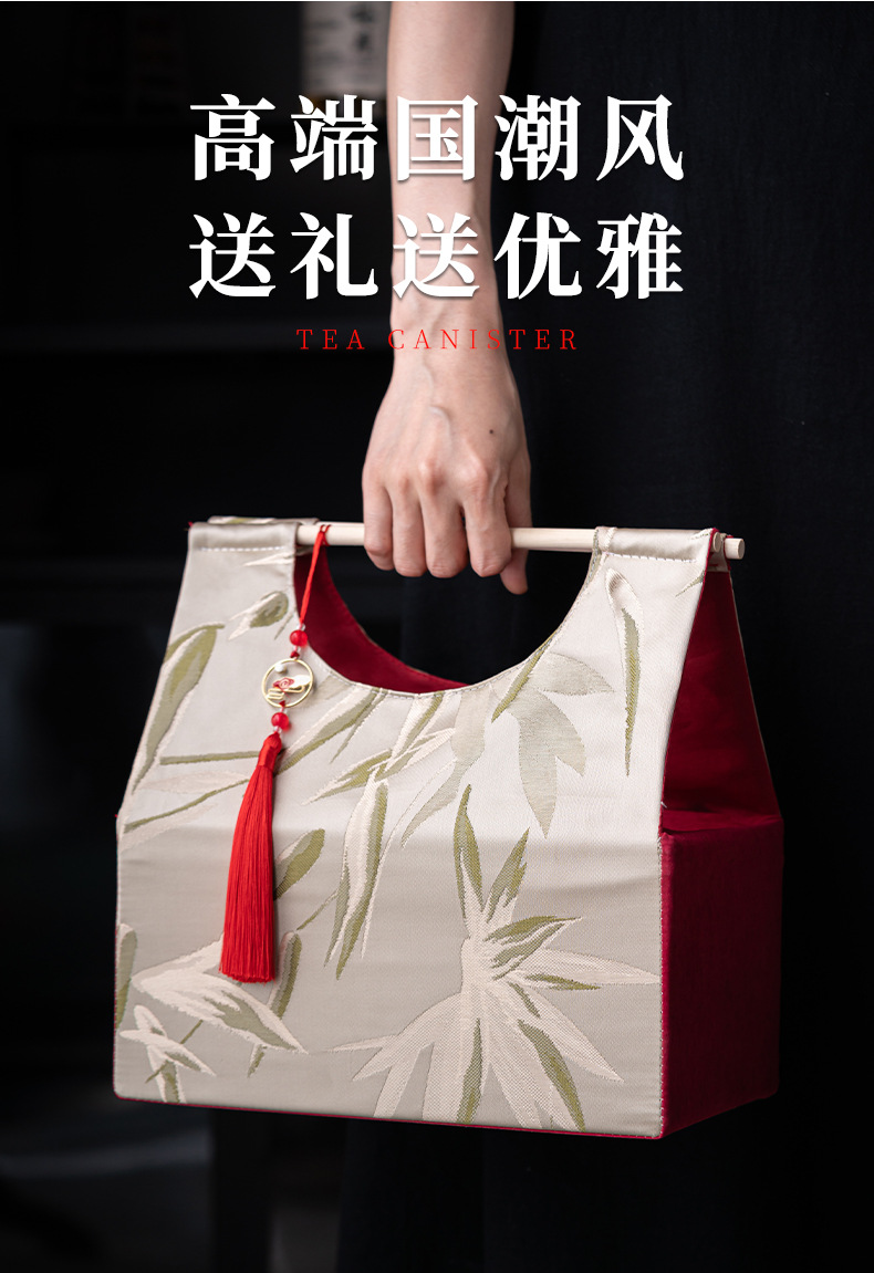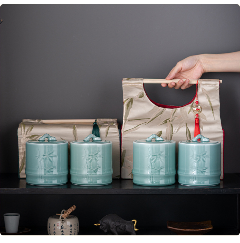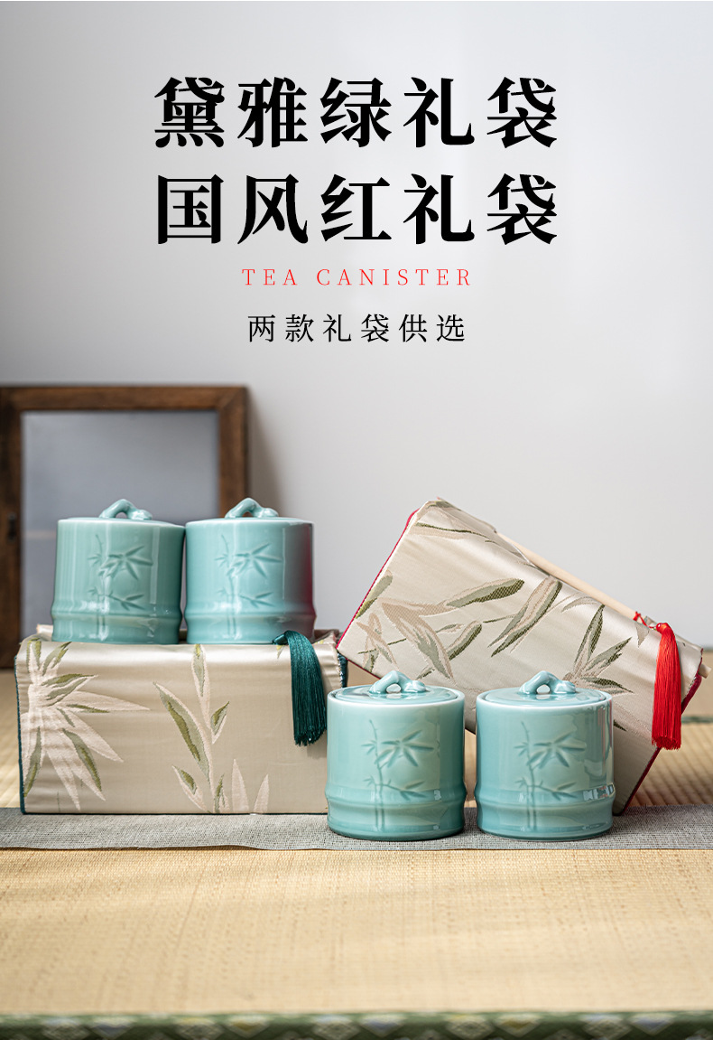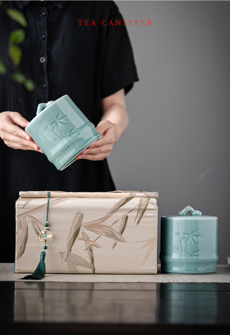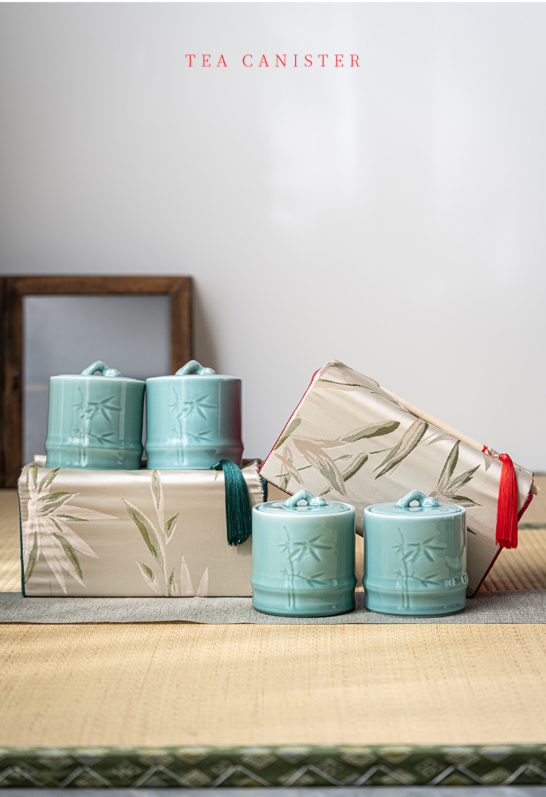 轻奢布包茶叶罐套装陶瓷茶仓防潮密封罐存储罐创意伴手礼定制logo