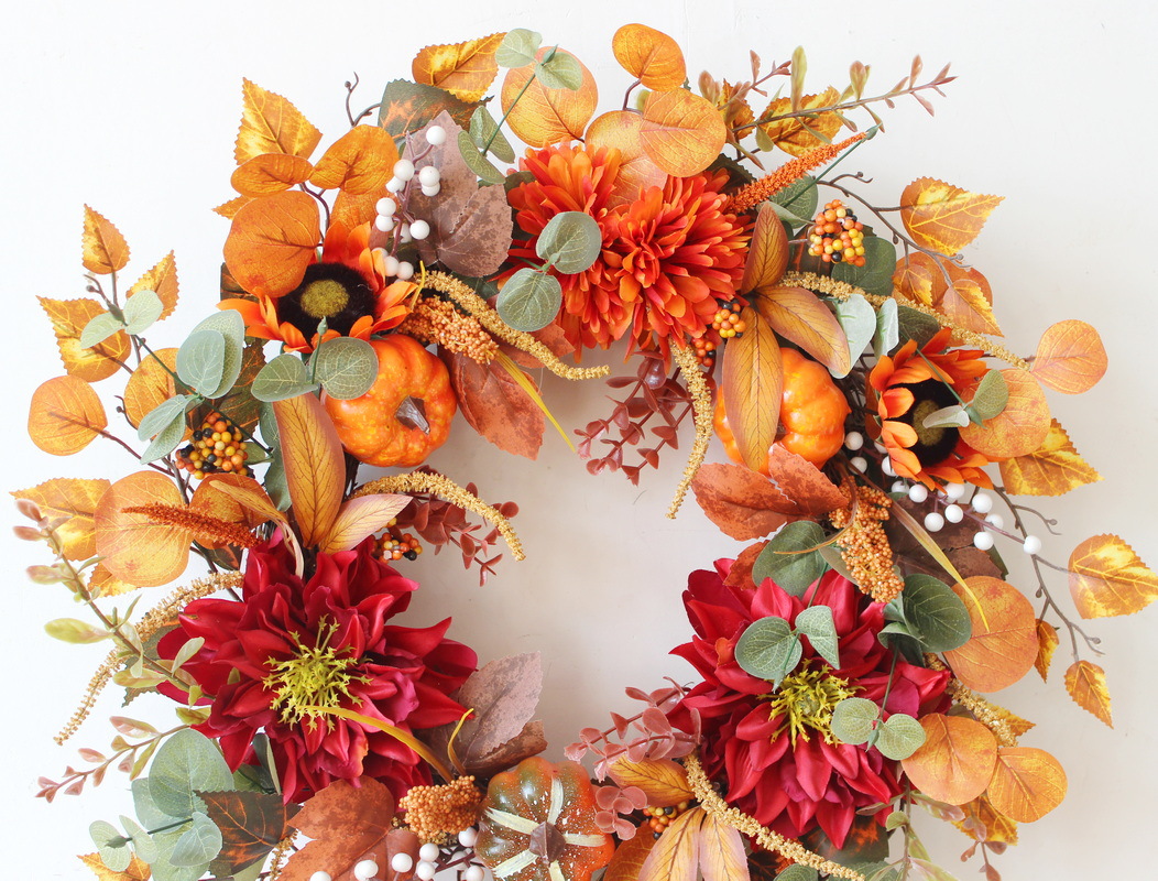 2023 跨境电商亚马逊 秋色感恩丰收节枫叶南瓜浆果真藤花环挂饰 English | 投诉