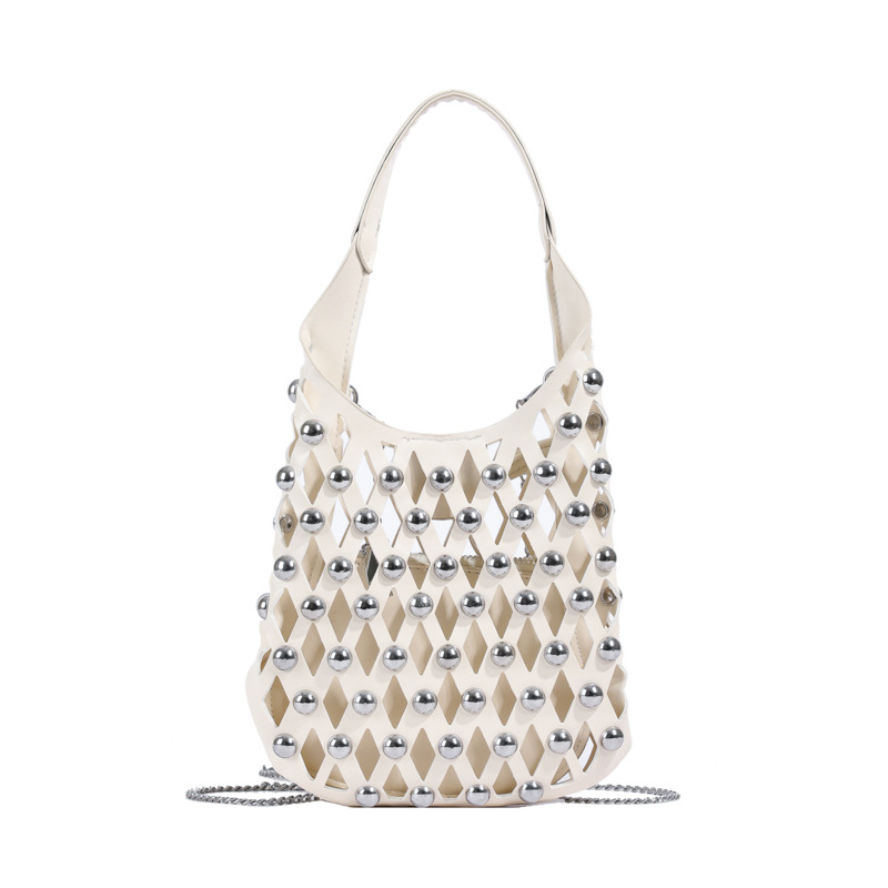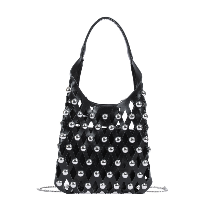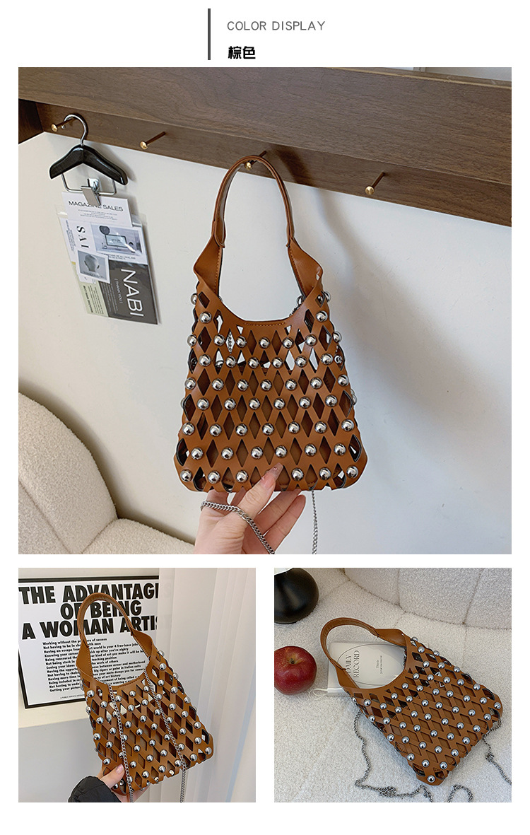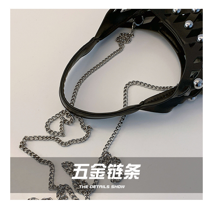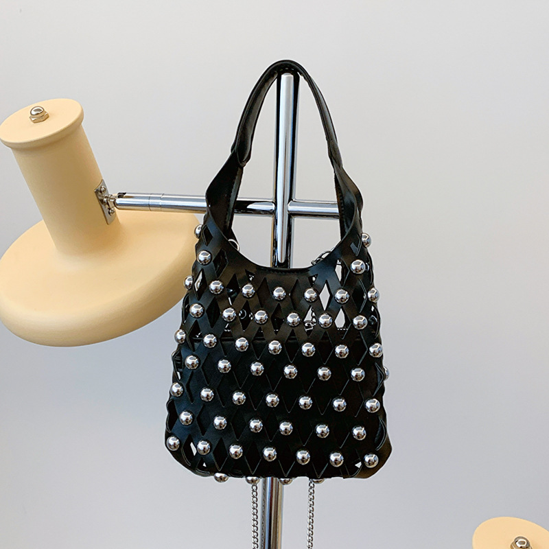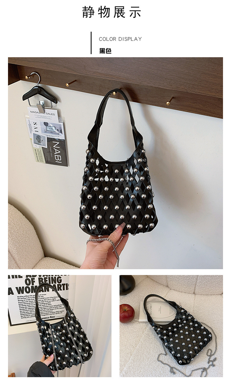 2024夏新款镂空菱格手提包朋克风圆铆钉镶嵌子母套包链条斜挎包女