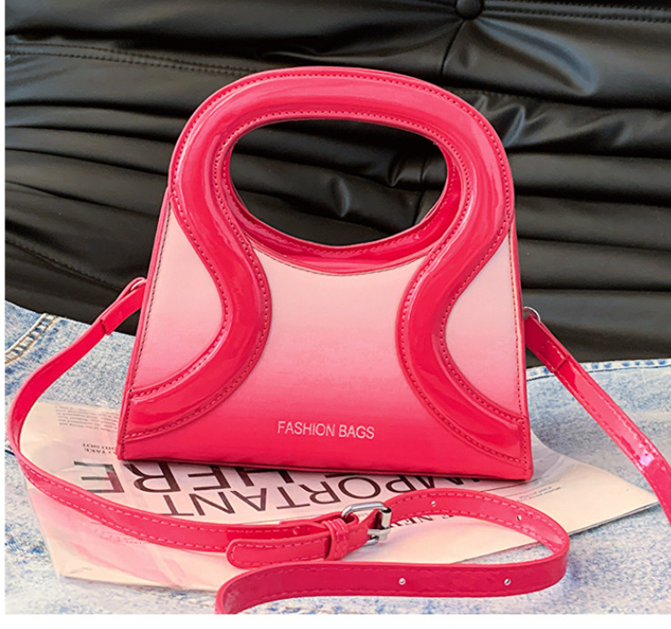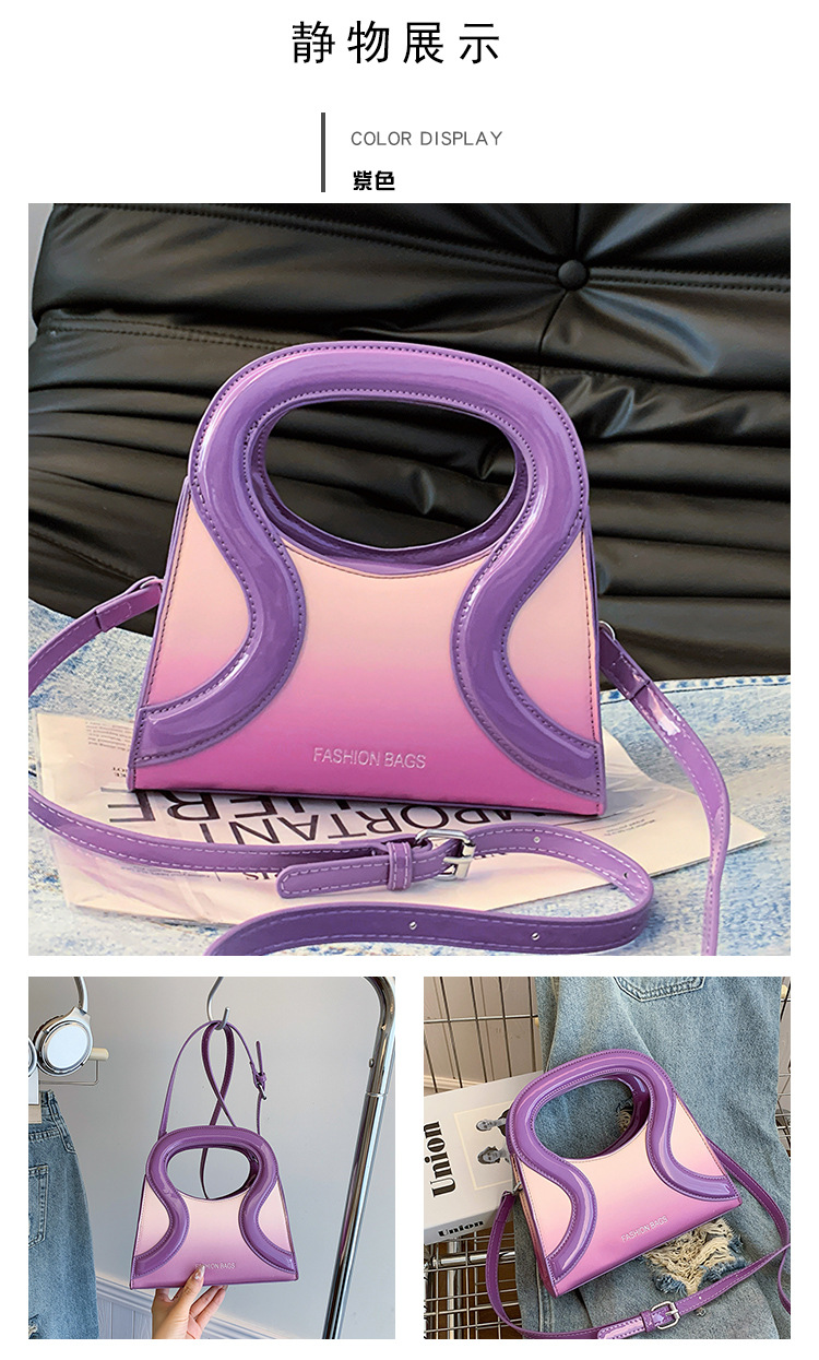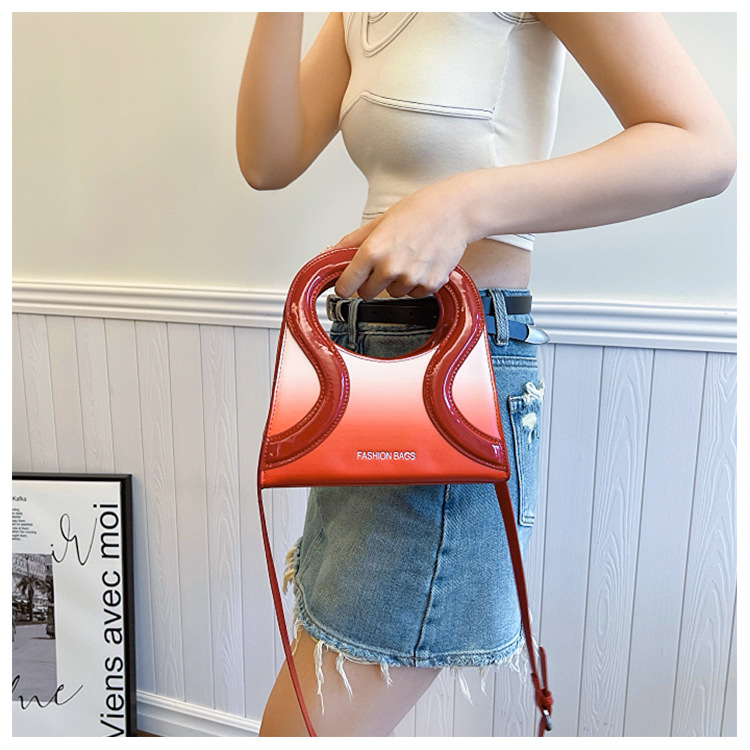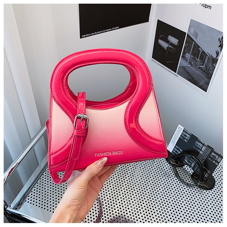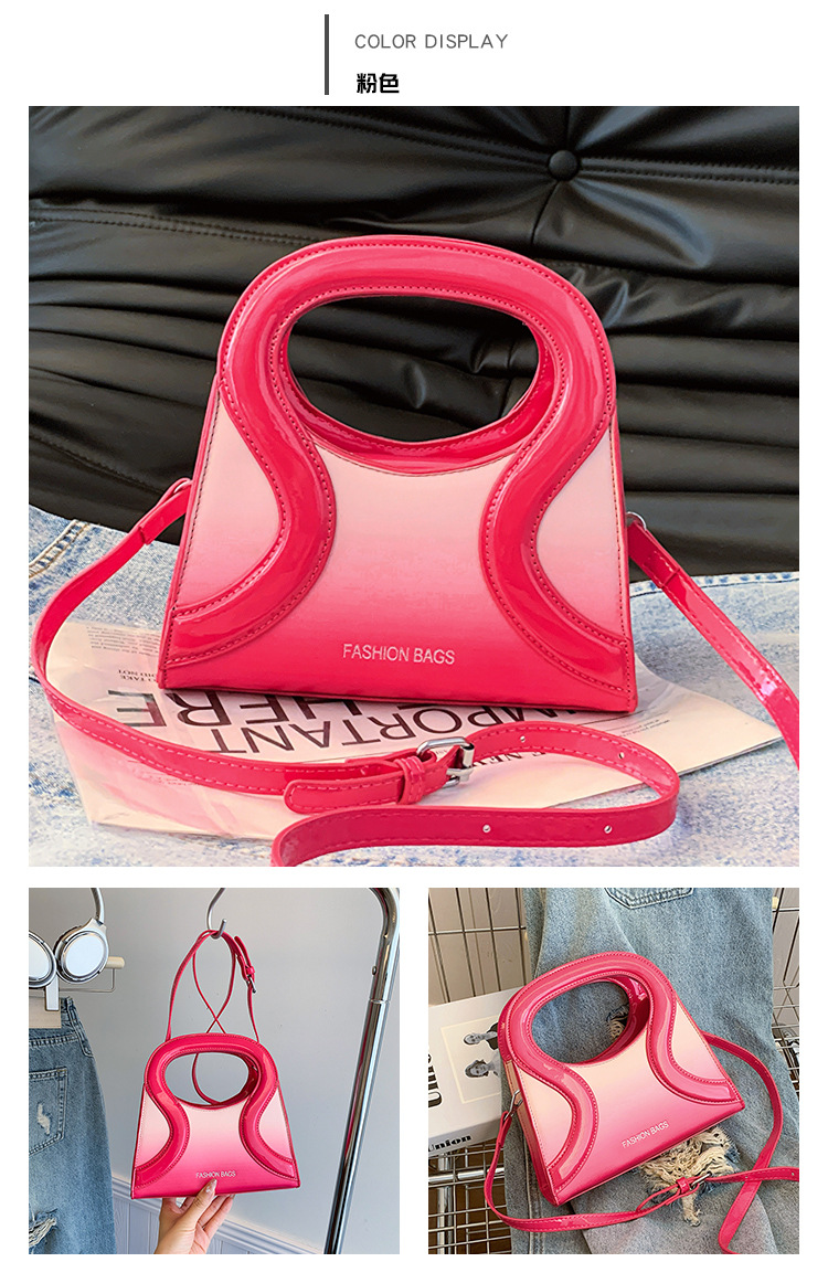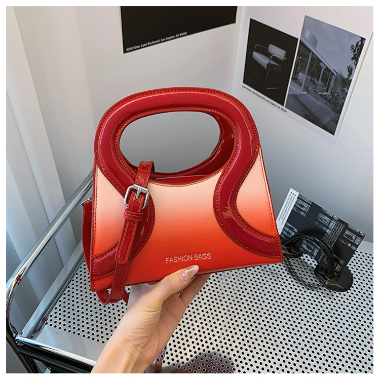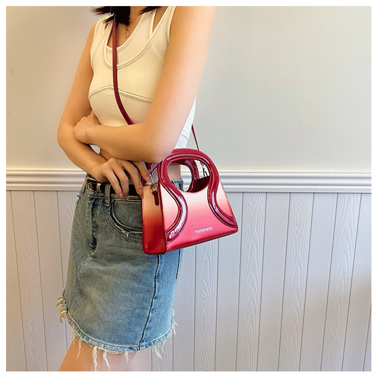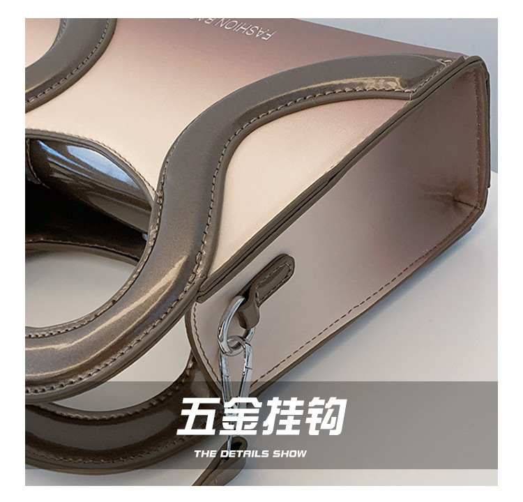 女包包新款渐变色PU漆皮压条方形手提包气质小蛮腰女士单肩斜跨包