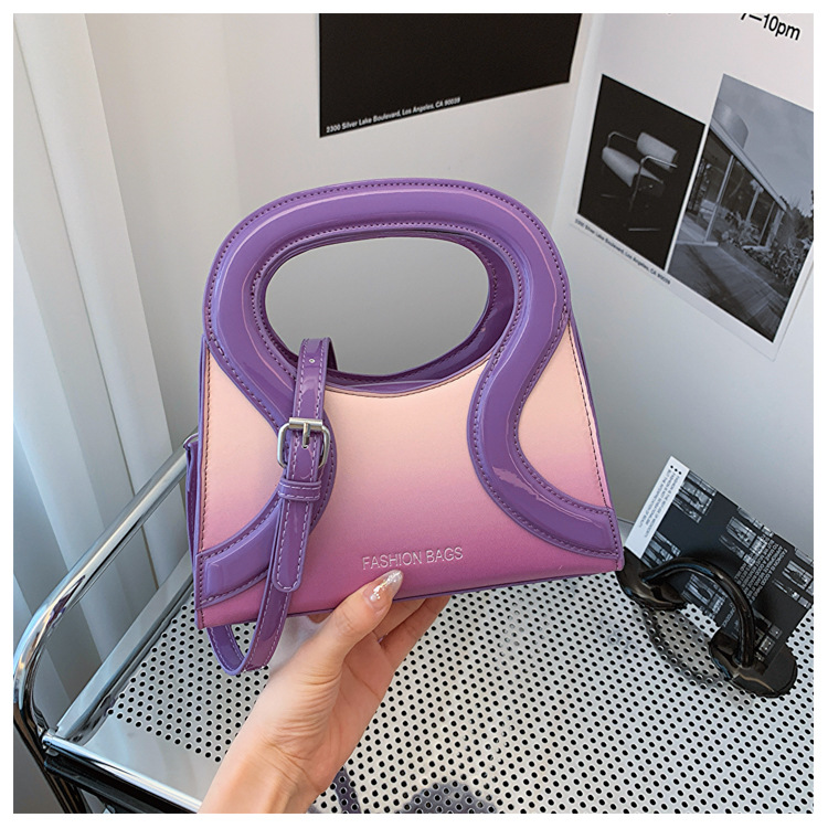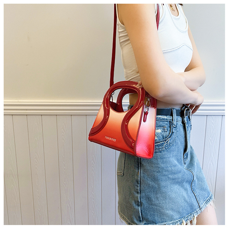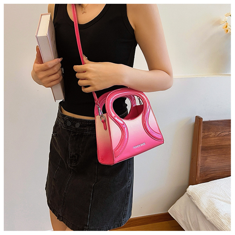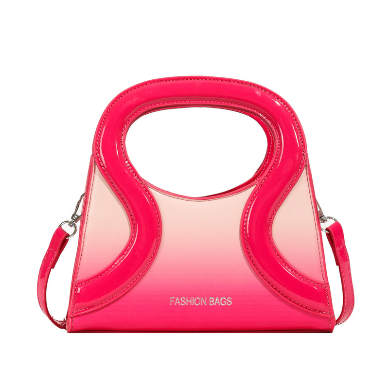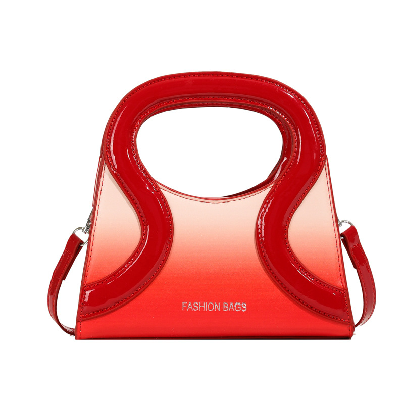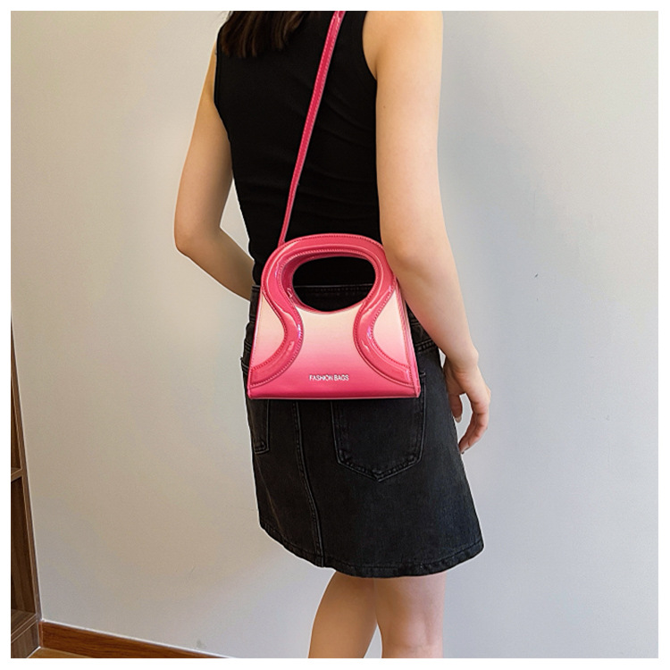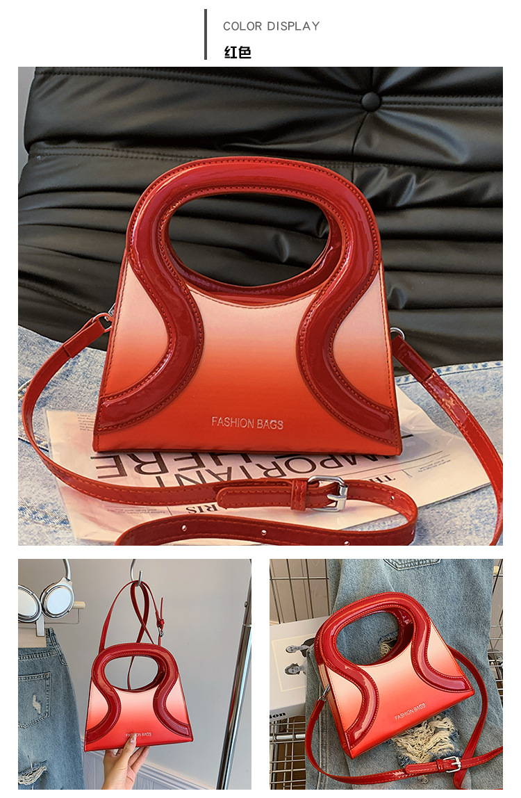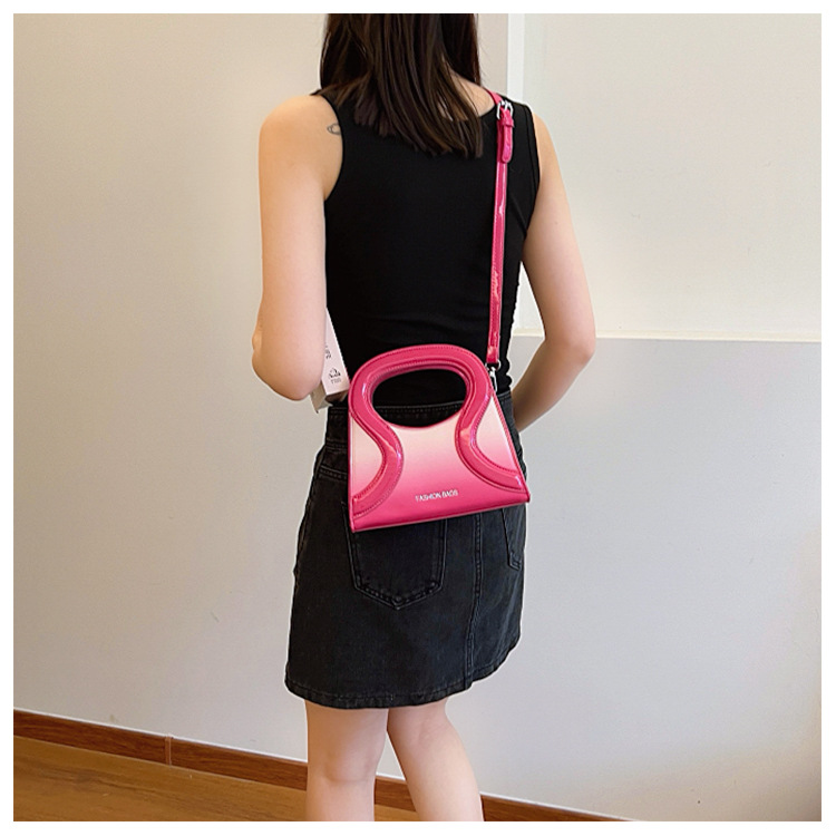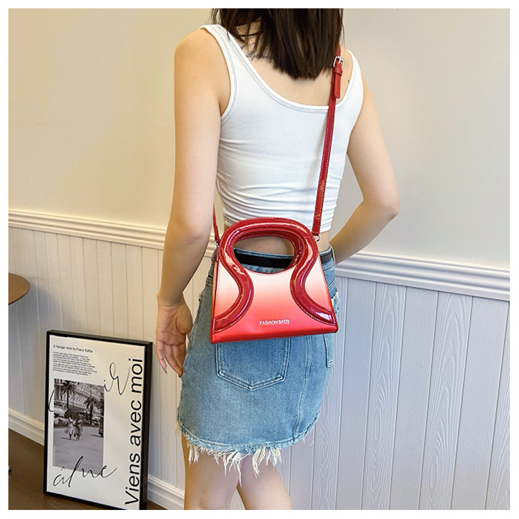 女包包新款渐变色PU漆皮压条方形手提包气质小蛮腰女士单肩斜跨包