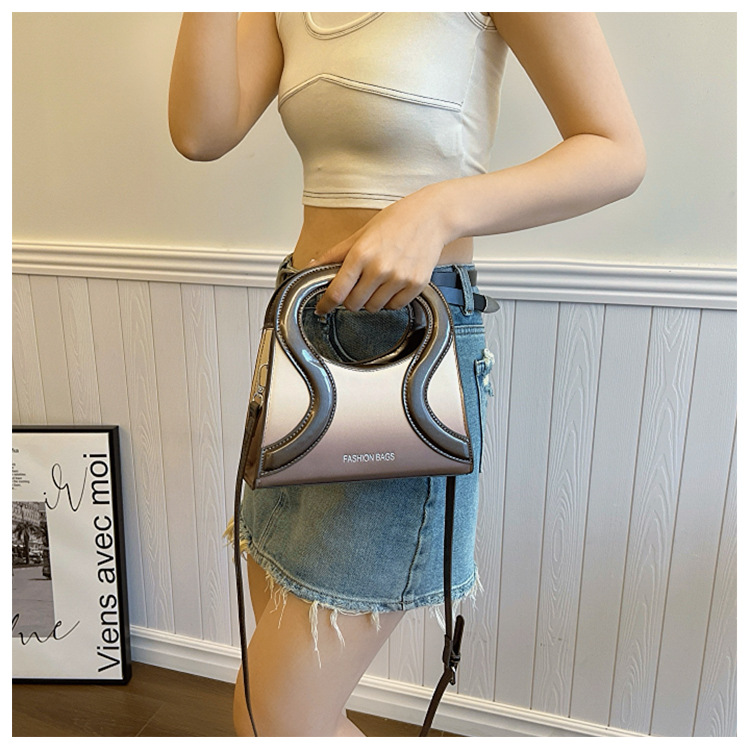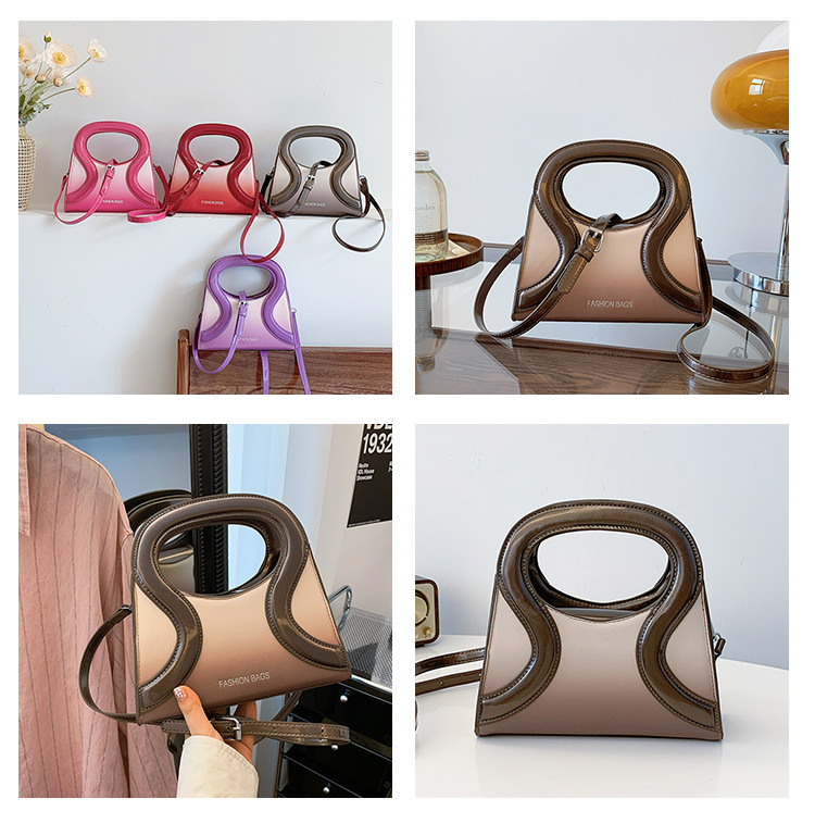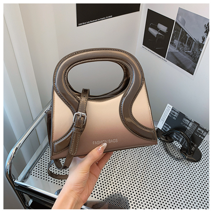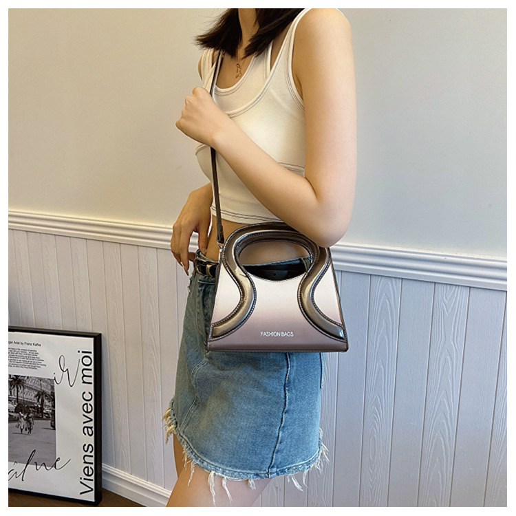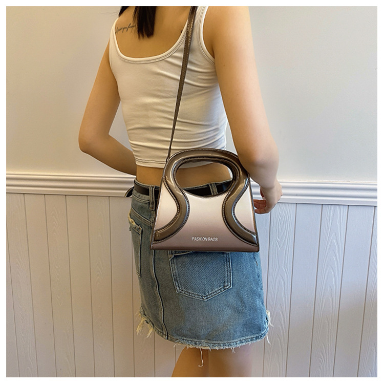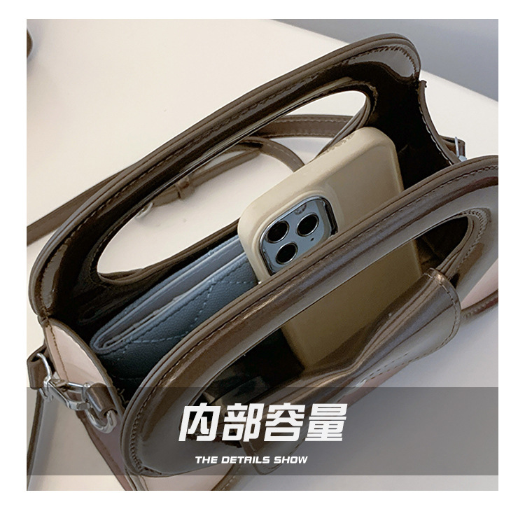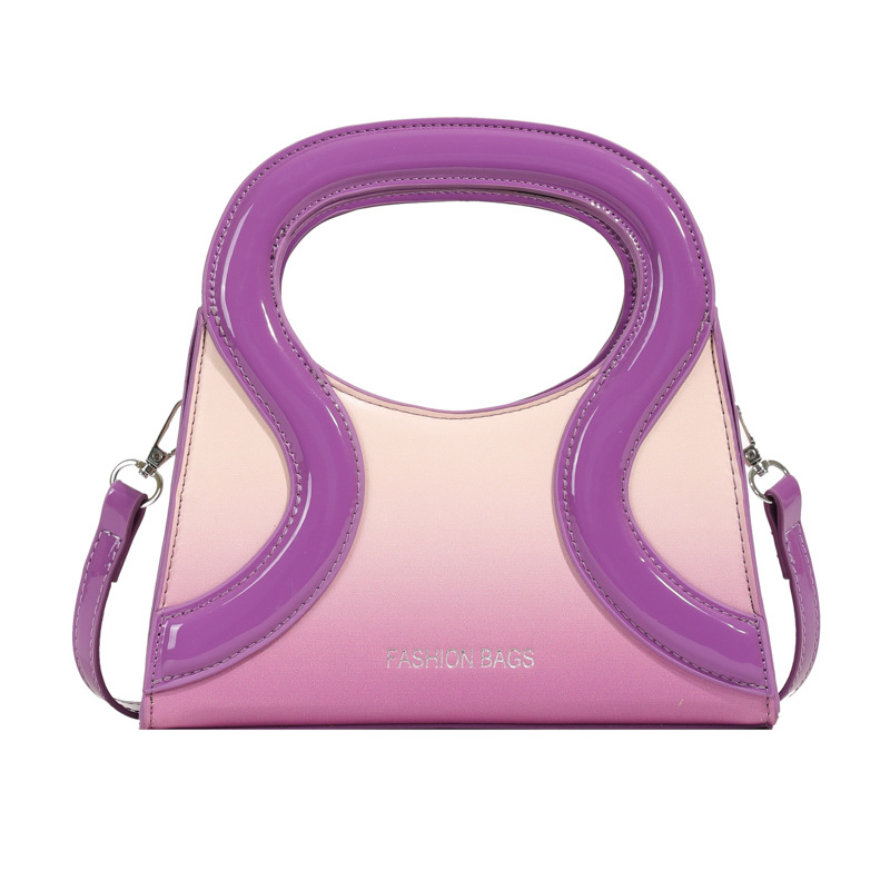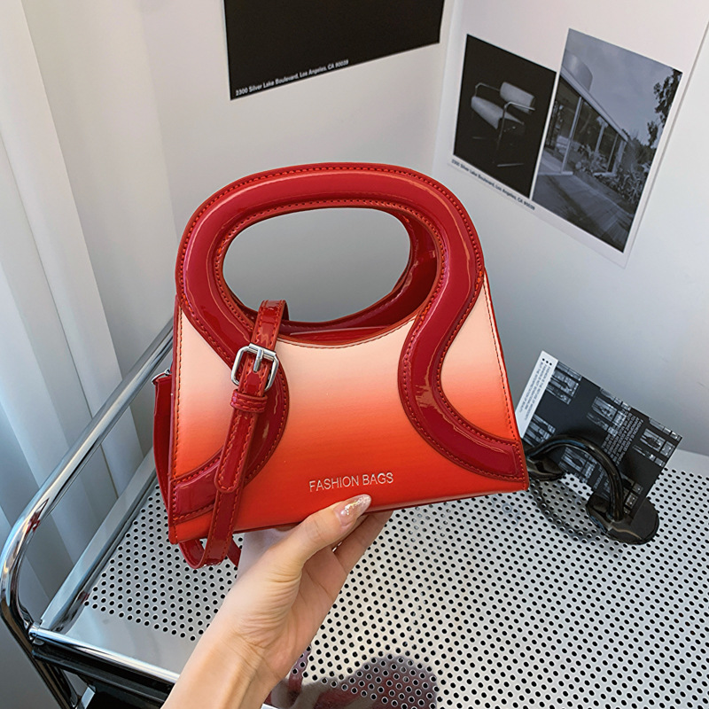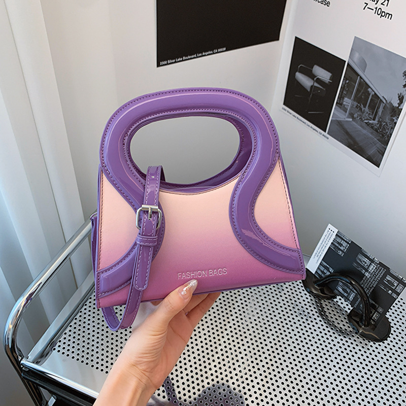女包包新款渐变色PU漆皮压条方形手提包气质小蛮腰女士单肩斜跨包
