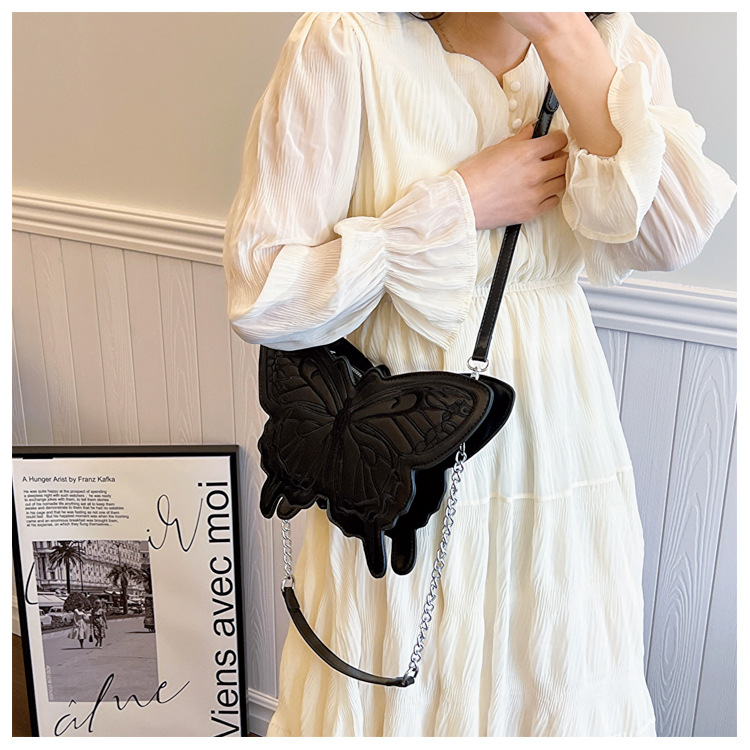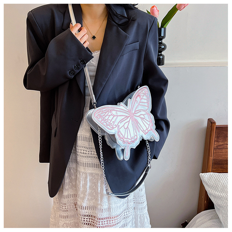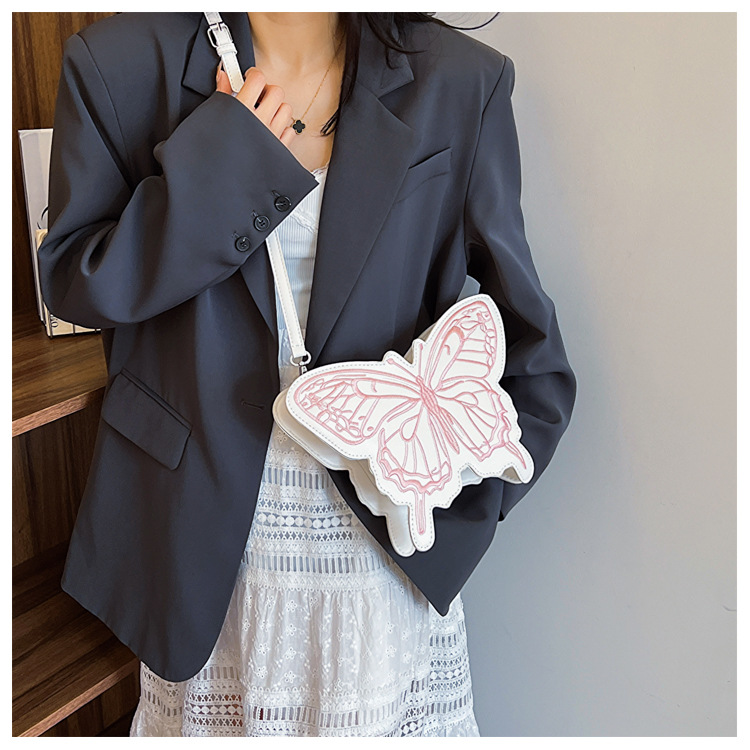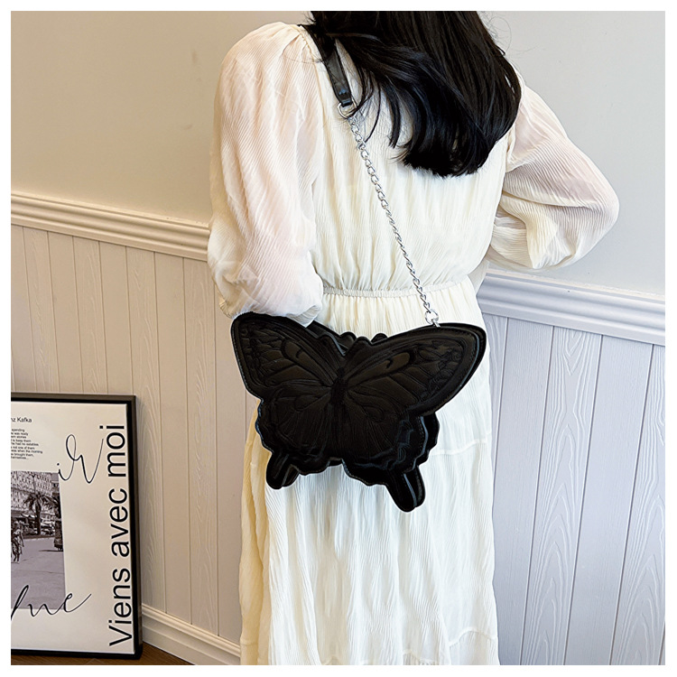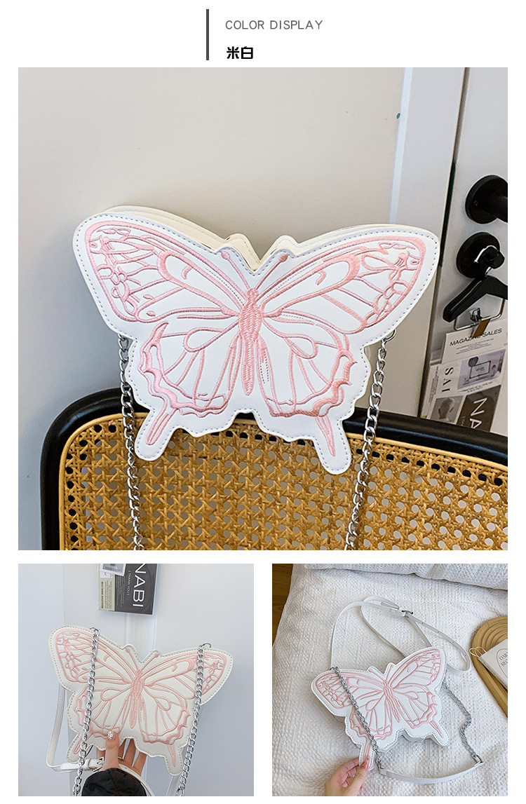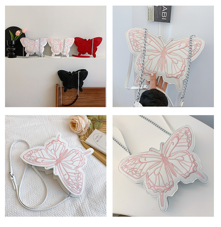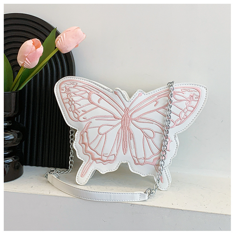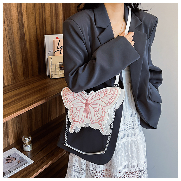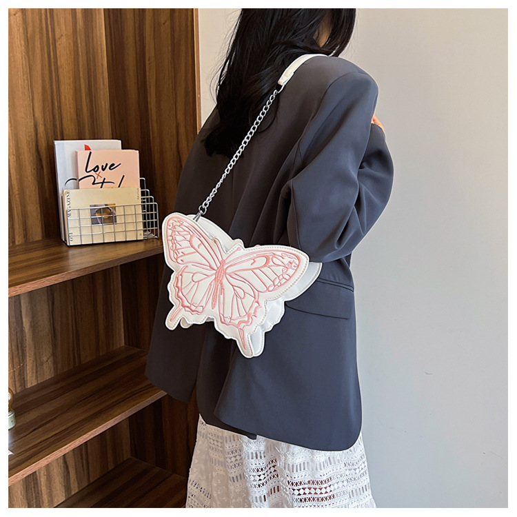 2024新款刺绣蝴蝶包包女甜美风少女心蝴蝶形单肩包网红洋气斜挎包