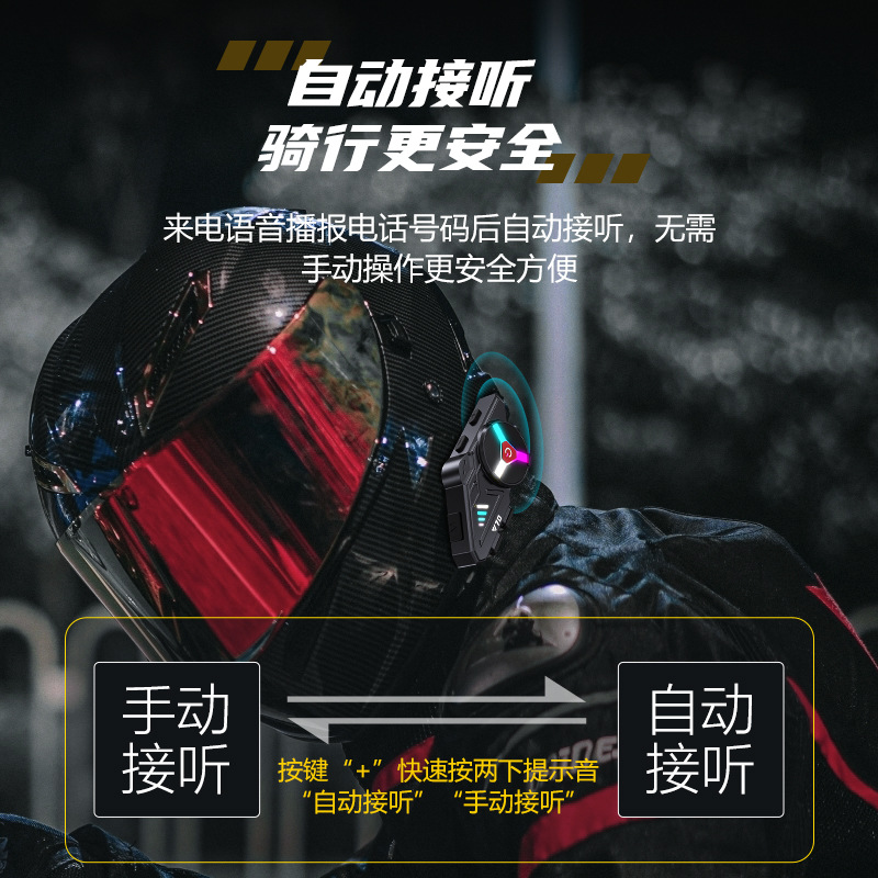 Y70头盔蓝牙耳机摩托车头盔蓝牙耳机防水防尘降噪灯光头盔耳机