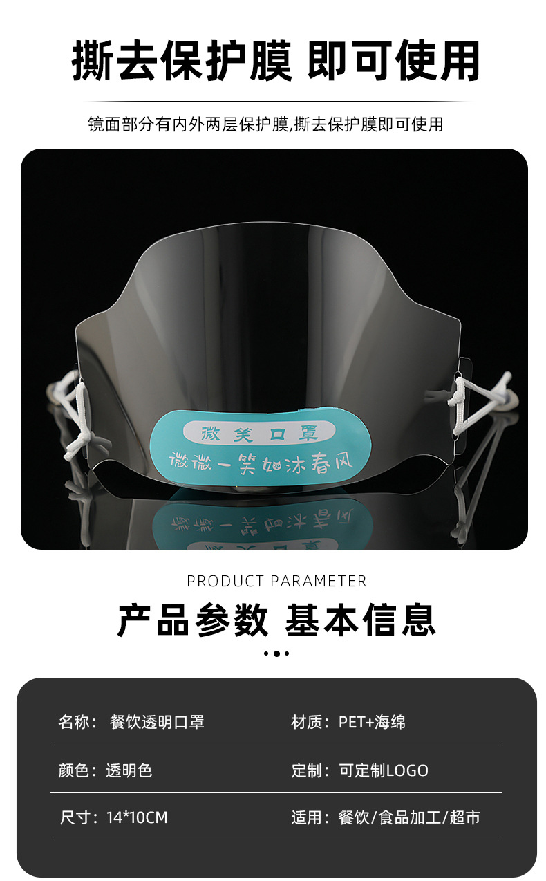 食品口罩餐饮店防口水透明松紧口罩简约卫生不勒塑料环保口罩批发 English | 投诉