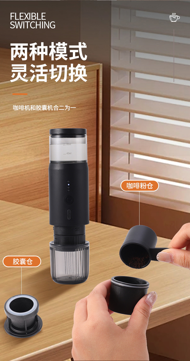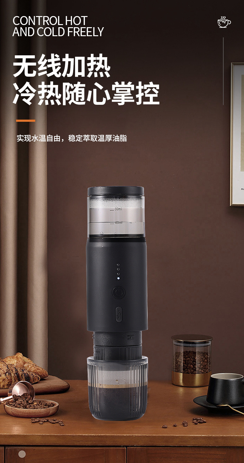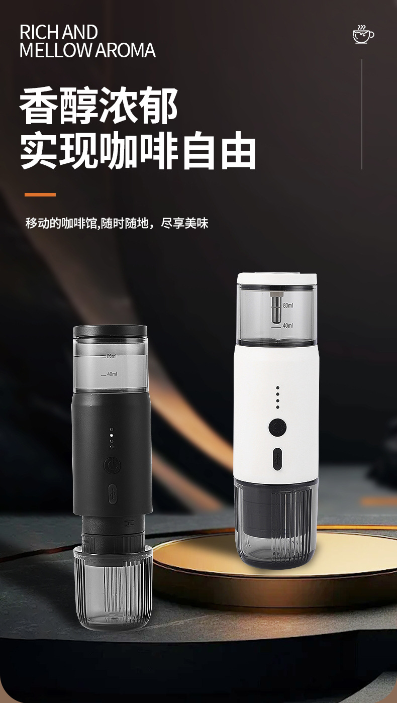 新款小型无线加热电动意式咖啡机胶囊充电便携户外旅行车载咖啡机 English | 投诉