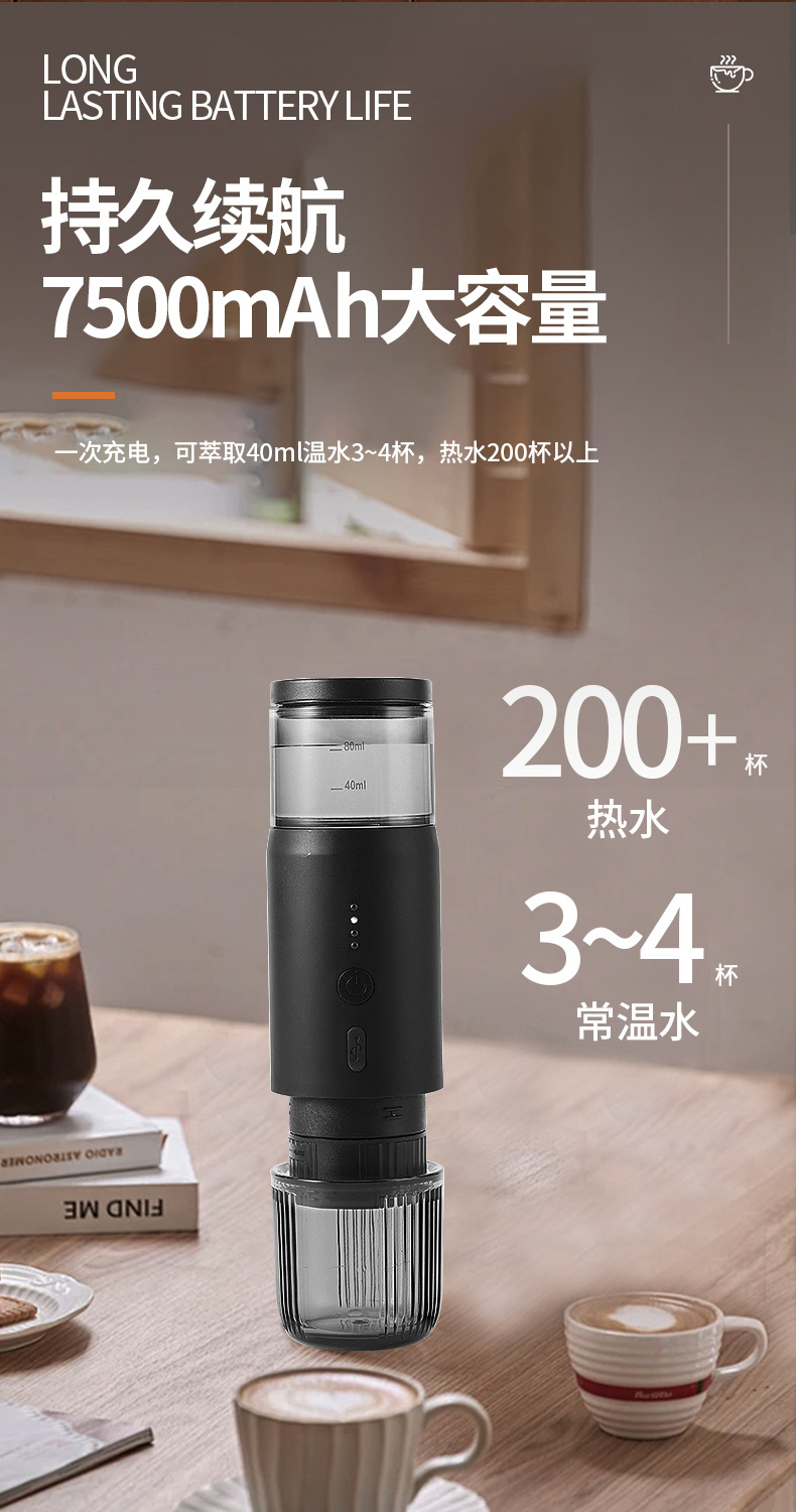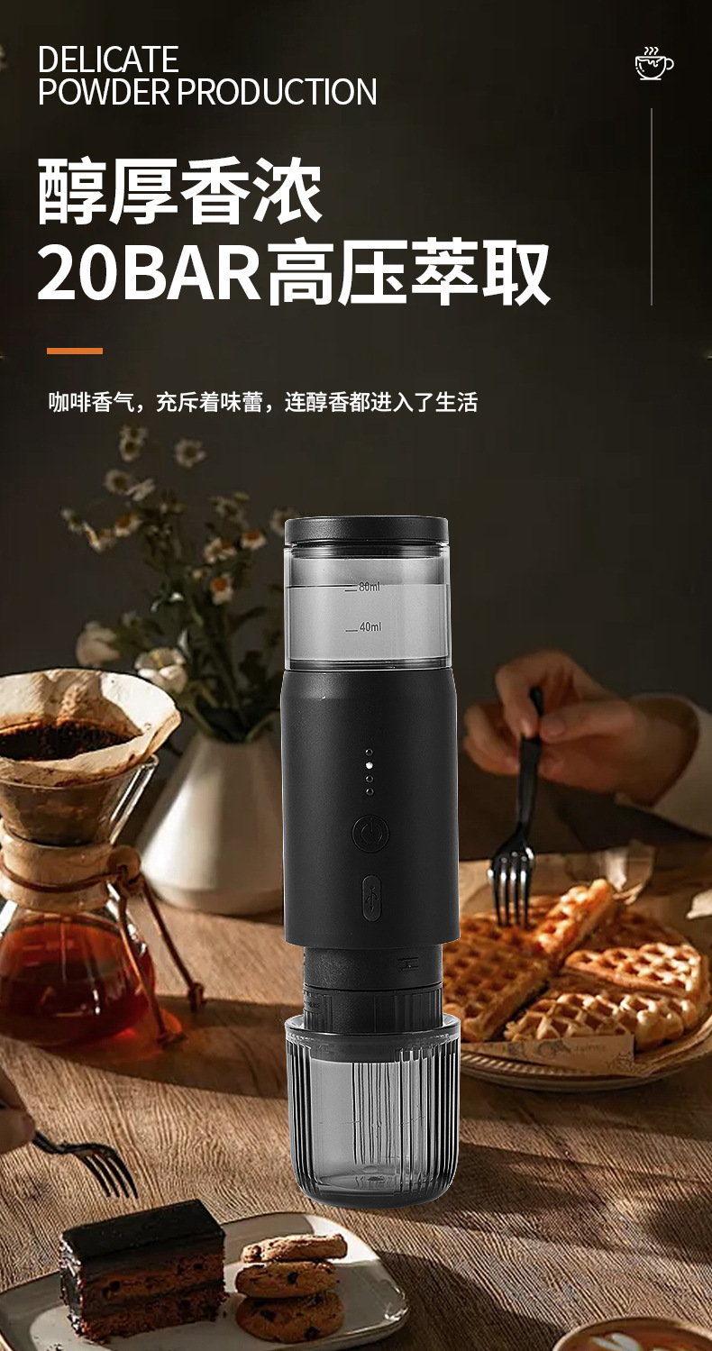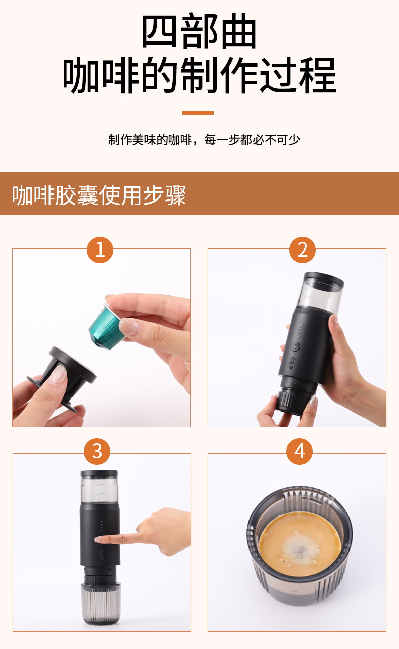 新款小型无线加热电动意式咖啡机胶囊充电便携户外旅行车载咖啡机 English | 投诉