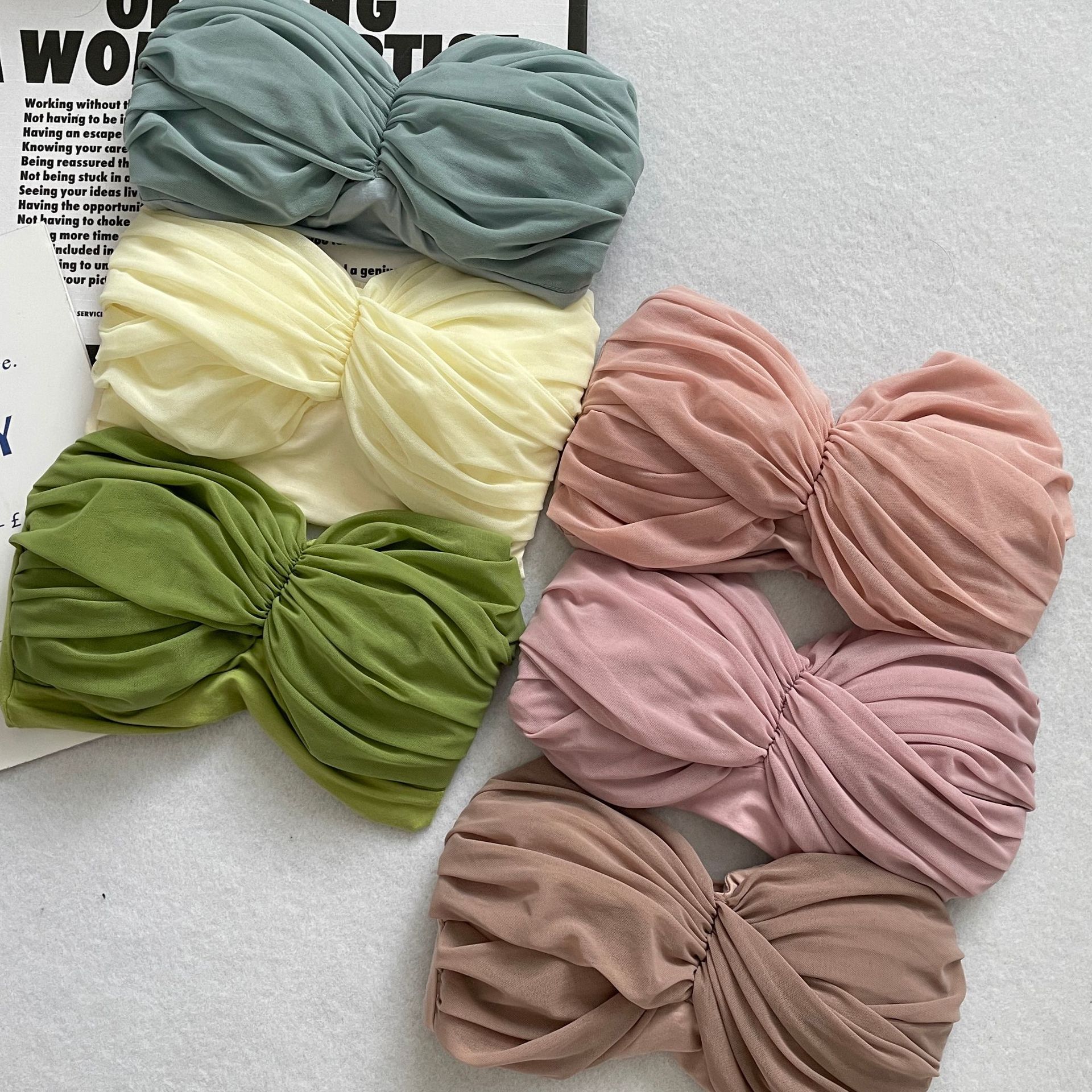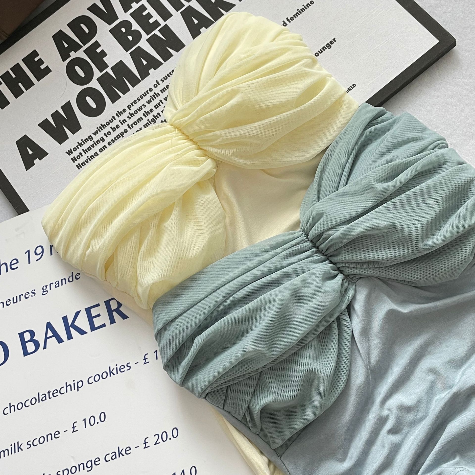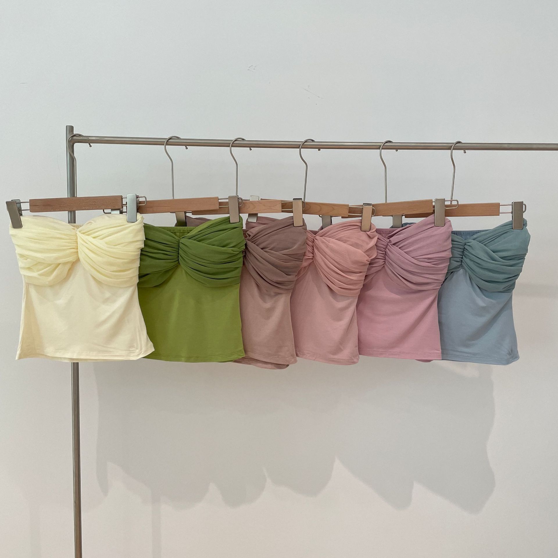 货号: MX23601 款式: 抹胸 上市年份/季节: 2023年春季 面料名称: 棉 主面料成分: 人棉 颜色: 杏色,牛油果绿,蓝色,皮粉,粉紫,藕粉 尺码: S,M,L 主面料成分含量: 90%(含)-95%(不含) 风格: 甜美风 风格类型: 清新甜美 重量: 0.5 kg/件