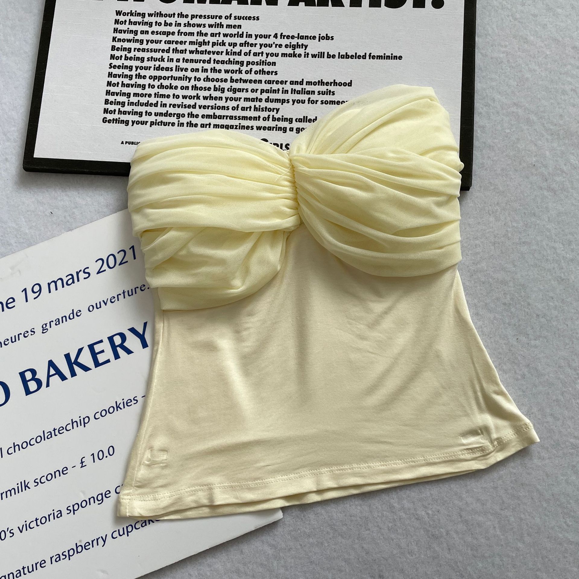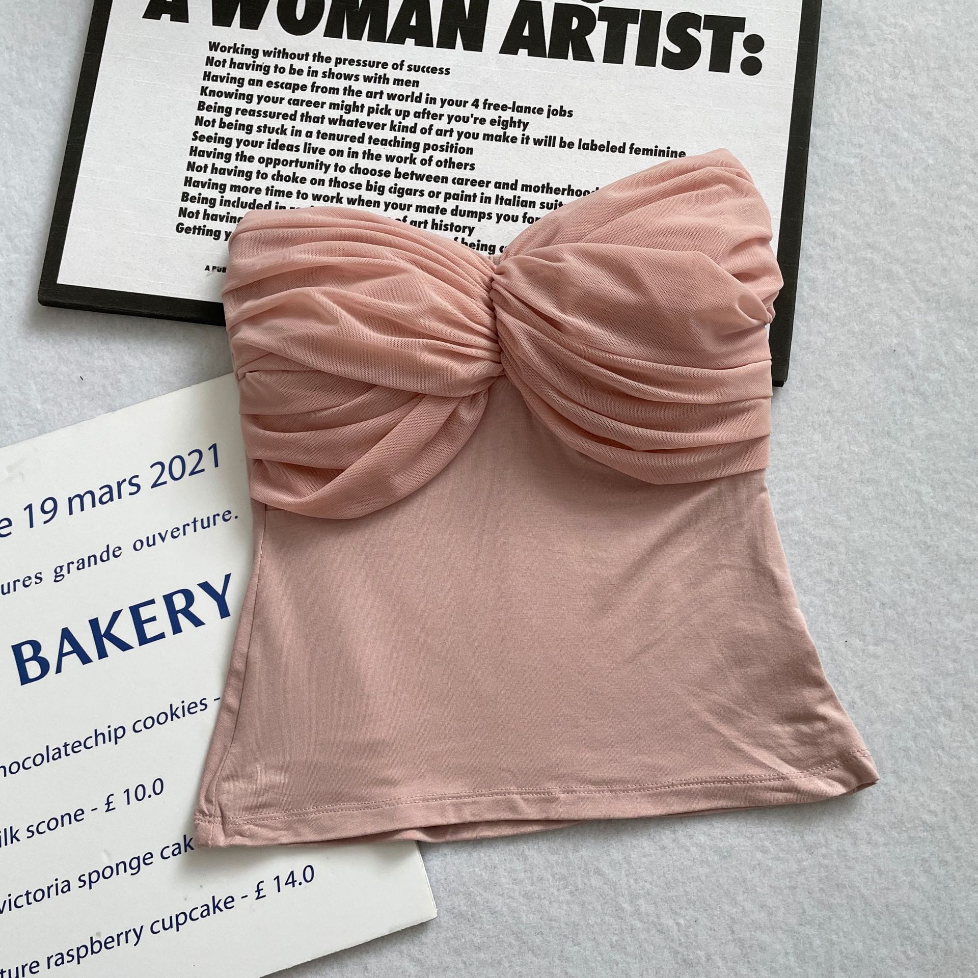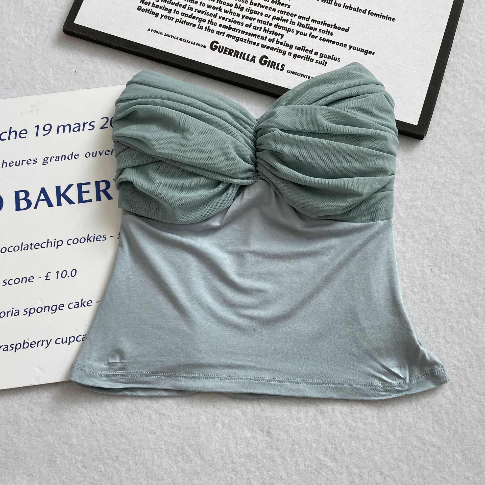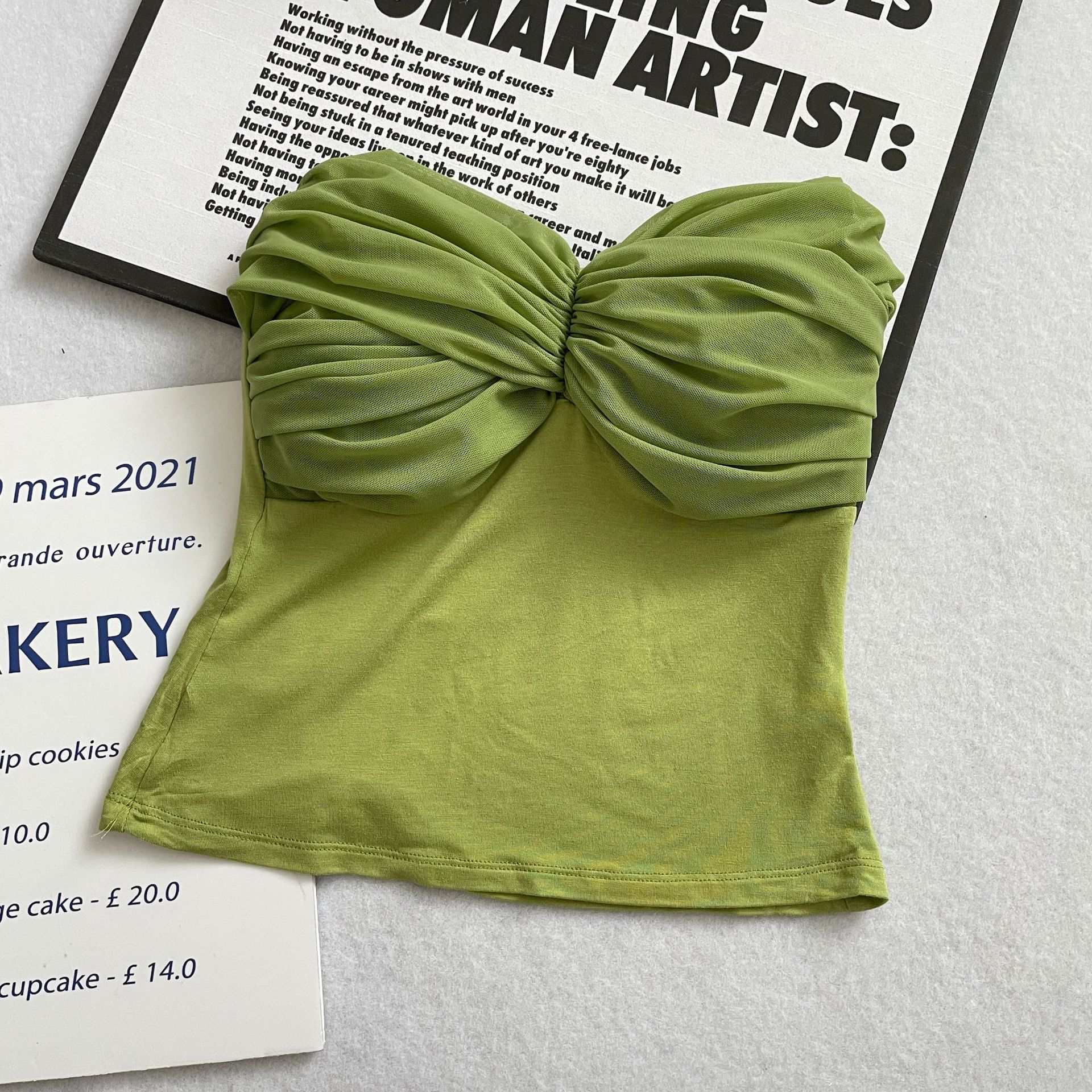 货号: MX23601 款式: 抹胸 上市年份/季节: 2023年春季 面料名称: 棉 主面料成分: 人棉 颜色: 杏色,牛油果绿,蓝色,皮粉,粉紫,藕粉 尺码: S,M,L 主面料成分含量: 90%(含)-95%(不含) 风格: 甜美风 风格类型: 清新甜美 重量: 0.5 kg/件