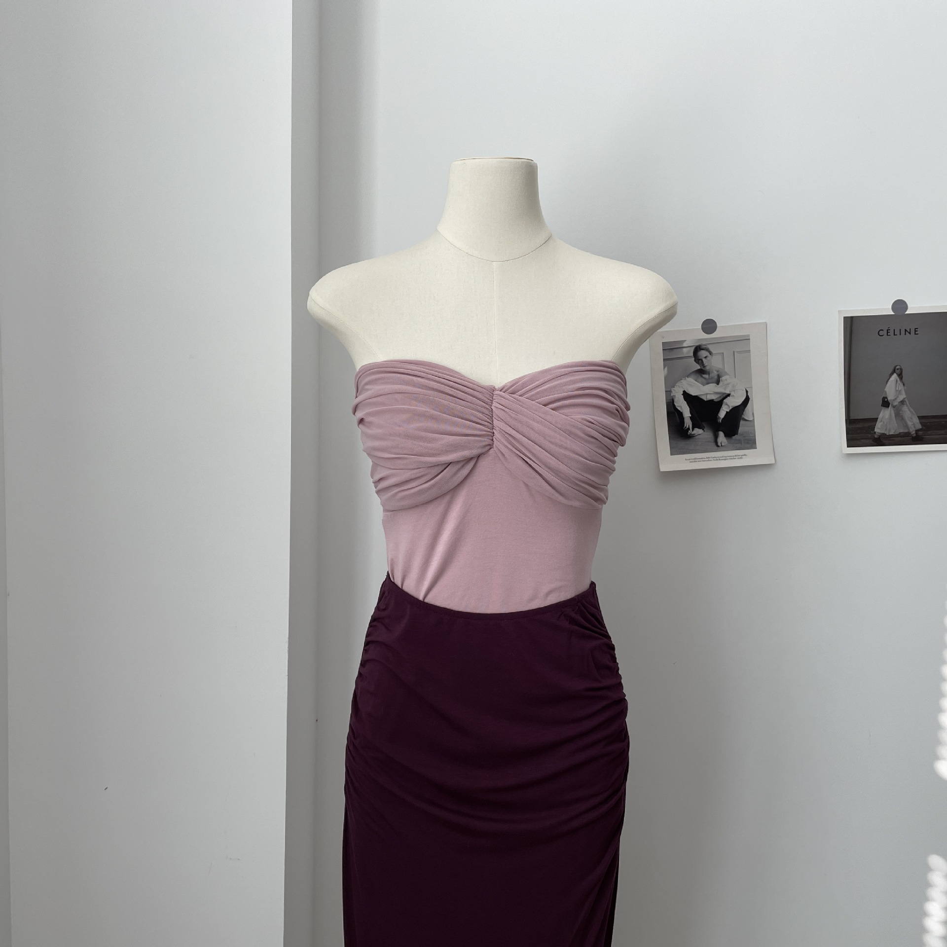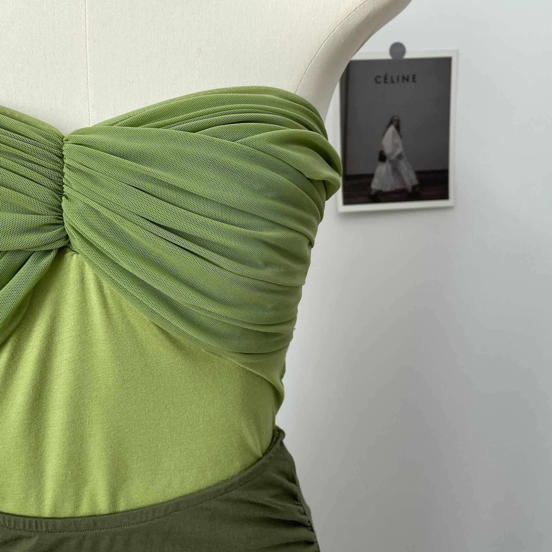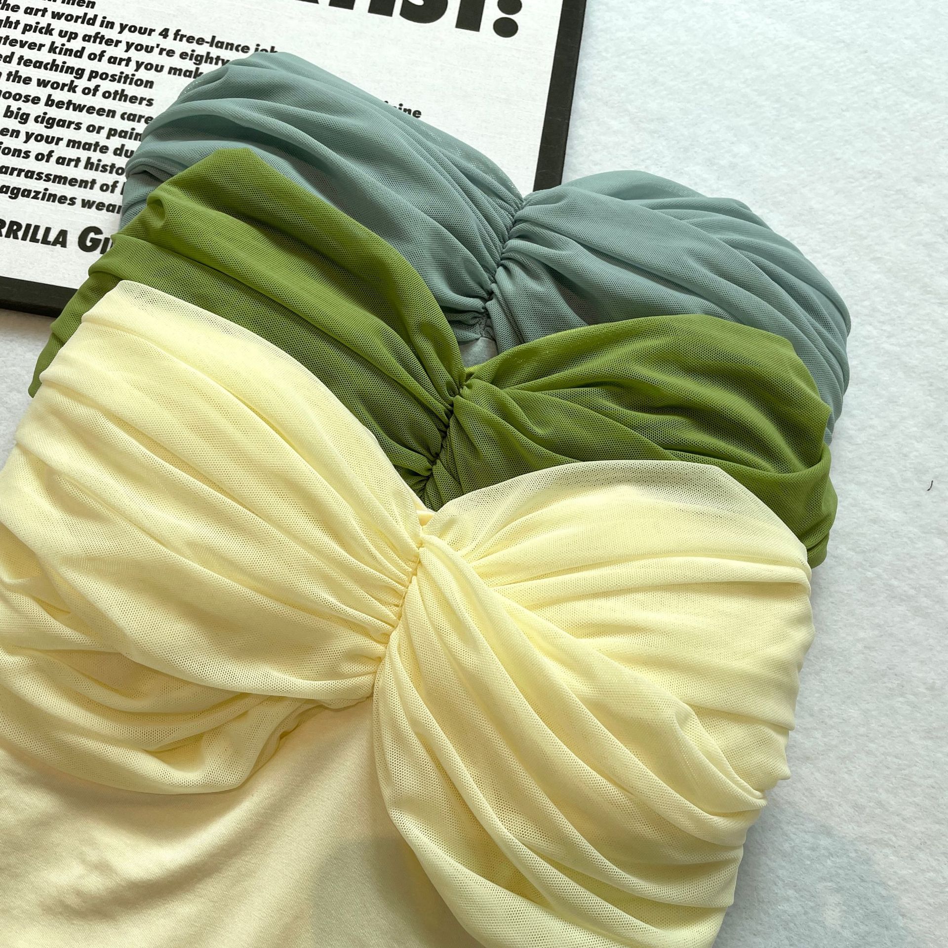 网纱拼接带胸垫抹胸