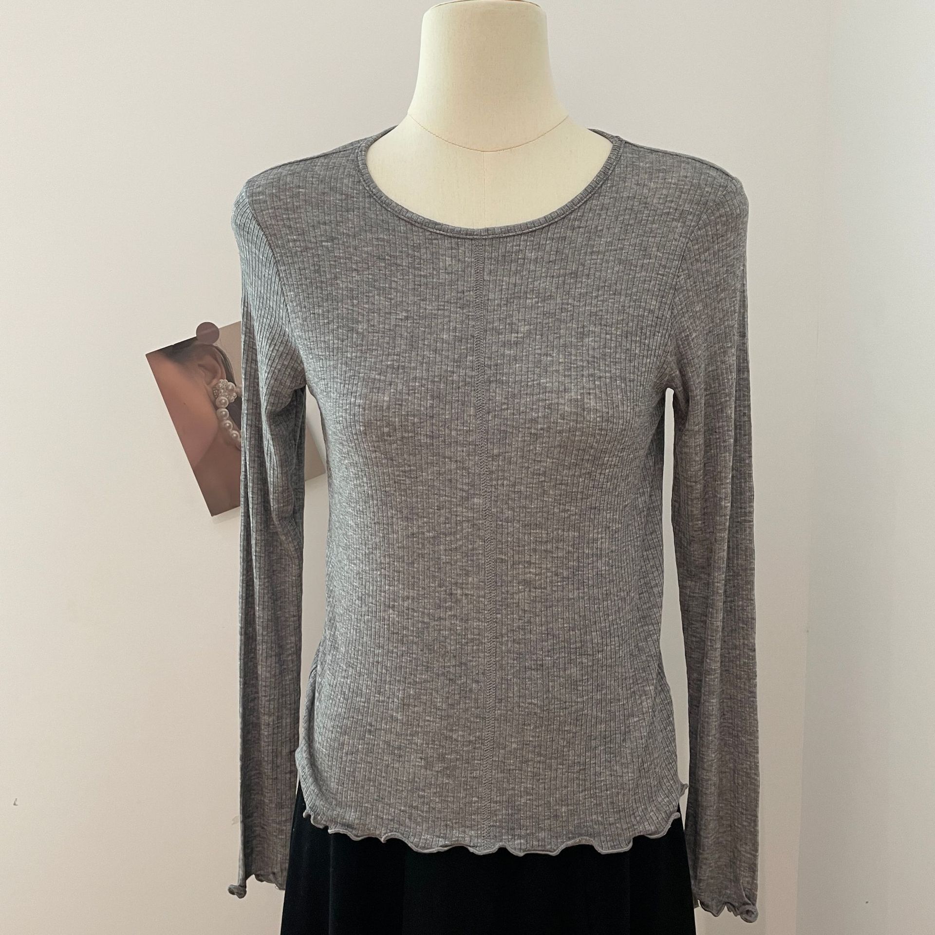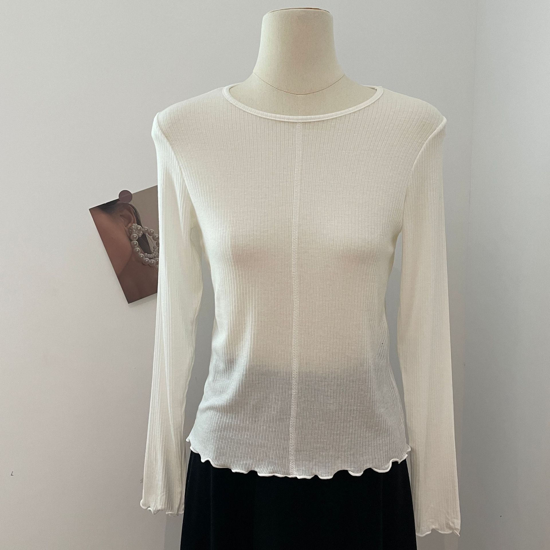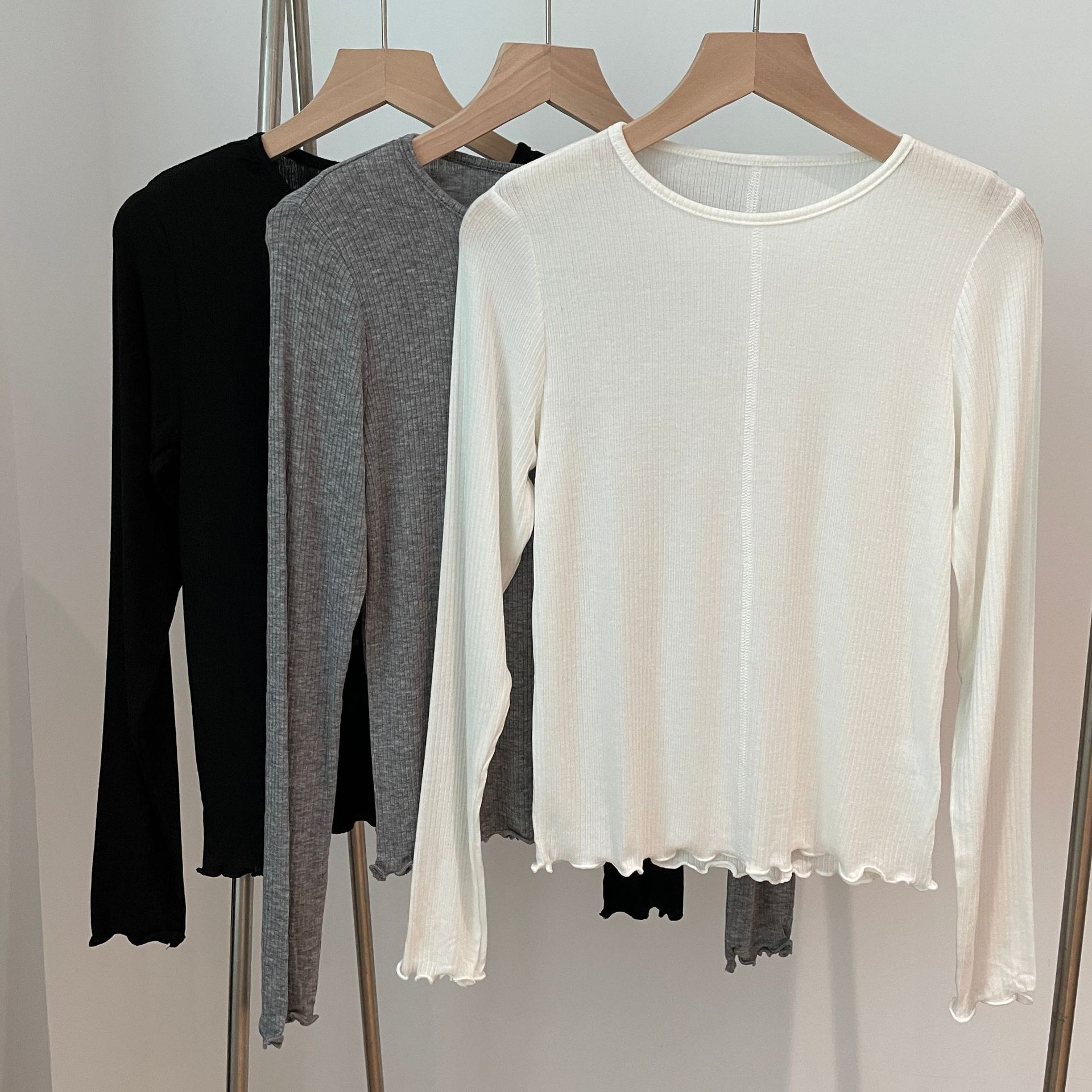 天丝羊毛圆领木耳边长袖