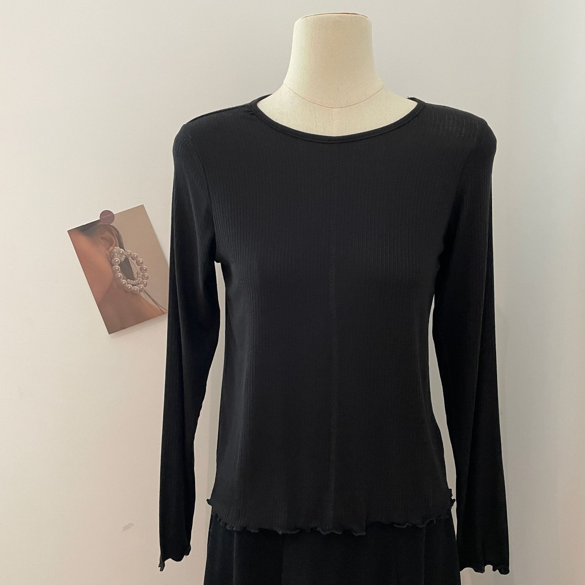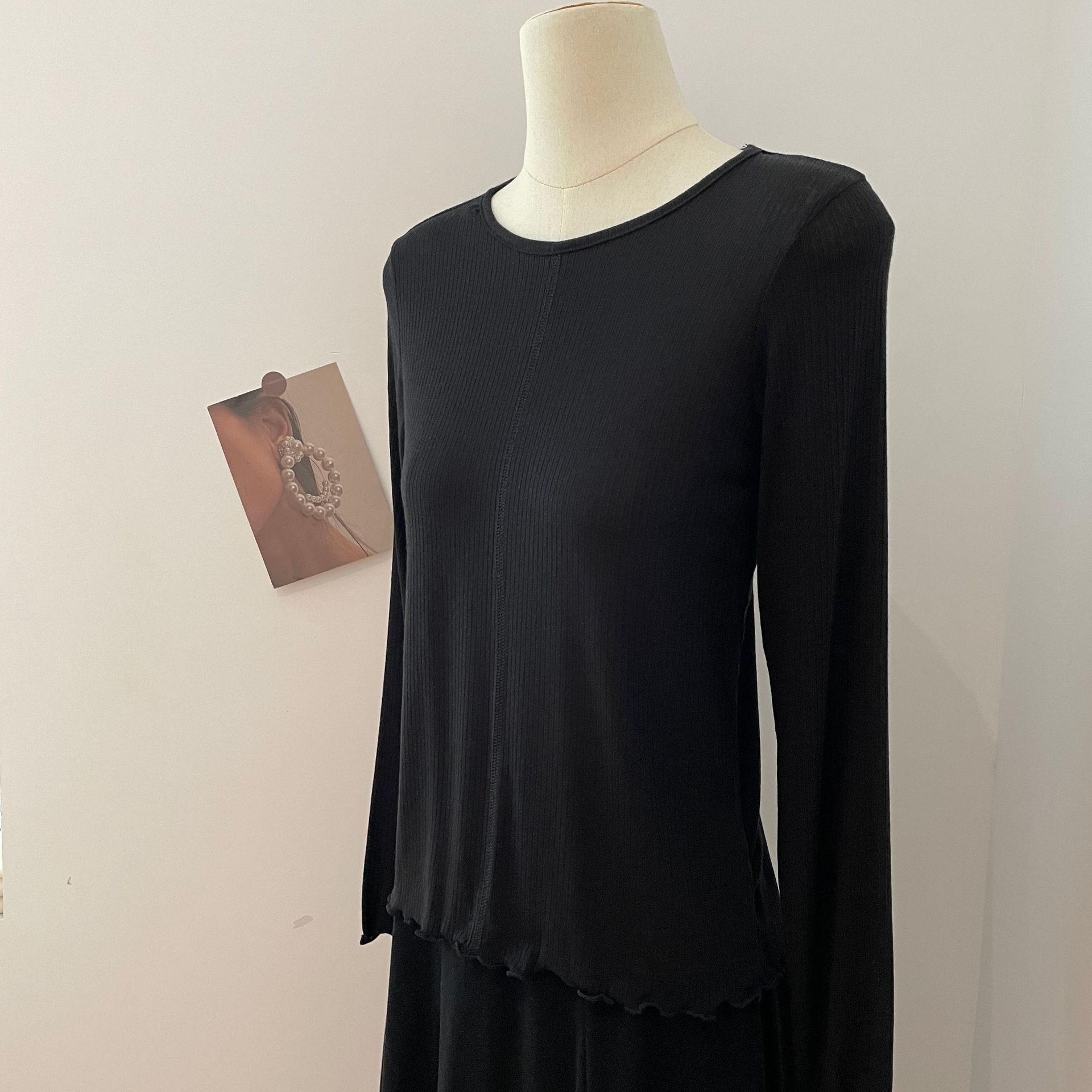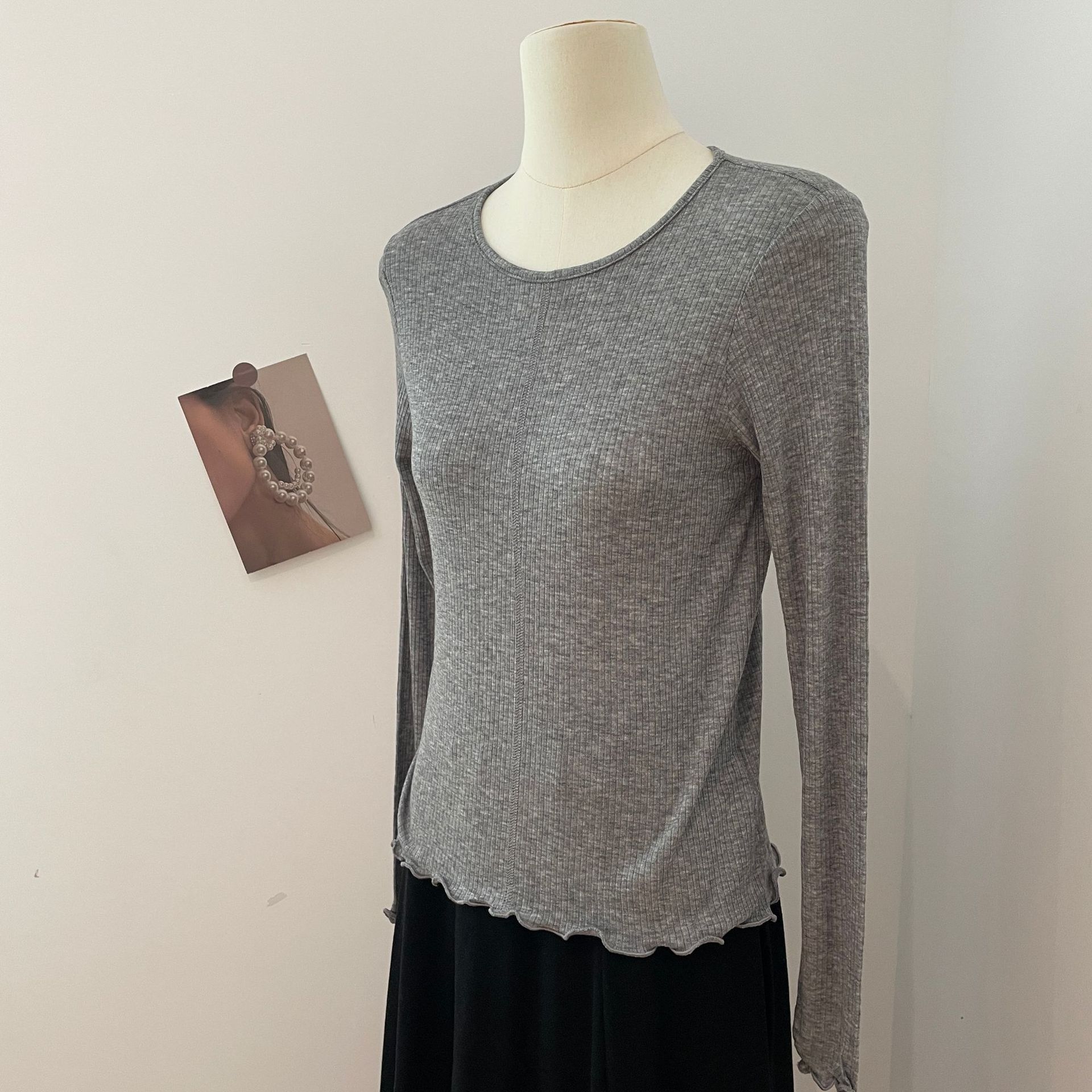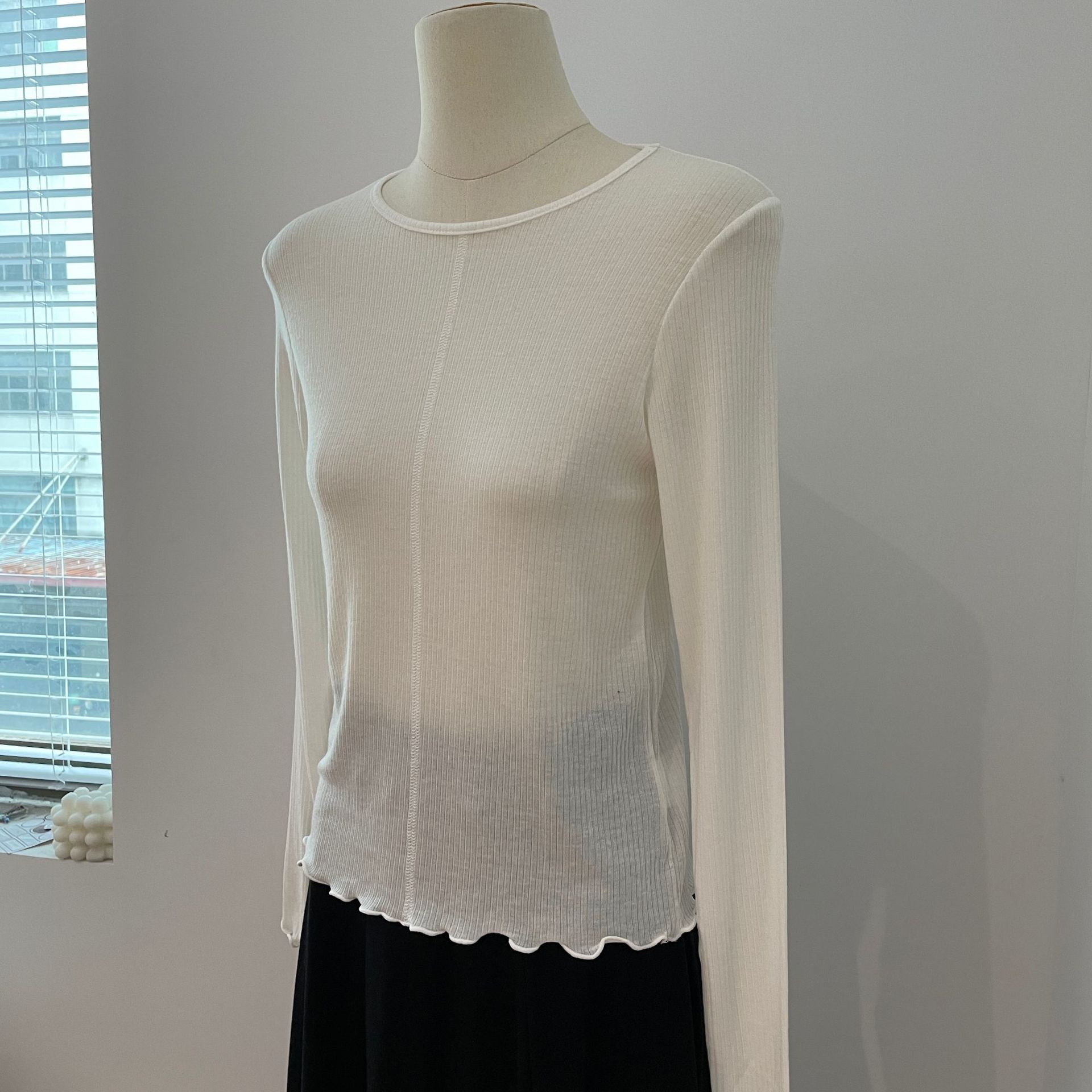 天丝羊毛圆领木耳边长袖