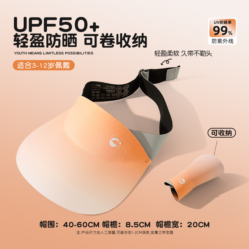 3D裸感渐变色无痕防晒帽运动空顶帽夏季防紫外线遮阳帽户外太阳帽