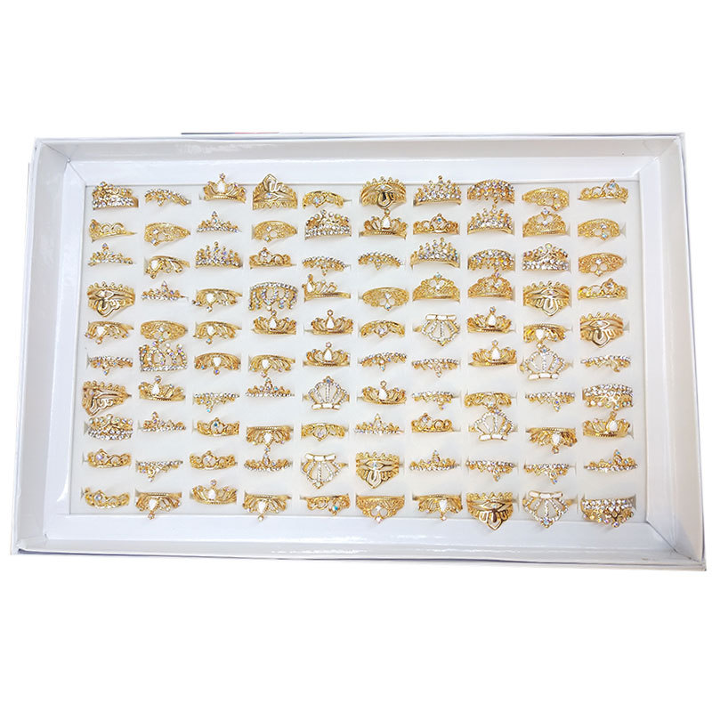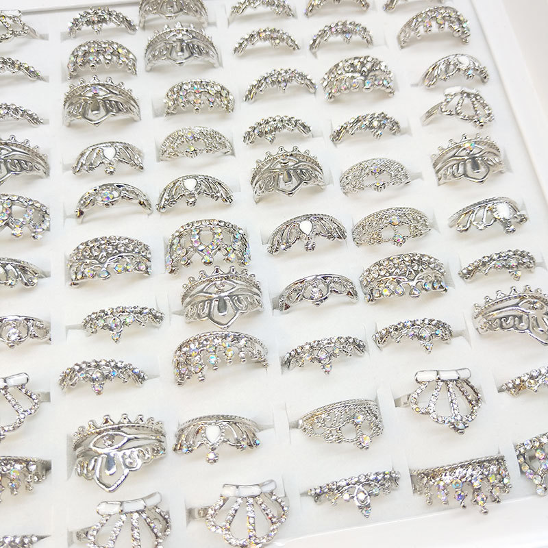 厂家现货直销热卖镶钻多款式皇冠混装合金戒指外贸批发地摊10元店