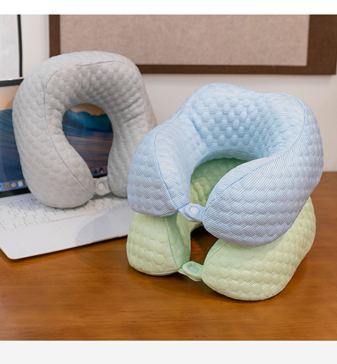 夏季凉感冰丝U型枕汽车旅行护颈午睡枕记忆棉靠枕冰透气枕套U型枕
