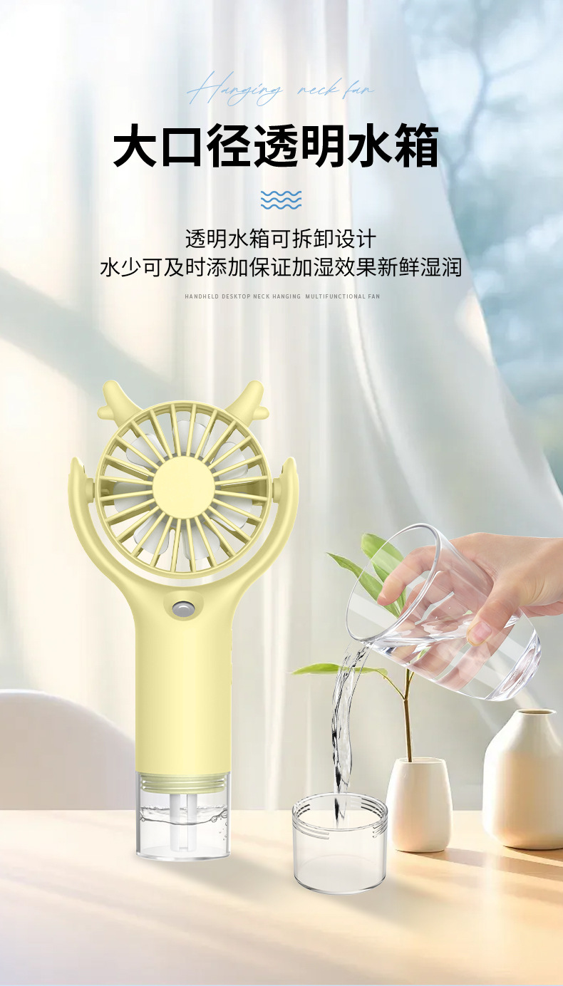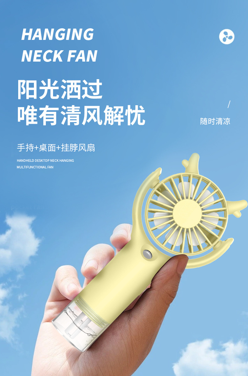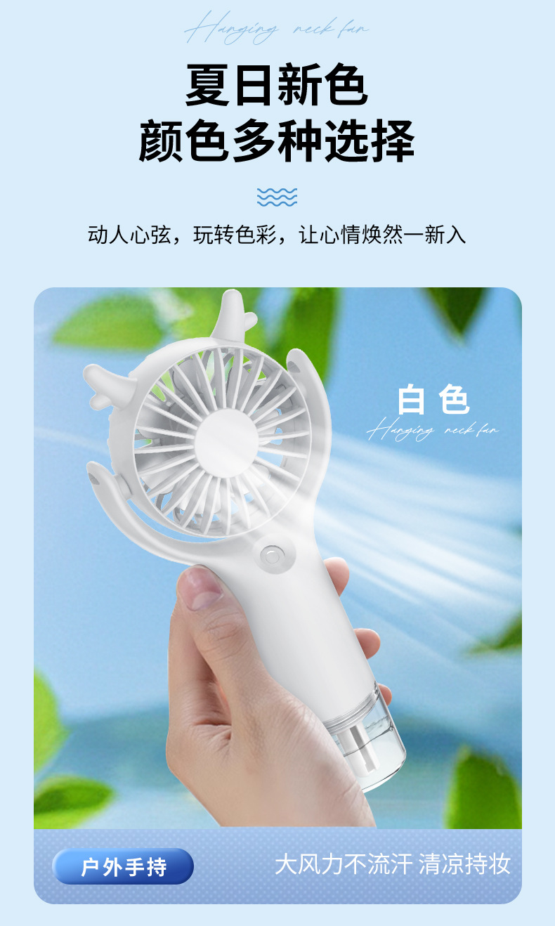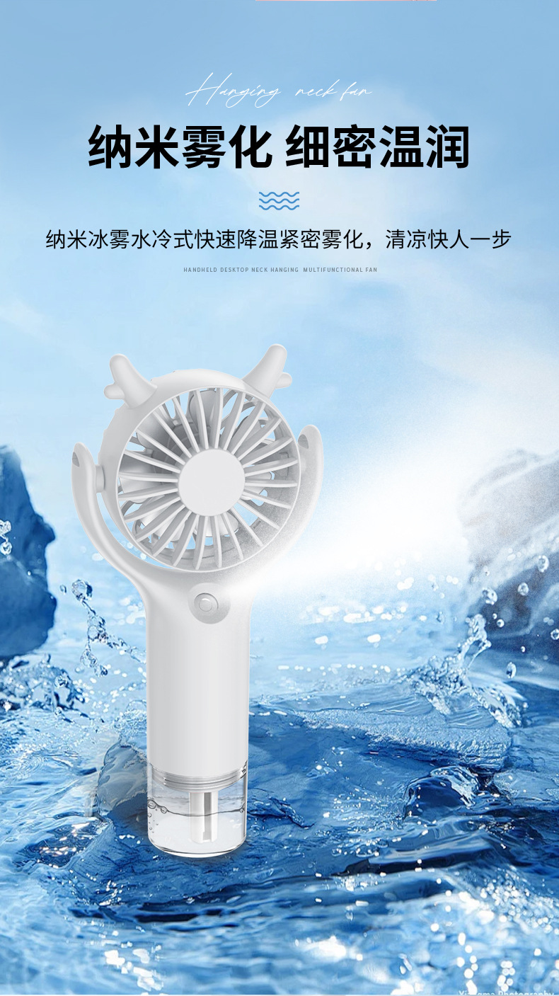 产品买点:手持式,3档风速,喷雾风扇