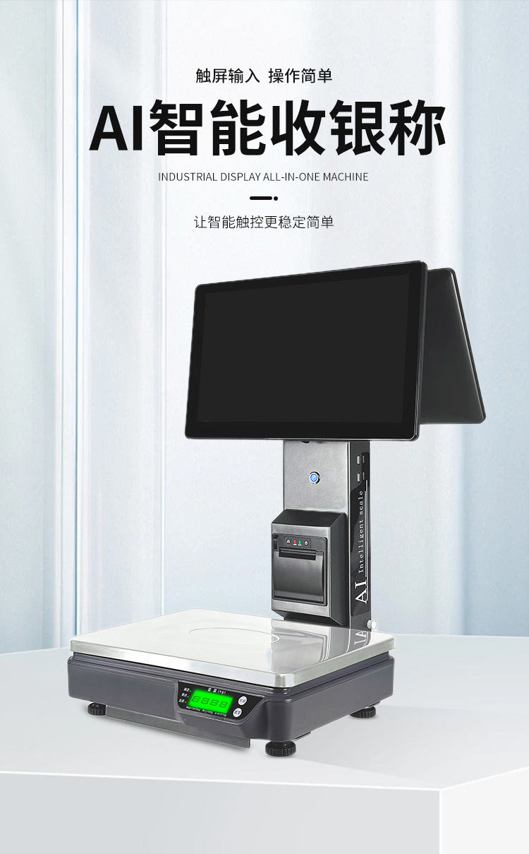 智能收银一体机 超市生鲜水果ai触摸屏收银机 餐饮电子称结算设备 English | 投诉